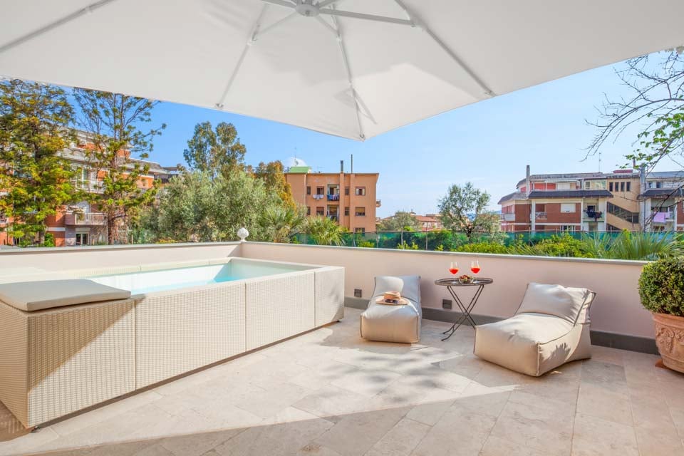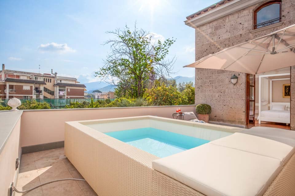 En af villaens mest bemærkelsesværdige træk er dens lille private pool, som man kan nå direkte fra soveværelsets balkon – en sjælden oplevelse i hjertet af byen. Forestil dig at gå ud om morgenen for at tage en forfriskende dukkert under Sorrentos himmel.