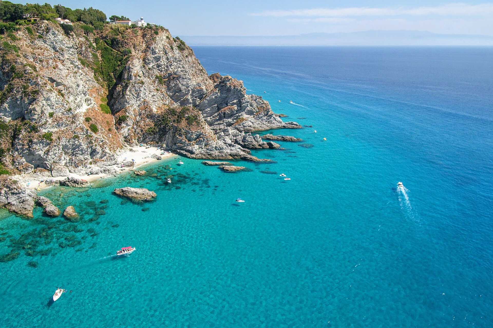 Capo Vaticano byder på flere af Calabriens mest populære strande, hver med sin egen karakter. Den mest berømte er Grotticelle, en bred og lavvandet strand, der er perfekt, når du vil tilbringe hele dagen ved havet. Lidt længere væk ligger den mere rolige Spiaggia di Tono, hvor tempoet er langsommere, og det er nemt at finde et fredeligt sted i sandet. For dig, der foretrækker små, mere afsidesliggende bugter, er der Praia i Focu, en lille strand med fantastisk klart vand. Området omfatter også Santa Maria-stranden, som er populær for sine lavvandede områder og klare, turkisblå vand.