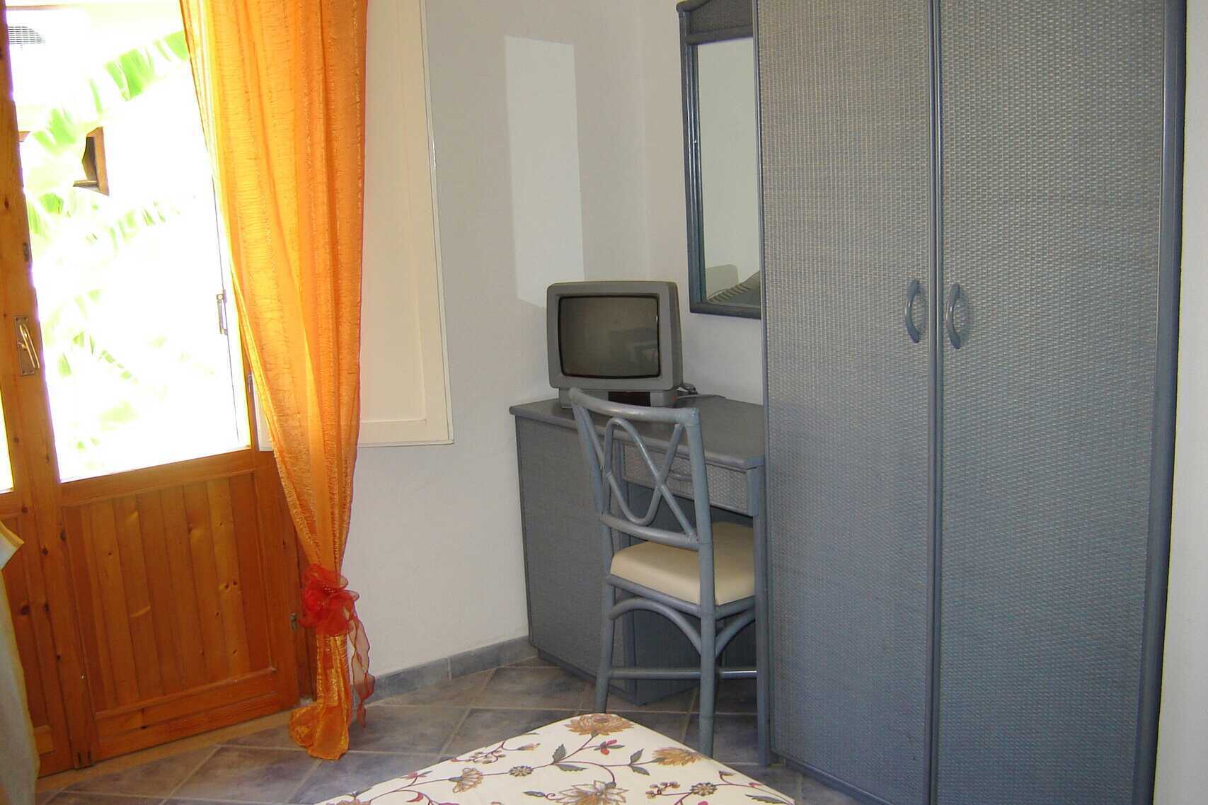 Dobbeltværelse med balkon eller terrasse. En dobbeltseng. Mulighed for ekstra opredning til én person. Gratis wifi, aircondition og deponering. Køleskab. Hårtørrer. Badeværelse med bruser og toilet. Rengøring 7 gange om ugen.