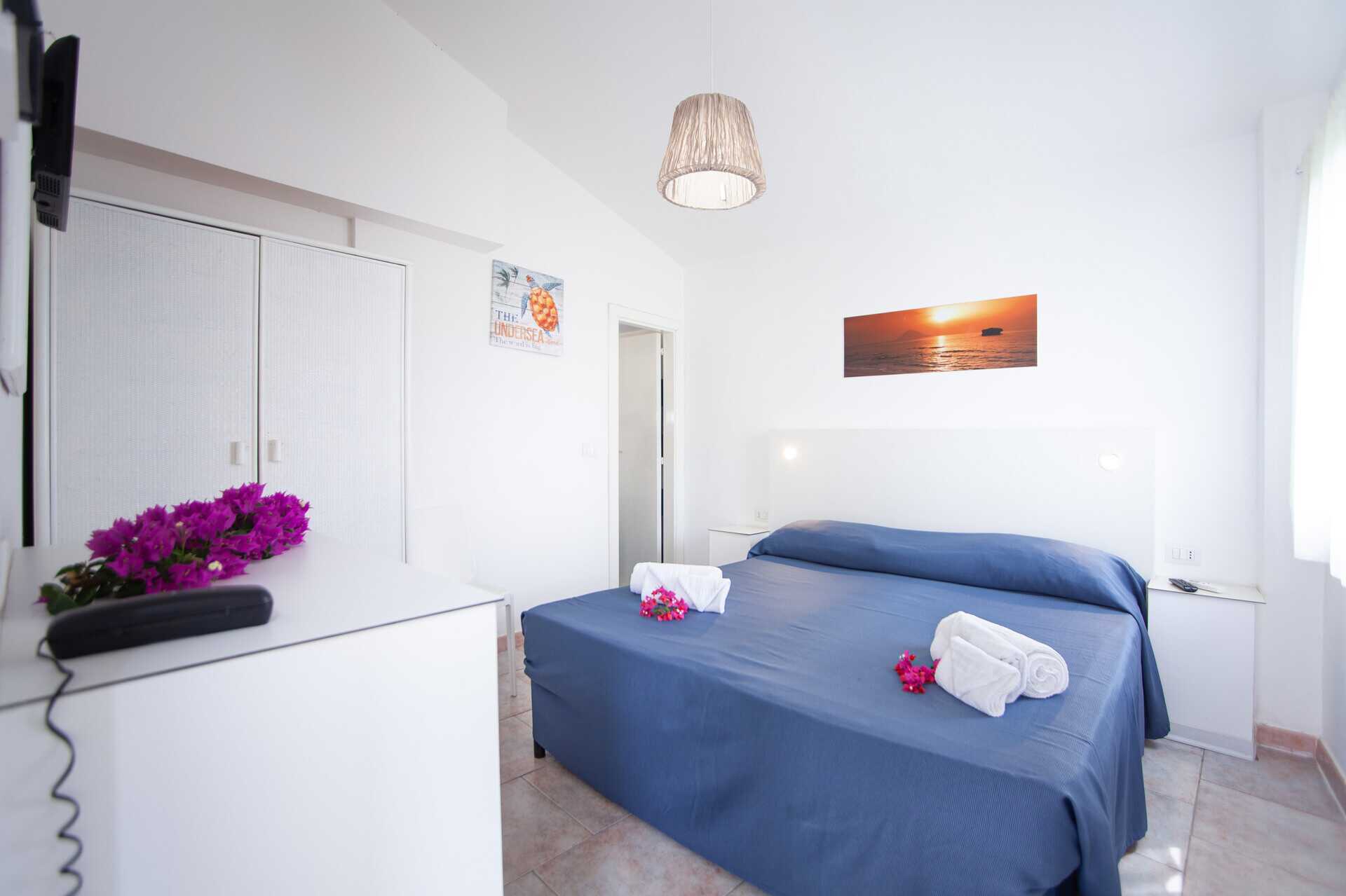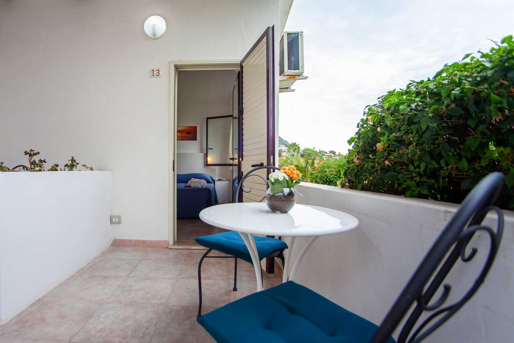 Dobbeltværelse med balkon eller terrasse. En dobbeltseng eller to enkeltsenge. Gratis wifi, aircondition og deponering. Lille køleskab. Tv med lokale kanaler. Hårtørrer. Badeværelse med bruser og toilet. Rengøring 7 gange om ugen.