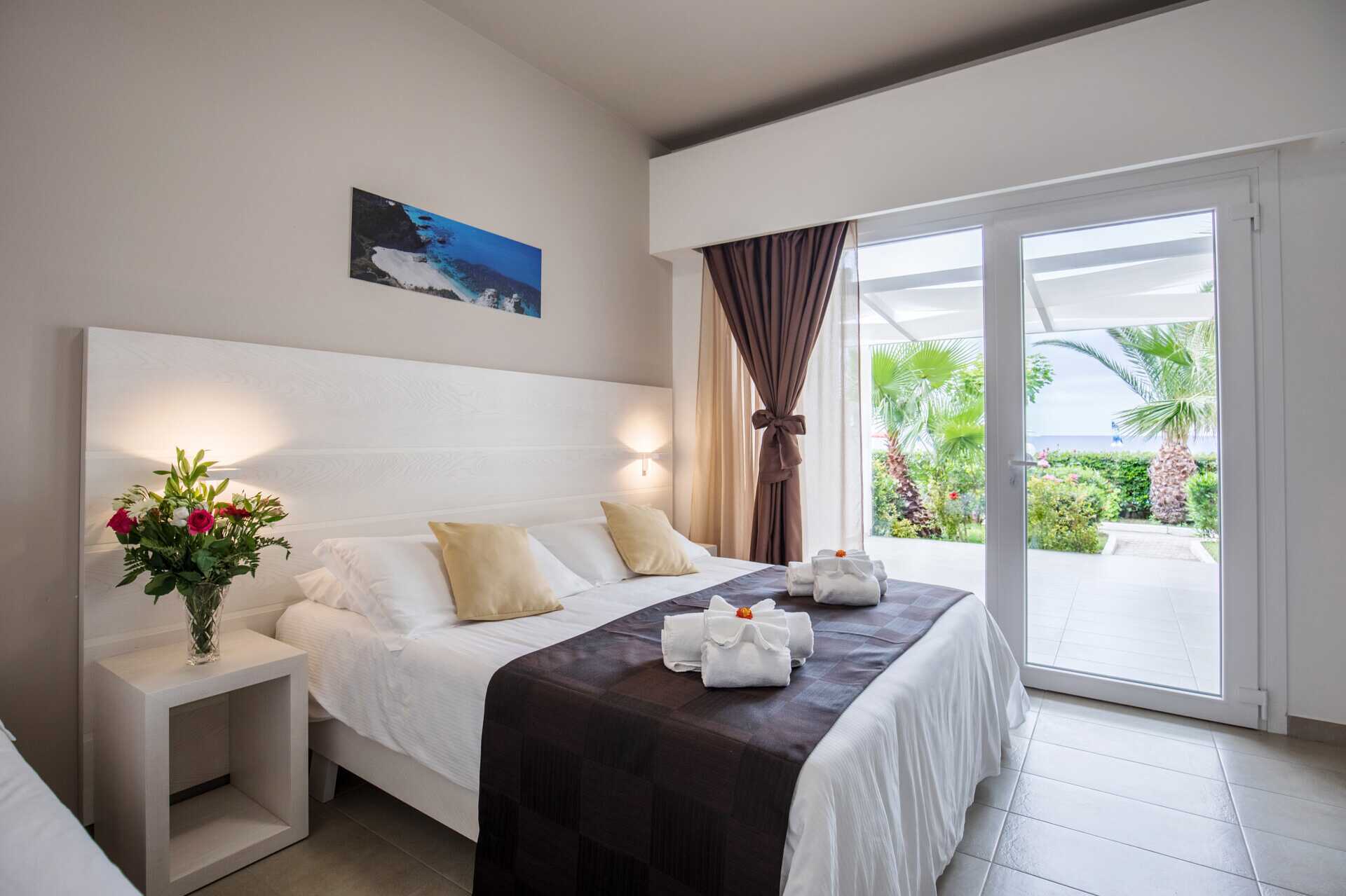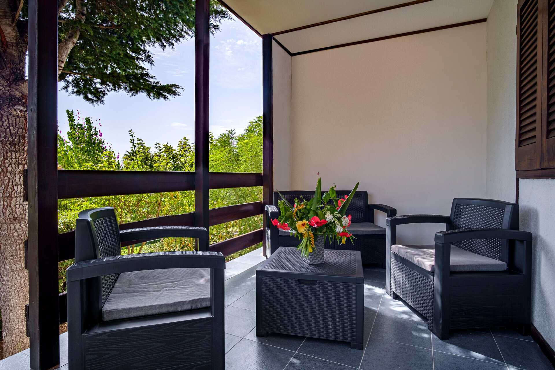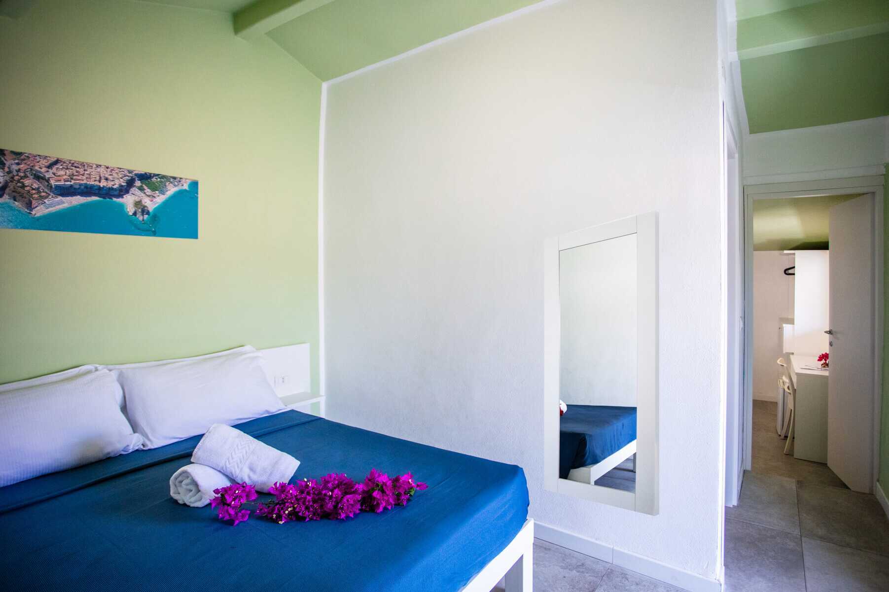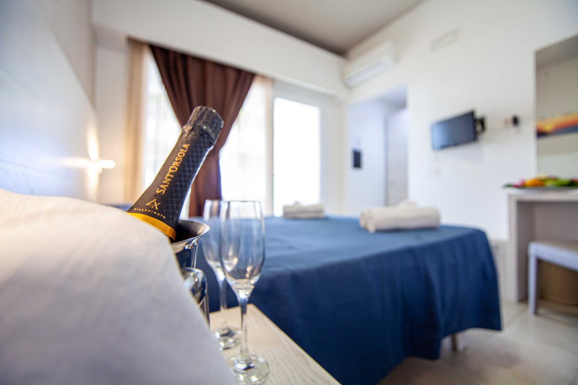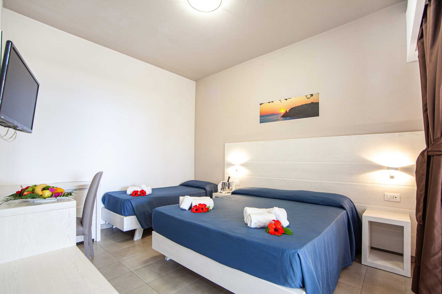 Familie-værelser med balkon eller terrasse. Familie-værelset består af to soveværelser. Et soveværelse med en dobbeltseng og det andet med to enkeltsenge. Mulighed for ekstra opredning. Gratis wifi, aircondition og deponering. Lille køleskab. Tv med lokale kanaler. Hårtørrer. Badeværelse med bruser og toilet. Rengøring 7 gange om ugen.