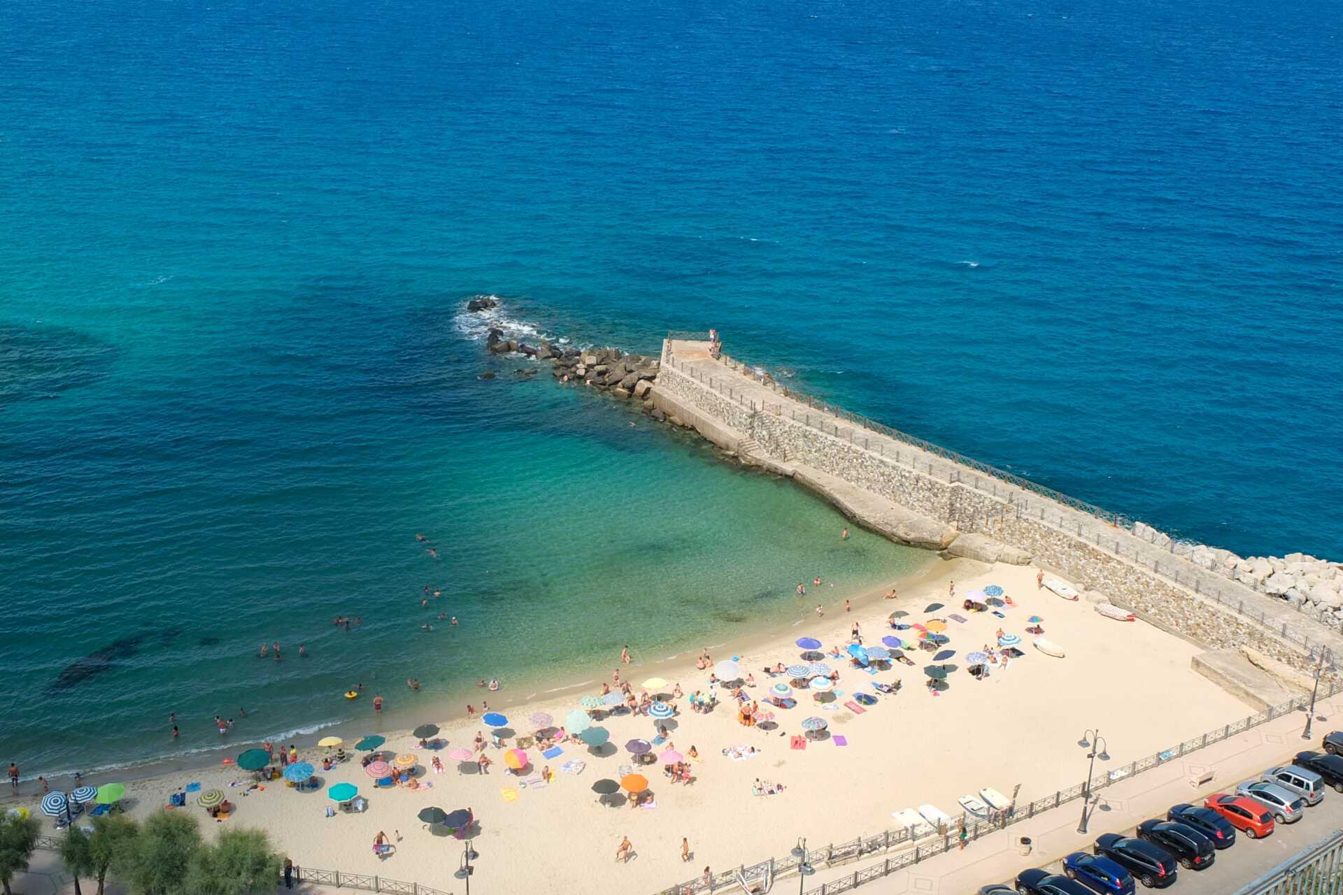 Omkring Pizzo finder du adskillige mindre strande og bugter, der er perfekte til afslappende dage ved havet. Spiaggia di Piedigrotta, der ligger lige ved siden af hulekirken, er en populær strand med klart vand og en dejlig, lokal atmosfære. Både familier og lokale bader her, og det er nemt at føle sig som en del af hverdagen. Hvis du vil skifte strandtid ud med nogle udflugter, er Pizzo en fremragende base. Den omkringliggende kyst byder på flere små strande, klipper og bugter, som du nemt kan nå med bil eller båd. Læs vores bedste tips til strande i Calabrien her!