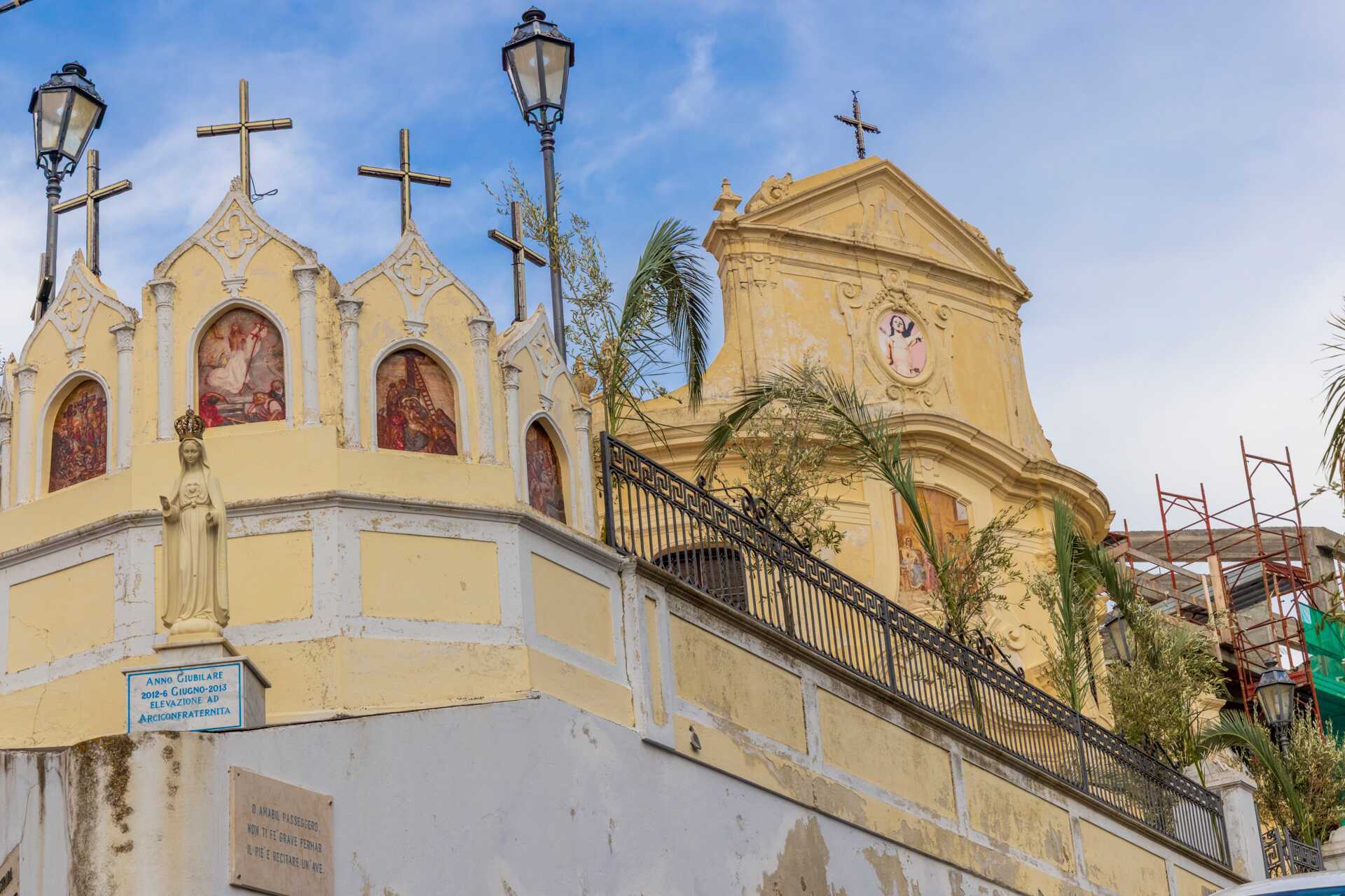 Et af Pizzos mest berømte vartegn er Castello Murat, det mægtige slot, der våger over byen og havet. Herfra har du en fantastisk udsigt over kysten og det dybblå hav, og stedet bærer på en dramatisk historie, der giver byen en ekstra dimension. En anden oplevelse, der virkelig skiller sig ud, er Chiesetta di Piedigrotta, den unikke hulekirke, der er hugget direkte ud af klippen lige ved havet. Inde i hulen finder du skulpturer og religiøse motiver, der smelter sammen med klippen. Et roligt og fascinerende sted, der giver Pizzo sin helt egen karakter.