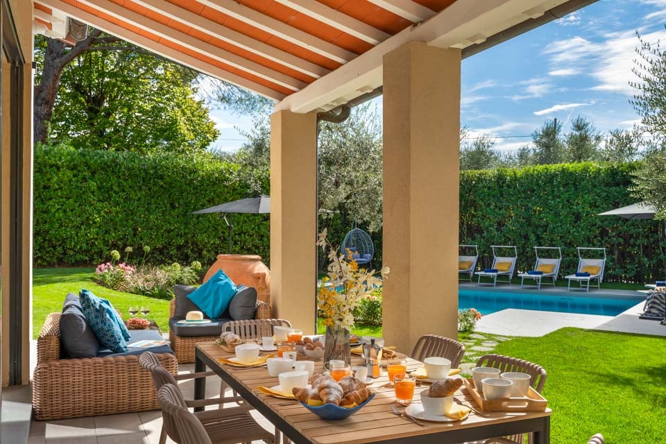 Udenfor kan gæsterne nyde en forfriskende dukkert i det krystalklare vand i den private pool, omgivet af frodige grønne områder og liggestole. Haven er ideel til udendørs spisning eller en afslappende morgenkaffe, mens det udendørs fitnesscenter og bordtennisanlæg giver mulighed for at holde sig aktiv og underholdt.
