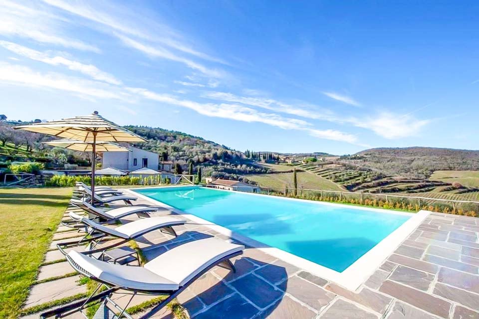Villa Blu ligger på en bølgende ejendom på 20 hektar og fremstår som et storslået tilflugtssted med moderne faciliteter, ideelt til store grupper.