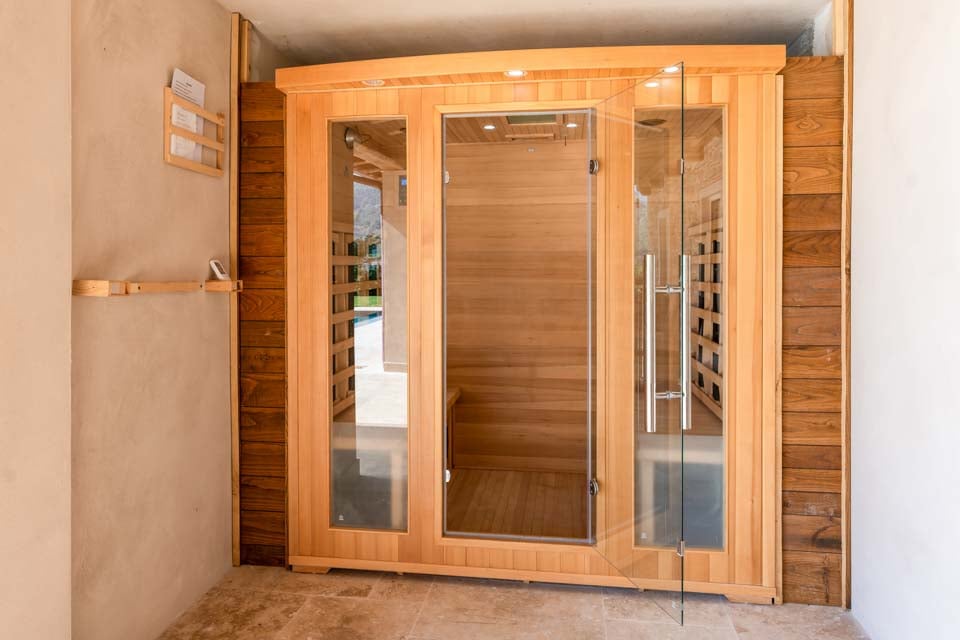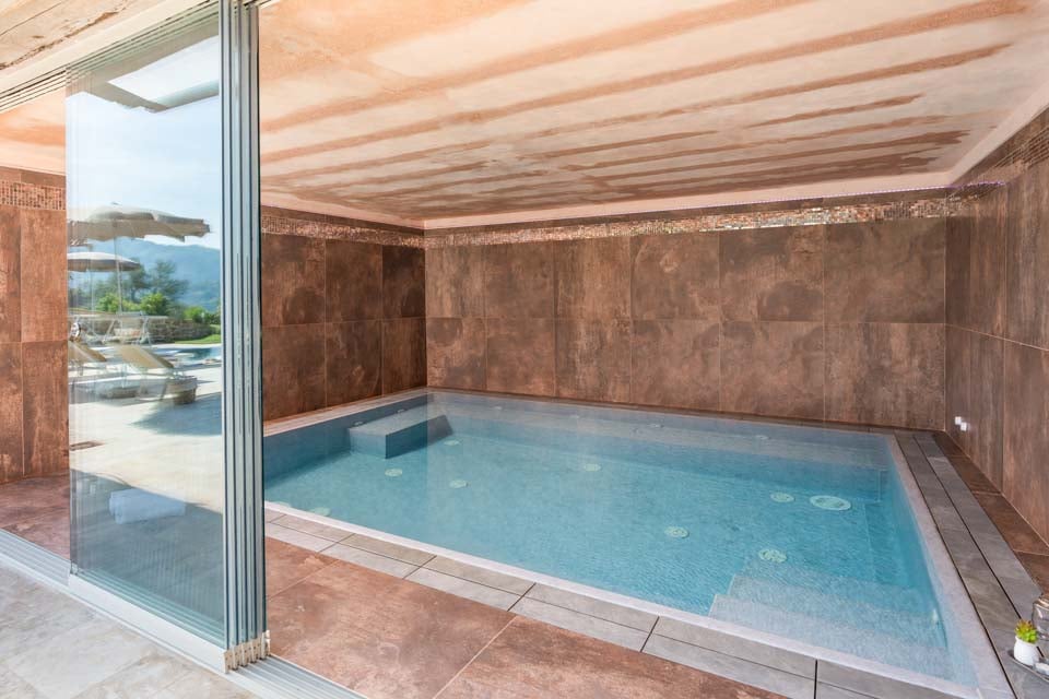 Indenfor finder gæsterne et smagfuldt møbleret interiør med varme toscanske toner og elegant indretning, suppleret af en opvarmet* indendørs pool med hydromassagedyser og en privat sauna til ultimativ afslapning, som begge er tilgængelige udefra fra terrassen omkring den udendørs pool.
