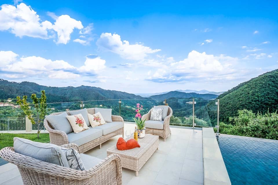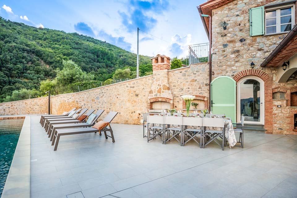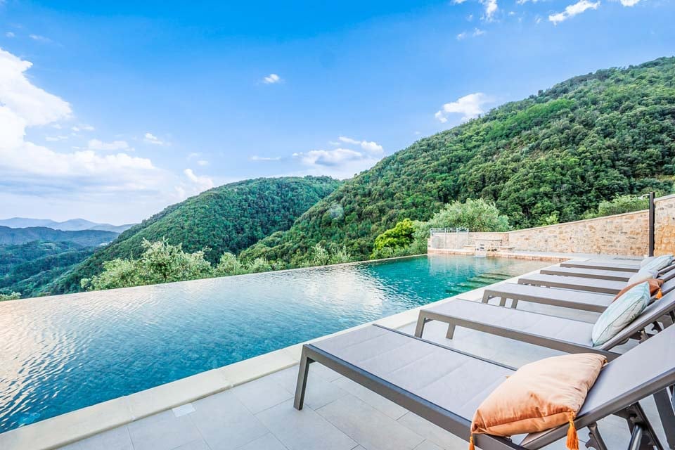 Udenfor strækker en saltvands-infinity-pool sig mod en storslået udsigt over de toscanske bakker og skaber den ideelle kulisse til lange, solrige eftermiddage. Udendørskøkkenet med traditionel pizzaovn og grill gør det til en fornøjelig oplevelse at spise udendørs. Der er poolhåndklæder, så du kan glide direkte fra vandet til terrassen uden at skulle tænke dig om.