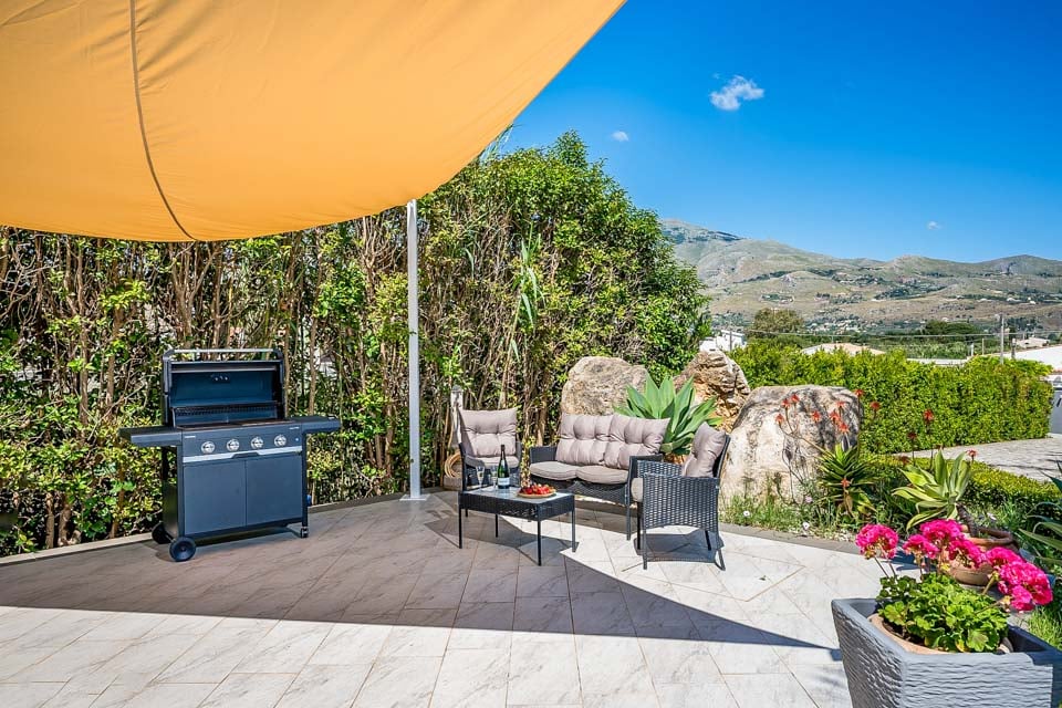 Gå udenfor for at nyde den private pool og gasgrill, perfekt til afslappede aftener under den sicilianske himmel. Fra terrassen kan du nyde den storslåede udsigt over bjergene, der indrammer villaen smukt. En bil er essentiel her, hvilket giver dig friheden til at udforske kystlinjen, charmerende byer og skjulte perler i nærheden.
