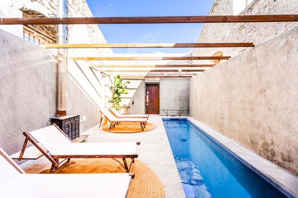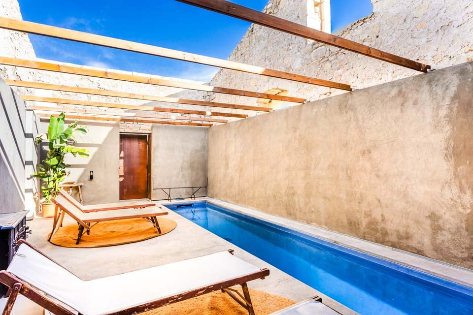 Hvert hjørne af ejendommen fortæller en historie med originale gulve, synlige stenvægge og omhyggeligt bevarede arkitektoniske detaljer, der giver villaen dens rå, rustikke appel. Interiøret er minimalistisk og beroligende, hvor de originale detaljer er i centrum, samtidig med at det tilbyder komfort og enkelhed.