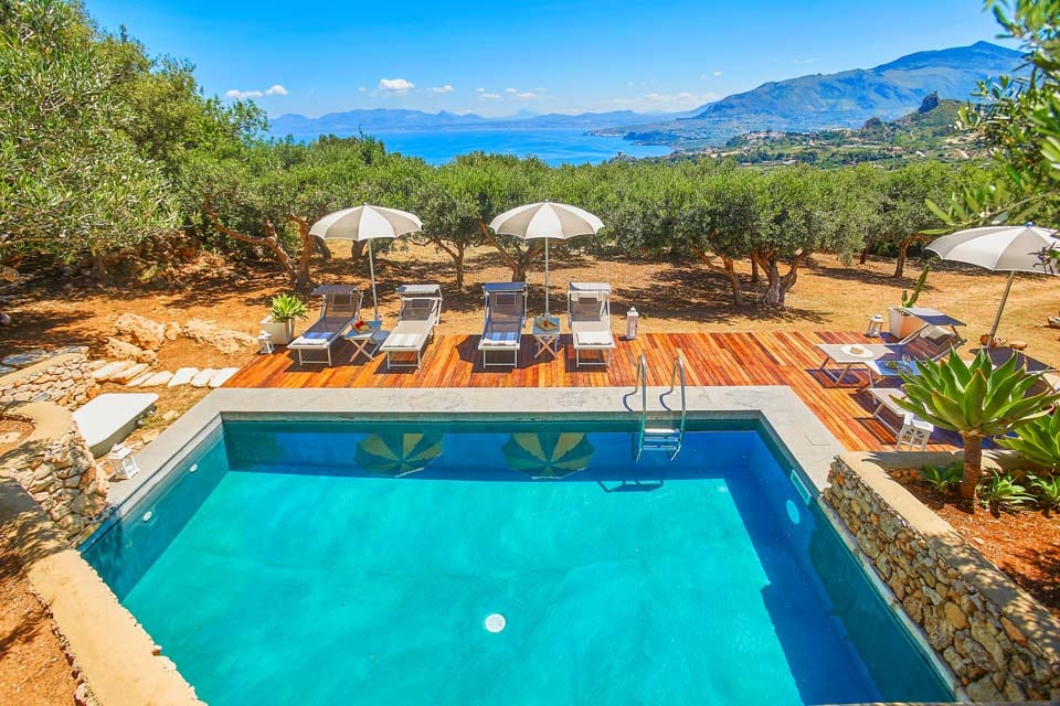 Villaen ligger midt i sin egen olivenlund langs den barske kystlinje i det nordvestlige Sicilien og kan prale af en privilegeret beliggenhed. Beskyttet mod kystvindene af majestætiske bjerge i baghaven, præsenterer den et panoramisk skue af Castellammare del Golfos fortryllende bugt fra dens vidtstrakte område.