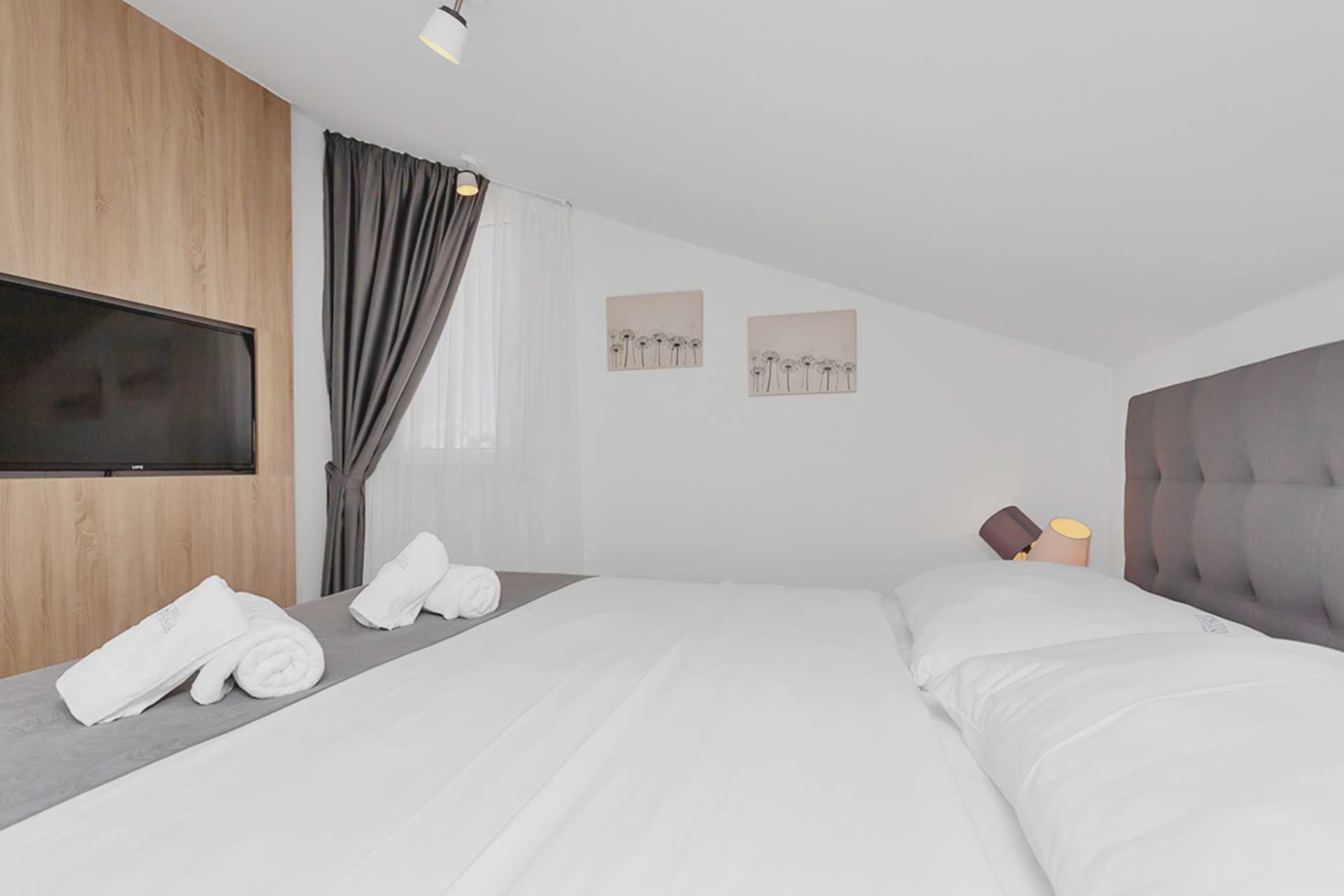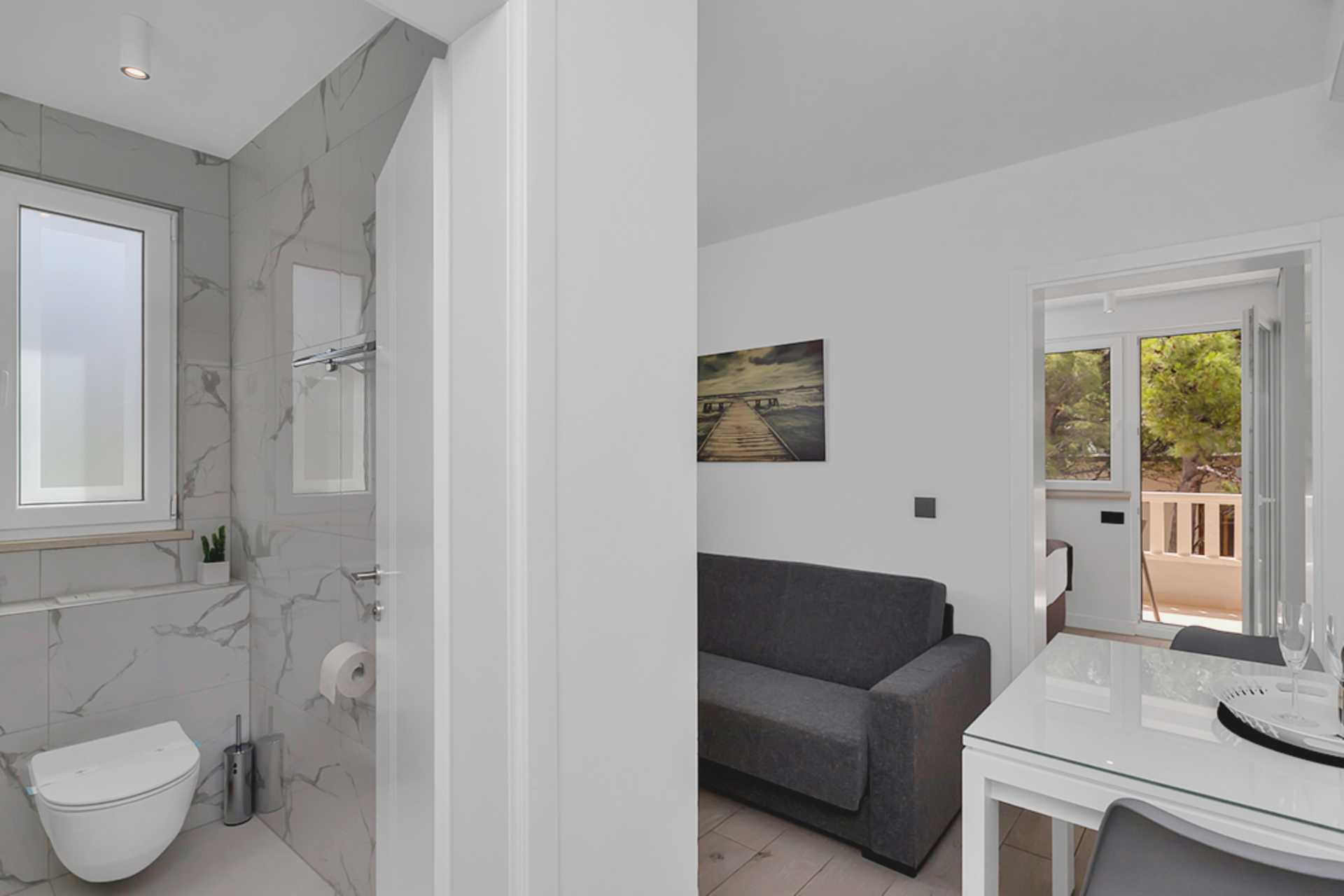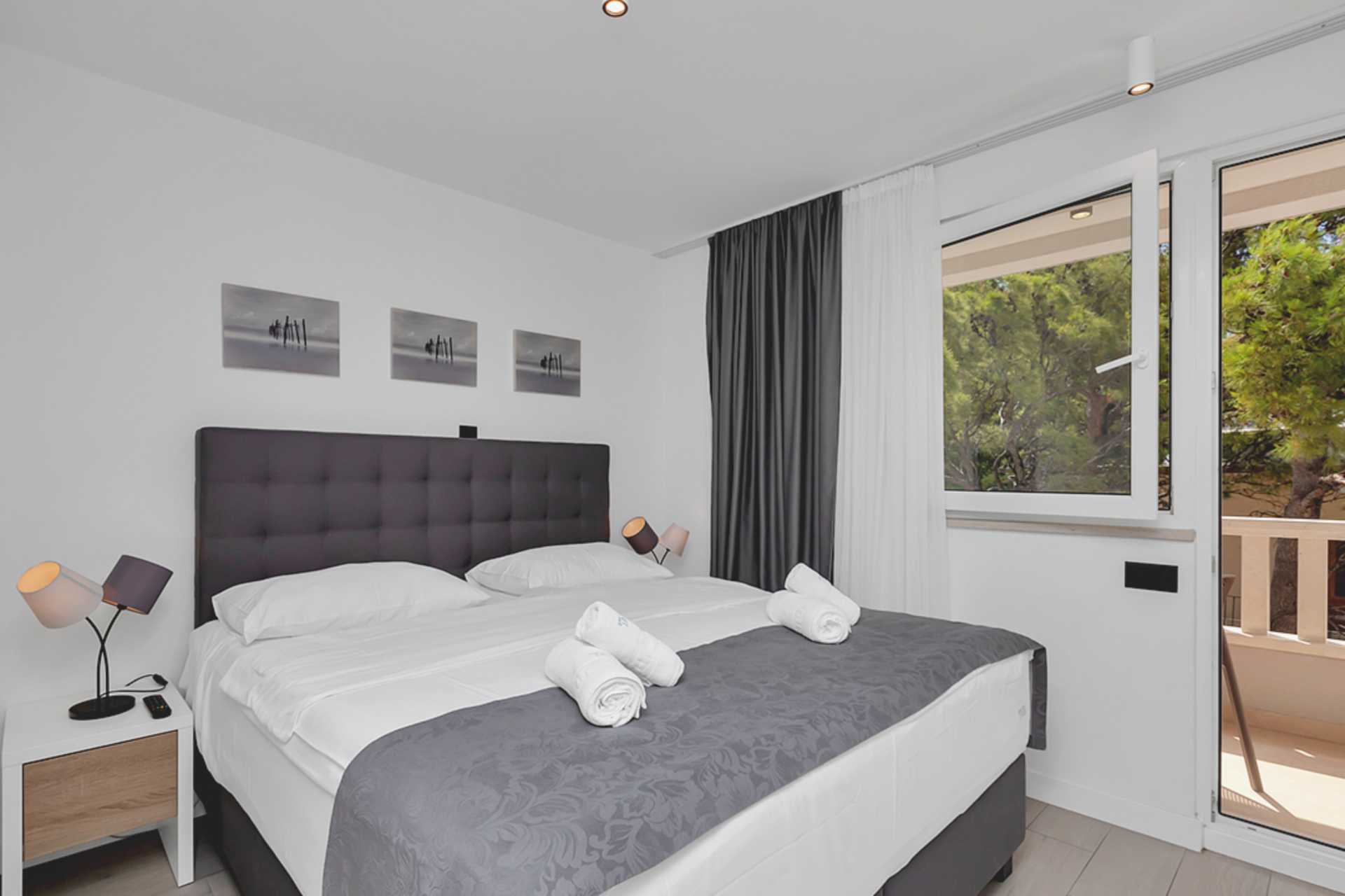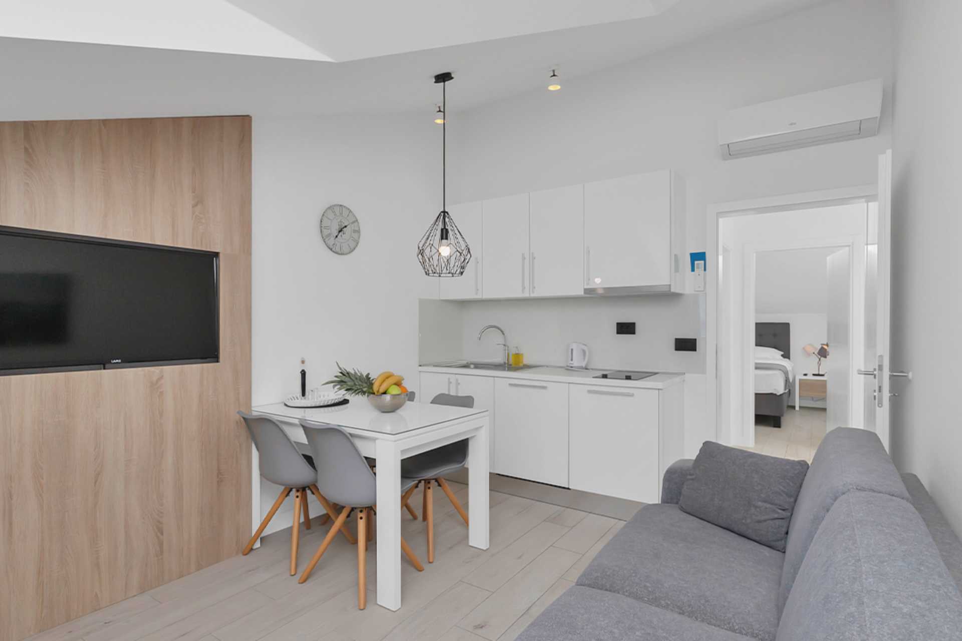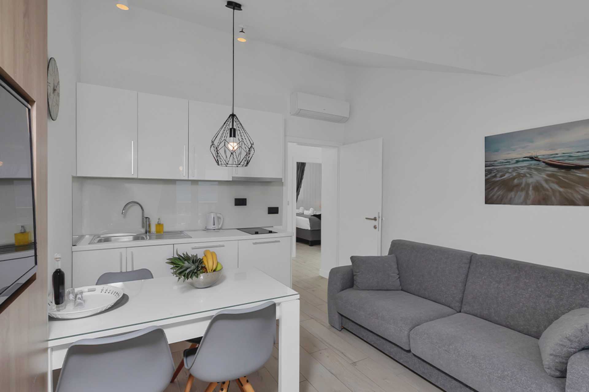2-værelses lejlighed med balkon eller balkon i stueplan. Nogle balkoner har havudsigt eller delvis havudsigt. Lejlighederne placeret i toppen af bygningen med balkon har en lidt lavere loftshøjde. Et soveværelse og et kombineret opholdsrum med minikøkken. En dobbeltseng eller to enkeltsenge. Mulighed for ekstra opredninger i sovesofa. Minikøkken med kogeplader, køleskab, mikroovn, opvaskemaskine og enkelt køkkenudstyr. Kaffemaskine - 4 kapsler medfølger. Gratis wifi, aircondition og deponering. Tv med internationale kanaler. Hårtørrer. Badeværelse med bruser og toilet. Rengøring 3 gange om ugen.