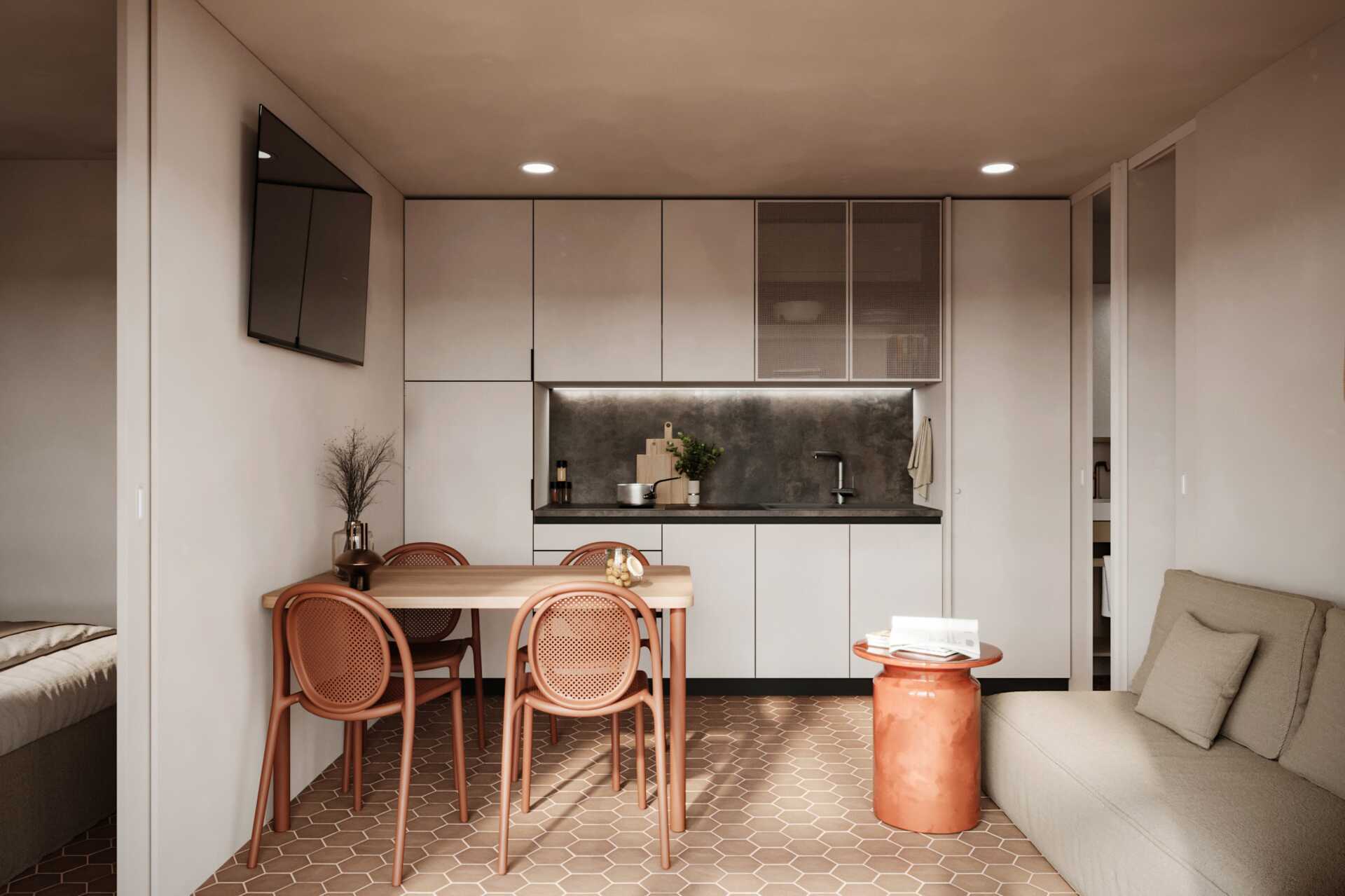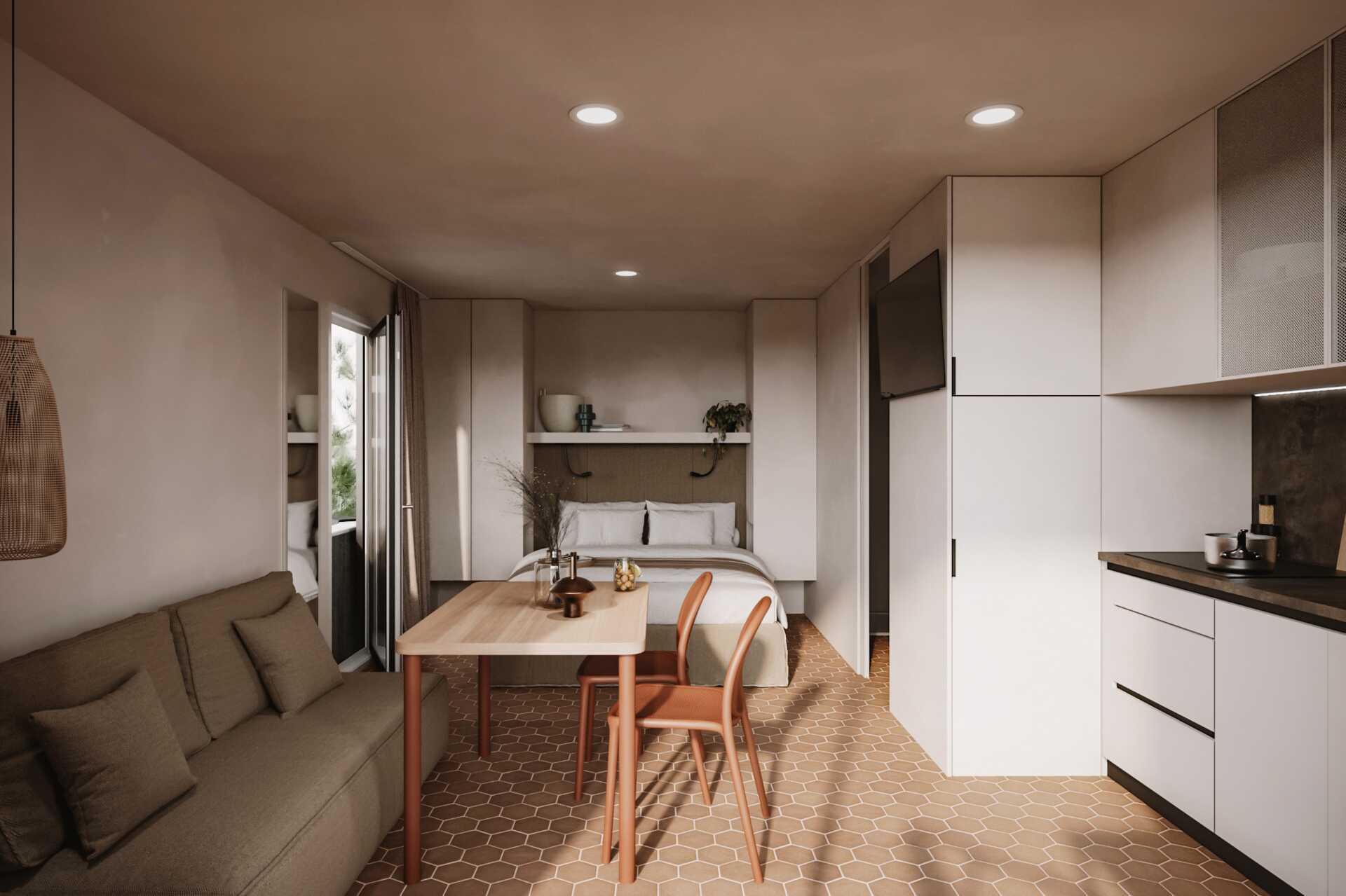 1-værelses lejlighed med terrasse i stueplan og en privat jacuzzi. En dobbeltseng og en sovesofa. Køkkendel med køleskab, komfur, opvaskemaskine, el-kedel, kaffemaskine og enkelt køkkenudstyr. Gratis wifi, aircondition og deponering. Tv. Hårtørrer. Badeværelse med badekar/bruser og toilet. Rengøring 1 gang om ugen. Børn under to år tæller med i det maksimale antal personer på værelset.