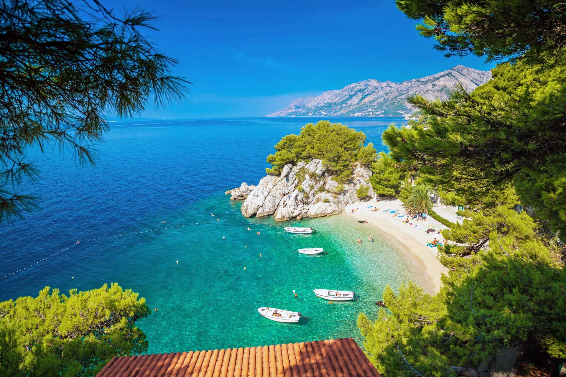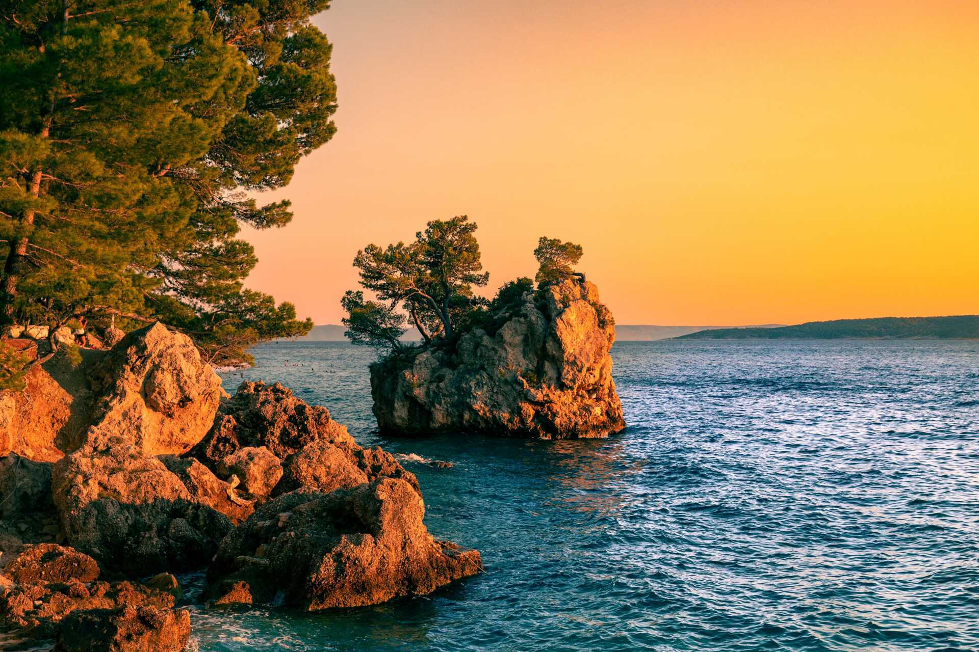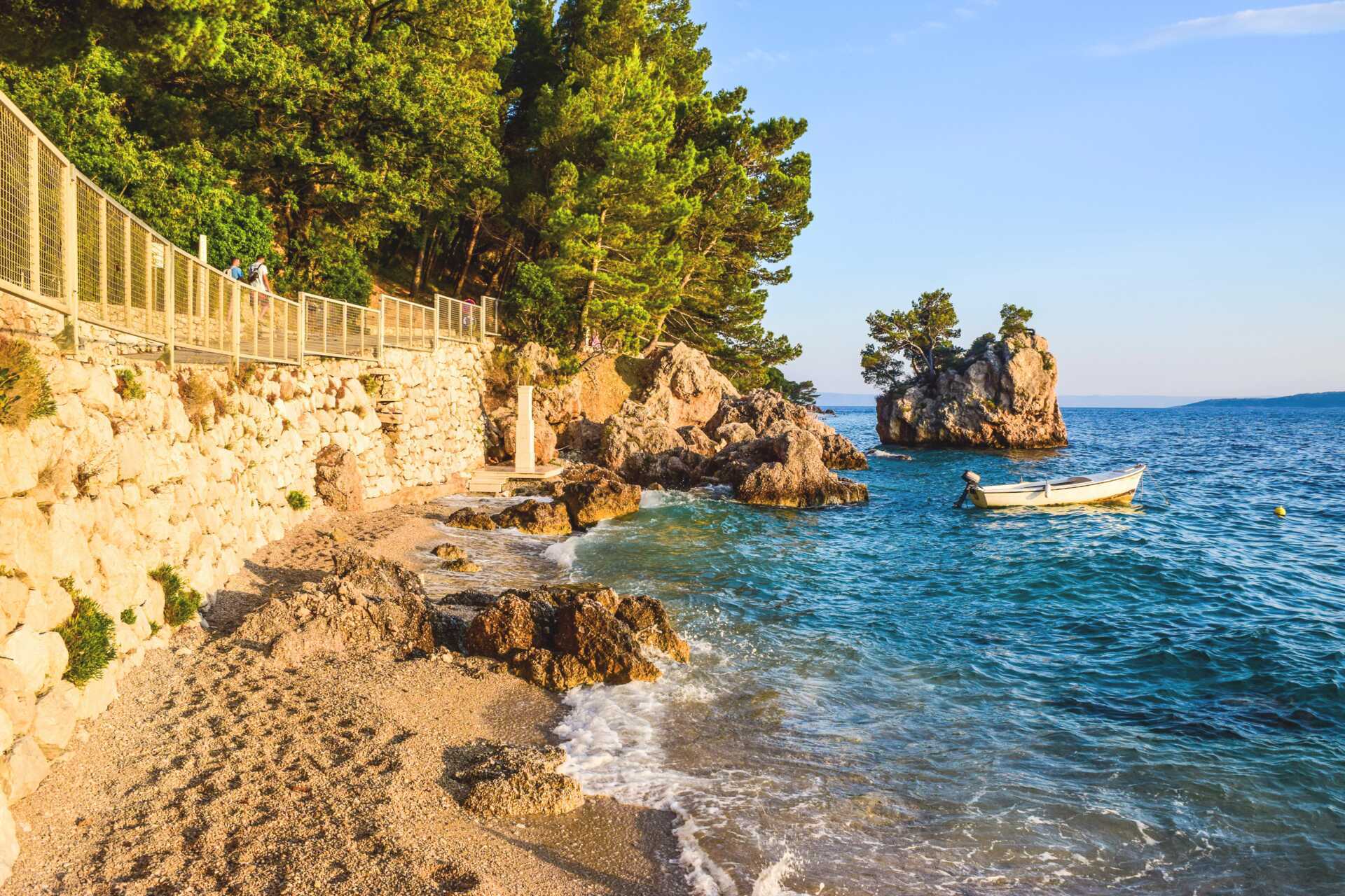 I Brela er der flere dejlige strande, der venter på at blive opdaget. Her kan du slentre i skyggen af de smukke fyrretræer og finde dit perfekte sted ved havet. Vandet er krystalklart og som regel meget roligt – perfekt til dig, der vil hoppe rundt på en luftmadras, snorkle eller til dig, der bare vil nyde udsigten fra en SUP. Gå ikke glip af at besøge den populære Punta Rata-strand, som af mange anses for at være en af Kroatiens fineste. Her skal du også benytte lejligheden til at tage de bedste billeder fra ferien ved den ikoniske lille klippeø Kamen Brela.