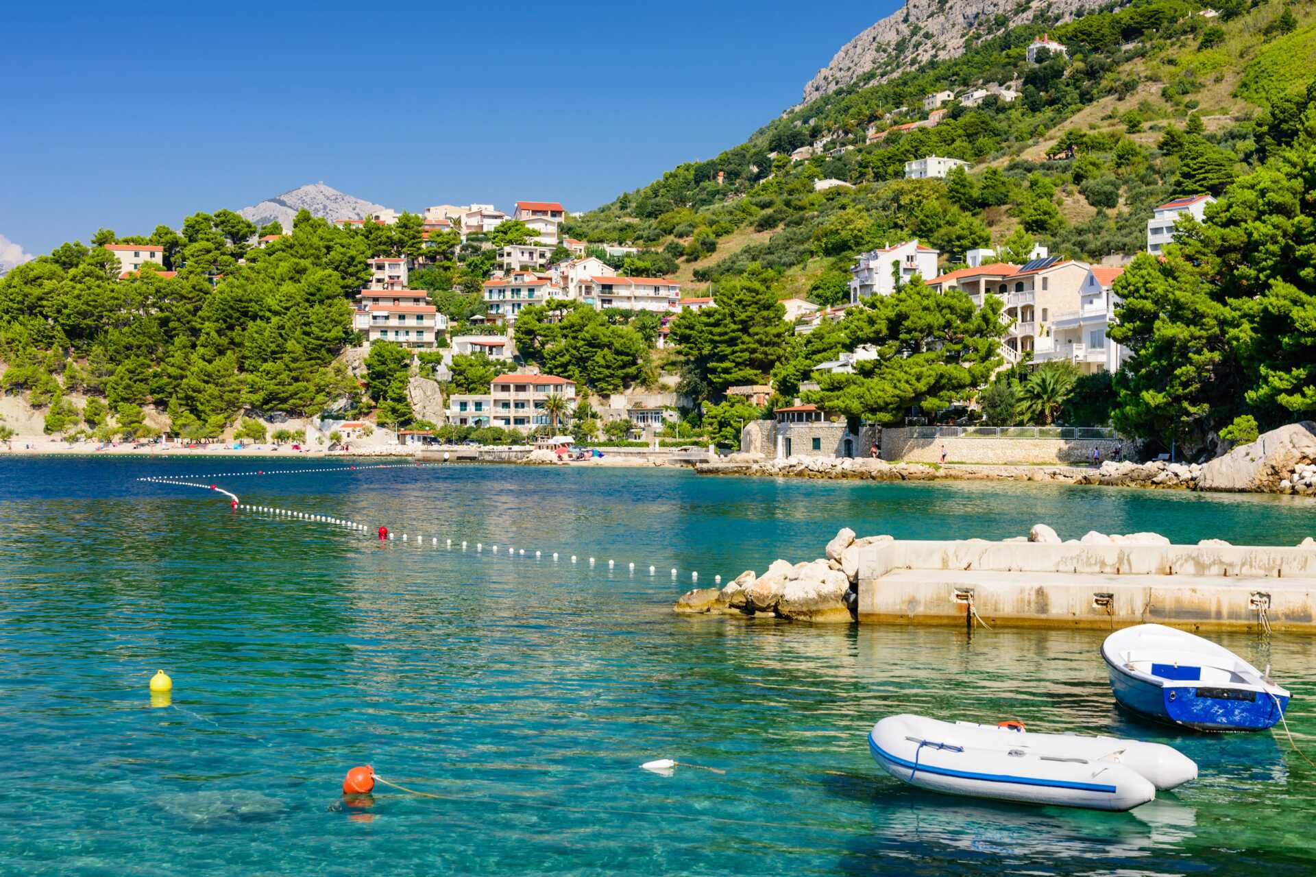 Hvis du har lyst til at udforske mere i løbet af din ferie, ligger Baska Voda og Makarska kun i kort afstand. I hyggelige Baska Voda kan du nyde den lille havn og god mad på en af restauranterne ved vandet. Vil du have lidt mere liv i gaden, skal du tage til Makarska, som tiltrækker med et livligt natteliv, sin charmerende gamle bydel og den fine halvø Sveti Petar.