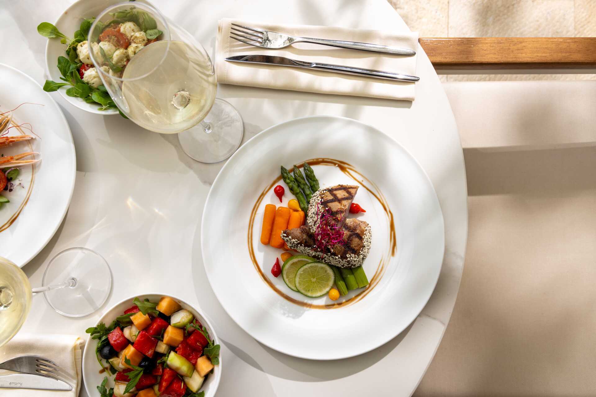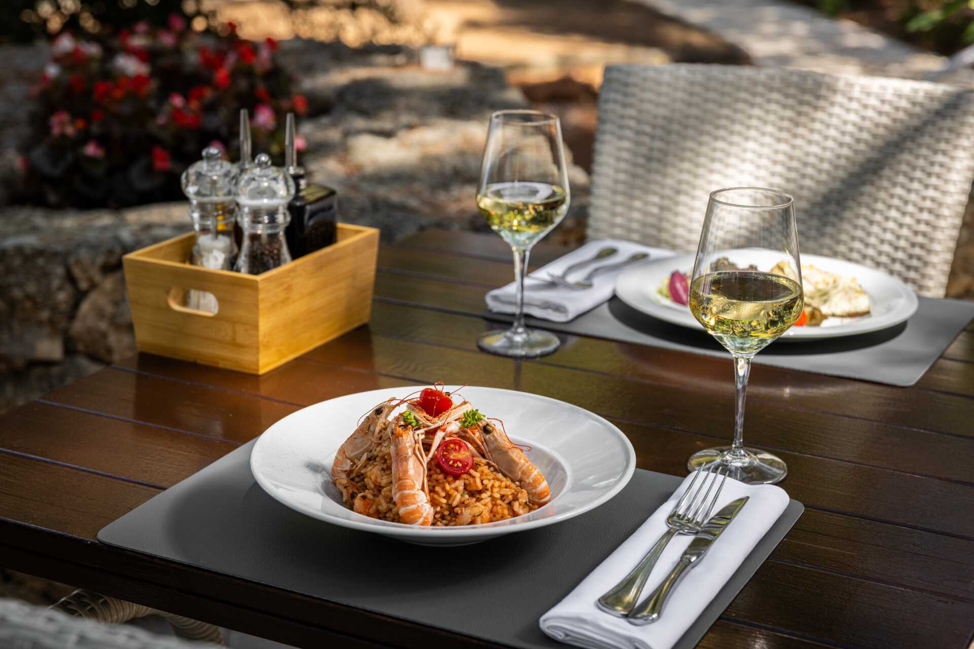 Hotellet har en restaurant, hvor der serveres morgenmad og middag. Poolbar. Nede ved stranden ligger Maestral Beach Club, hvor man kan få en drink og spise en bid mad, og her kan man også nyde musik spillet af en DJ. Bar i lobbyen.