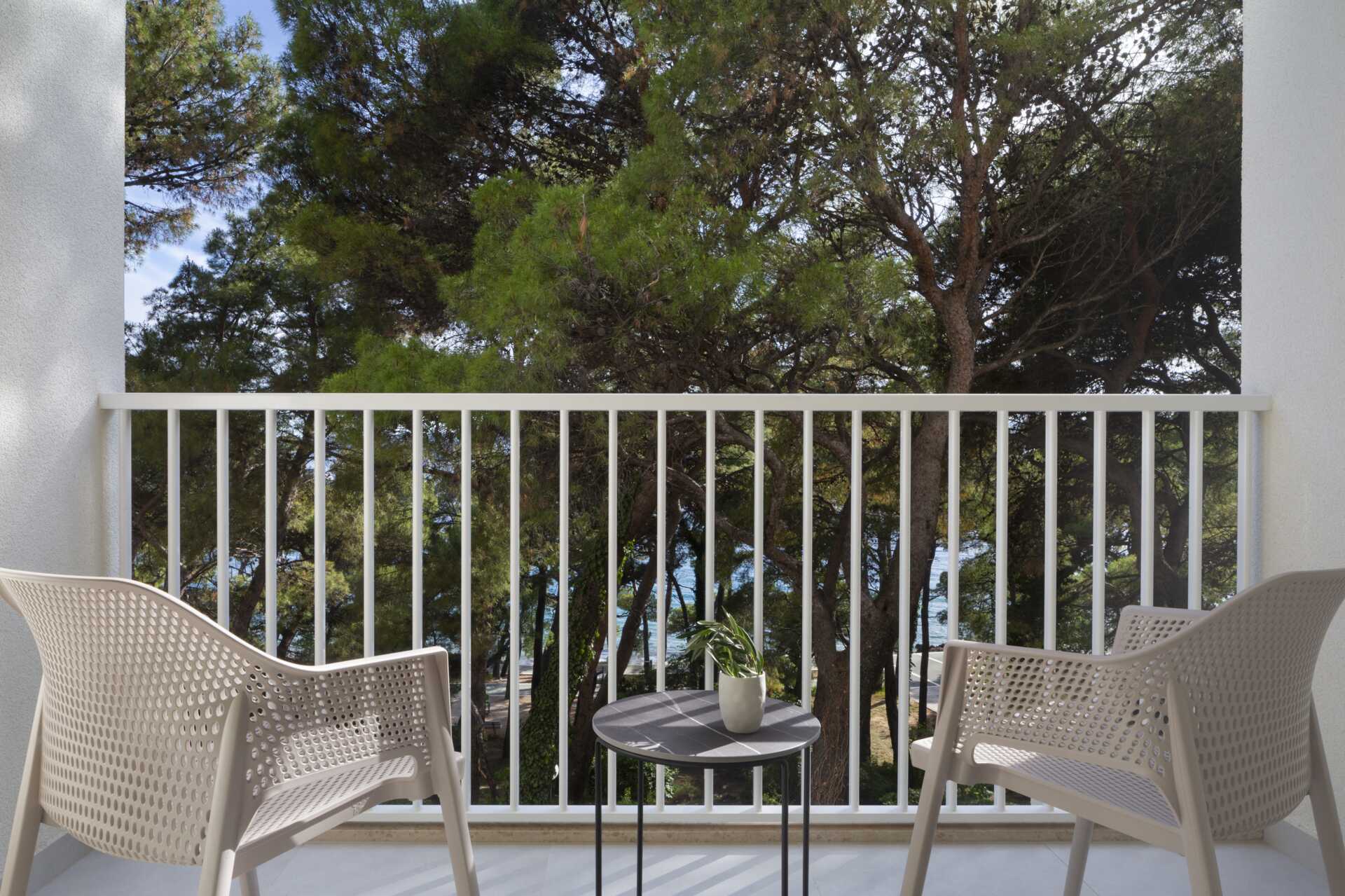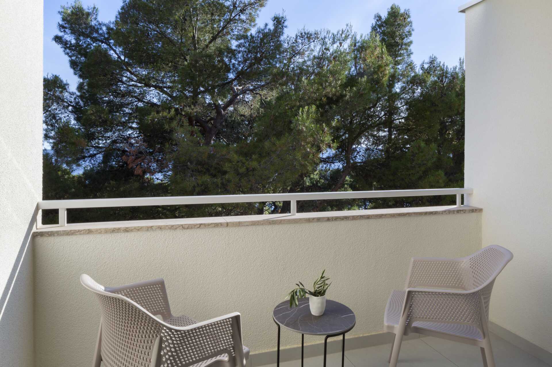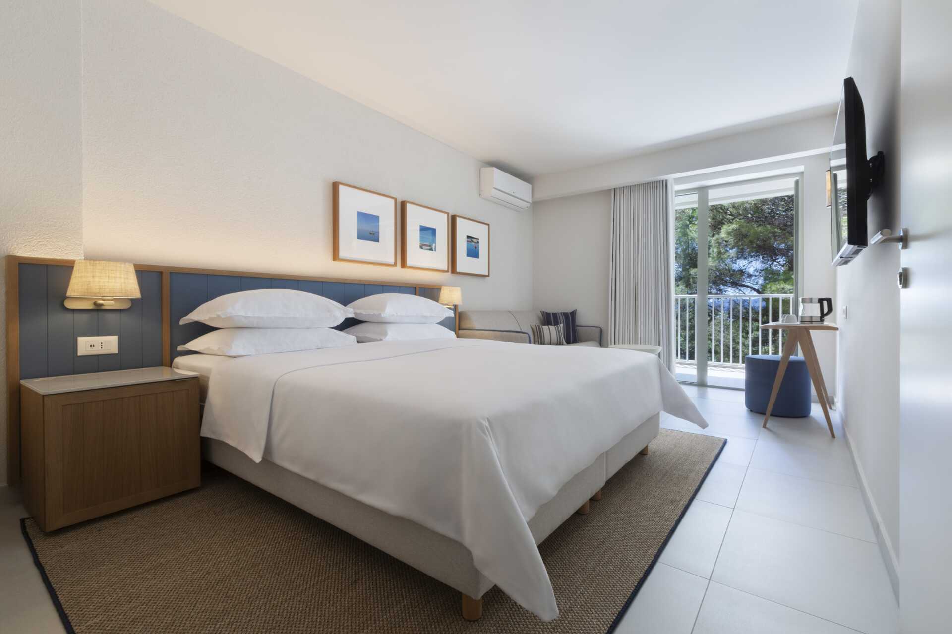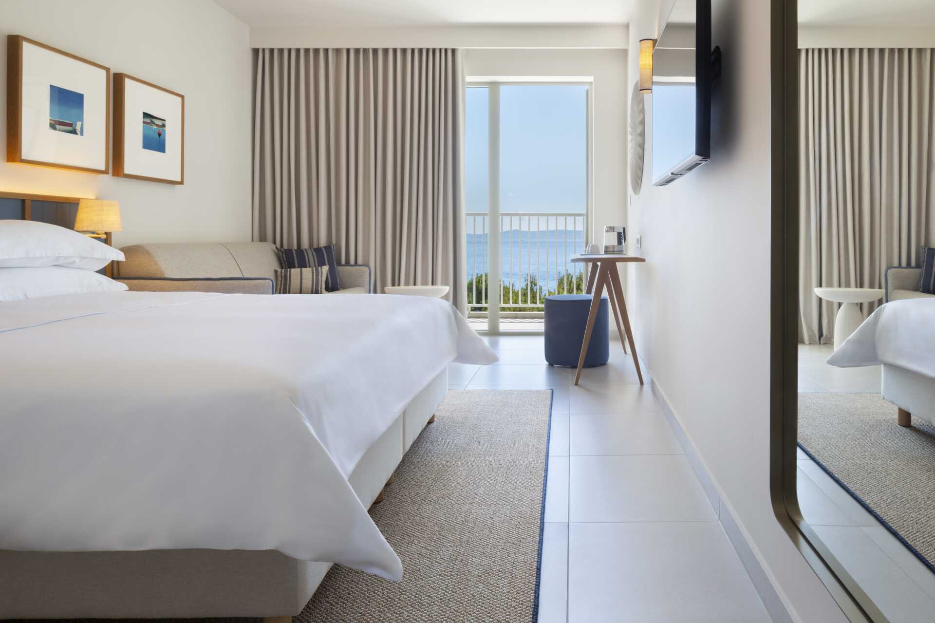Superior-værelse med balkon og delvis havudsigt. En dobbeltseng eller to enkeltsenge. Mulighed for ekstra opredninger i sovesofa. Gratis wifi, aircondition og deponering. Minibar. El-kedel og kaffe/te. Tv med internationale kanaler. Hårtørrer. Badeværelse med bruser og toilet. Rengøring 7 gange om ugen.