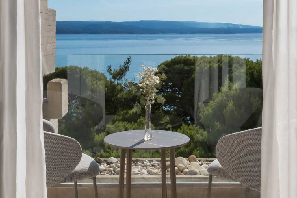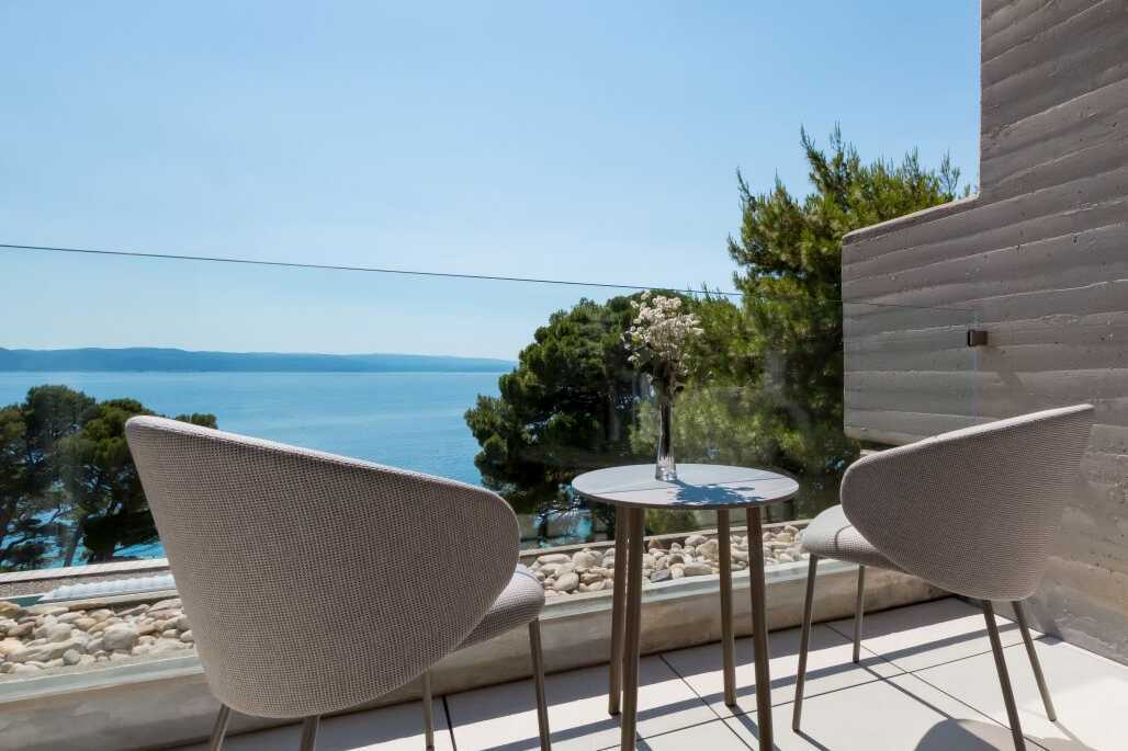 Større dobbeltværelse med balkon og havudsigt. En dobbeltseng eller to enkeltsenge. Mulighed for ekstra opredning i fold ud-stol/sofa. Wifi, aircondition (når udetemperaturen overstiger 25 grader) og deponering indgår. Minibar. El-kedel og kaffe/te. Tv med internationale kanaler. Hårtørrer. Badeværelse med bruser og toilet. Rengøring 7 gange om ugen.