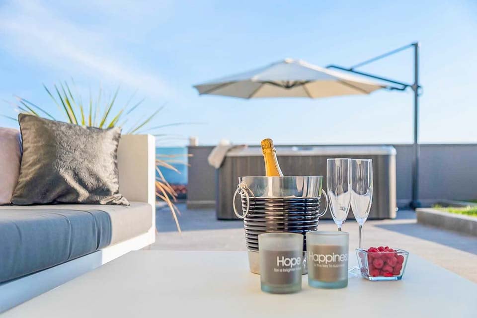 Måske vil du endda smutte væk i et par øjeblikke af alenehed i spabadets boblende omfavnelse, læne dig tilbage, indånde den varme luft og nyde den fantastiske udsigt, mens du lader alle dine bekymringer forsvinde. Med så mange overdådige steder at læne dig tilbage og slappe af, vil du ikke have problemer med at finde det ideelle sted at slappe af og lade dagen gå forbi. Hvorfor ikke omfavne villalivet fuldt ud og opdage Kroatiens kulinariske lækkerier ved at tilberede et lækkert måltid, som alle kan nyde? Nyd Middelhavets smage, og spis en familiemiddag under åben himmel, hvor du kan nyde hvert øjeblik med dine nærmeste. Afslut din aften med en afslappende forkælelse i saunaen, hyggelige snak om natten på sofaerne, eller træk dig tilbage til sengen for en dejlig nats søvn.