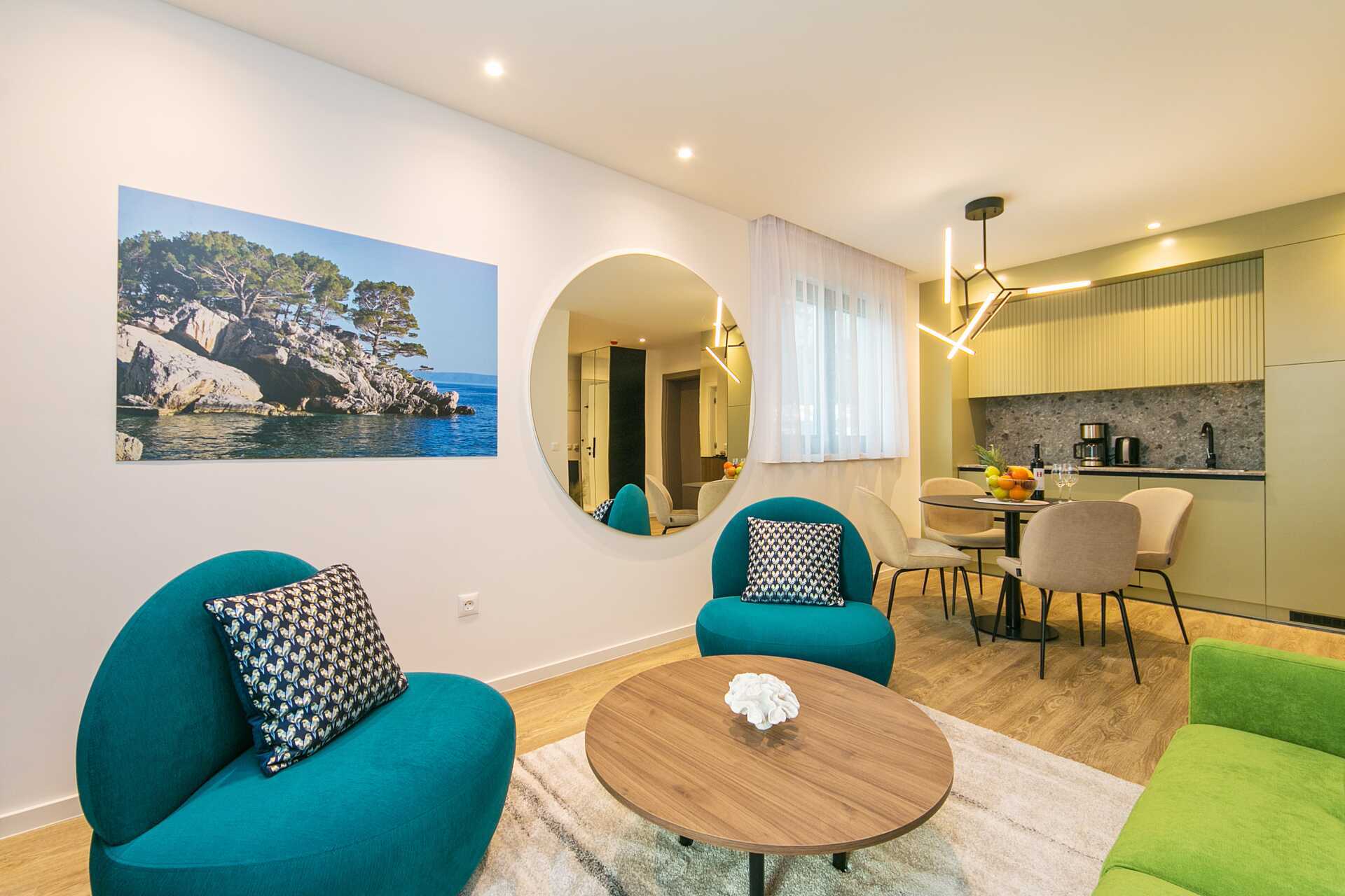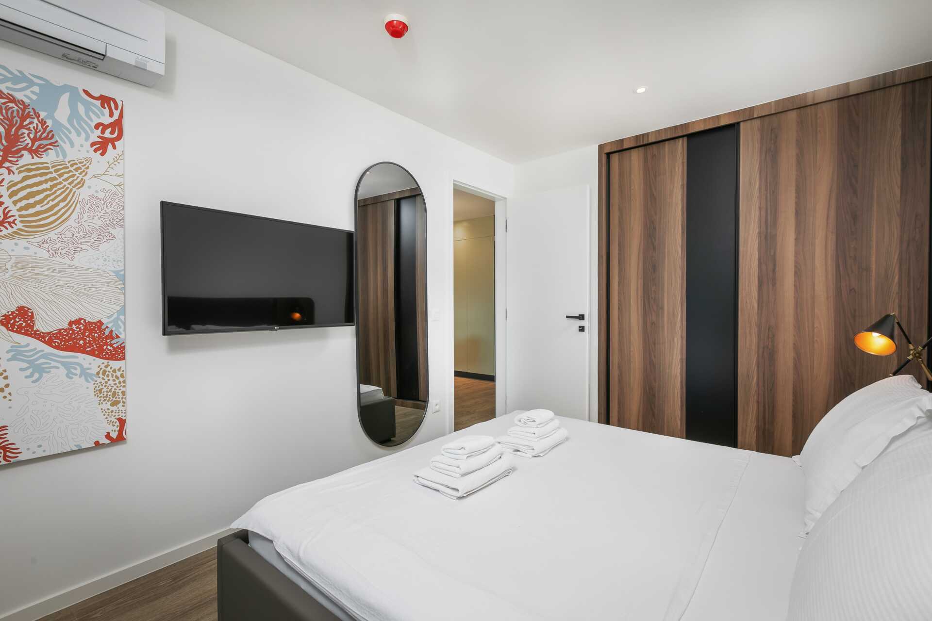 1-værelses lejligheder med balkon. Soveværelse kombineret med minikøkken. En dobbeltseng eller en sovesofa af høj kvalitet. Minikøkken med køleskab, kogeplader, opvaskemaskine, kaffemaskine, el-kedel, mikrobølgeovn og enkelt køkkenudstyr. Gratis wifi, aircondition og deponering. Tv med internationale kanaler. Hårtørrer. Badeværelse med vaskemaskine, bruser og toilet. Rengøring 7 gange om ugen.