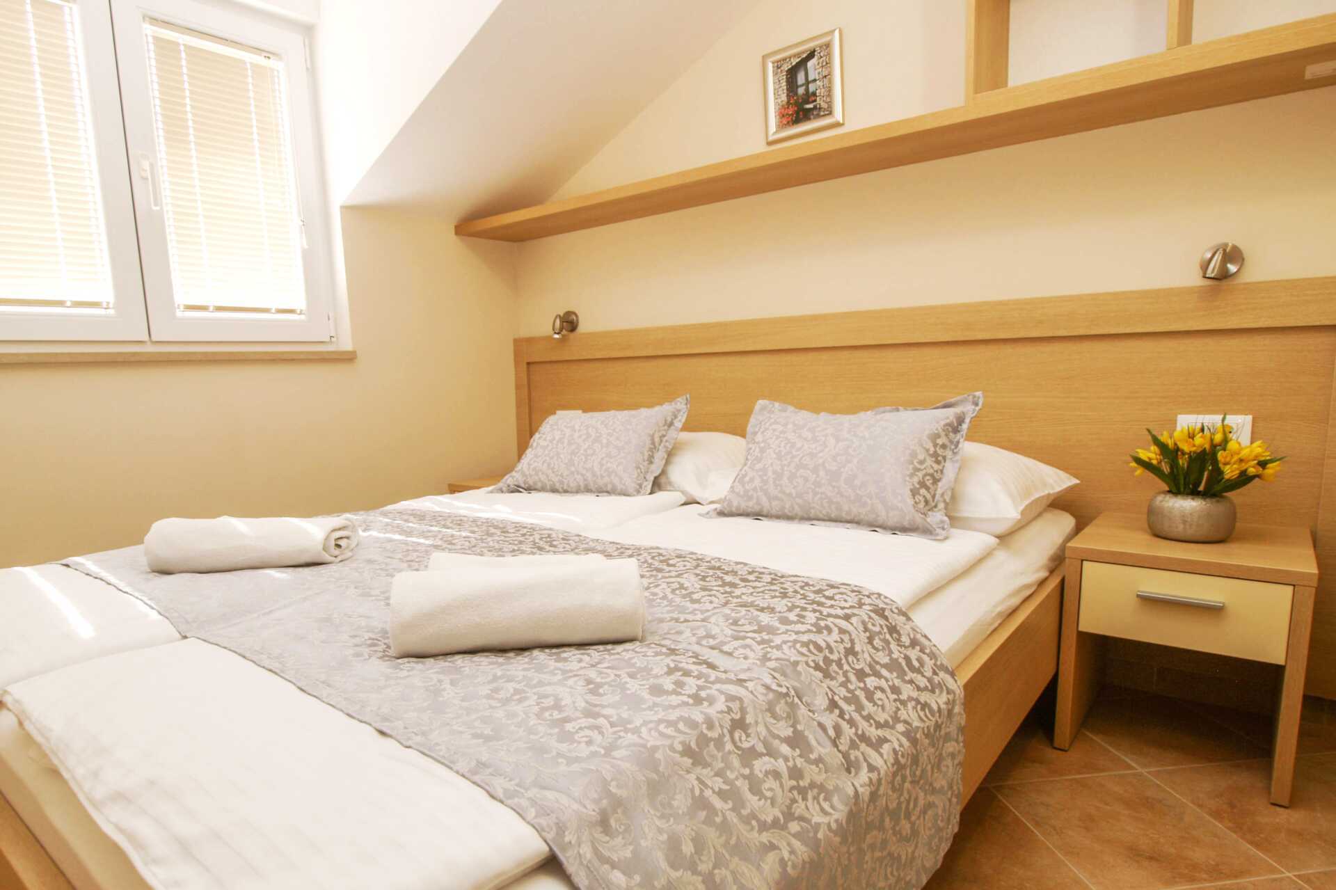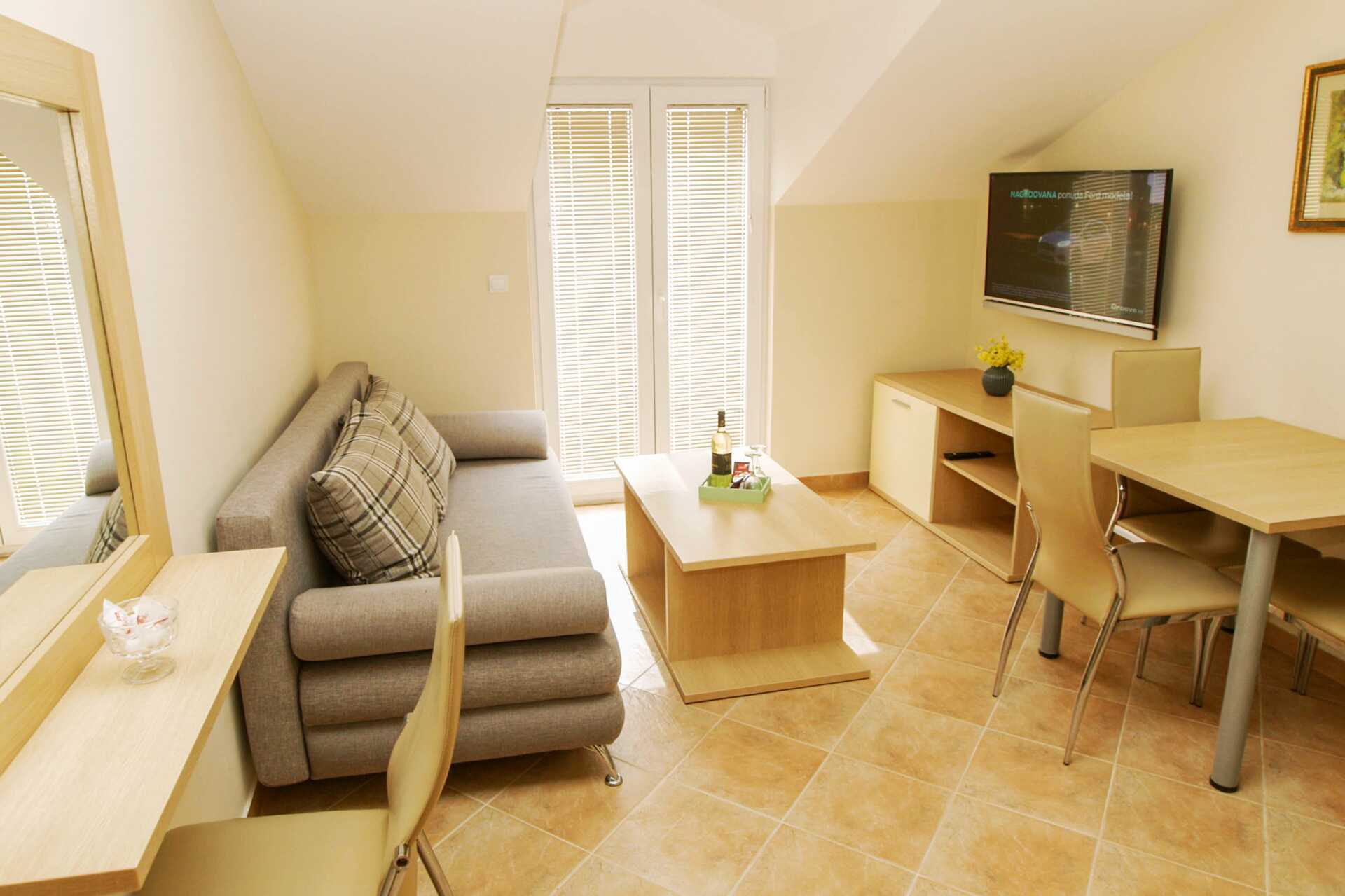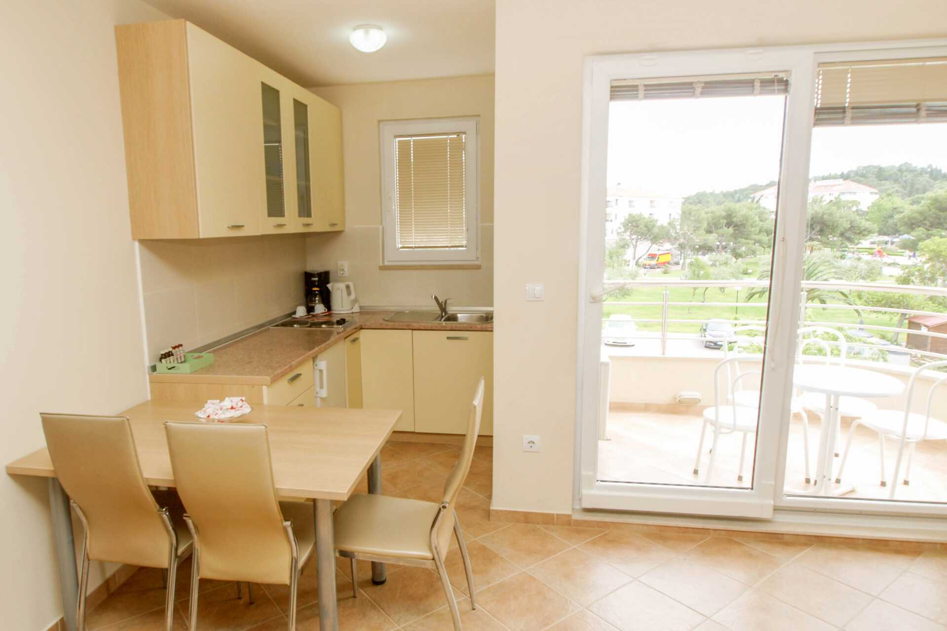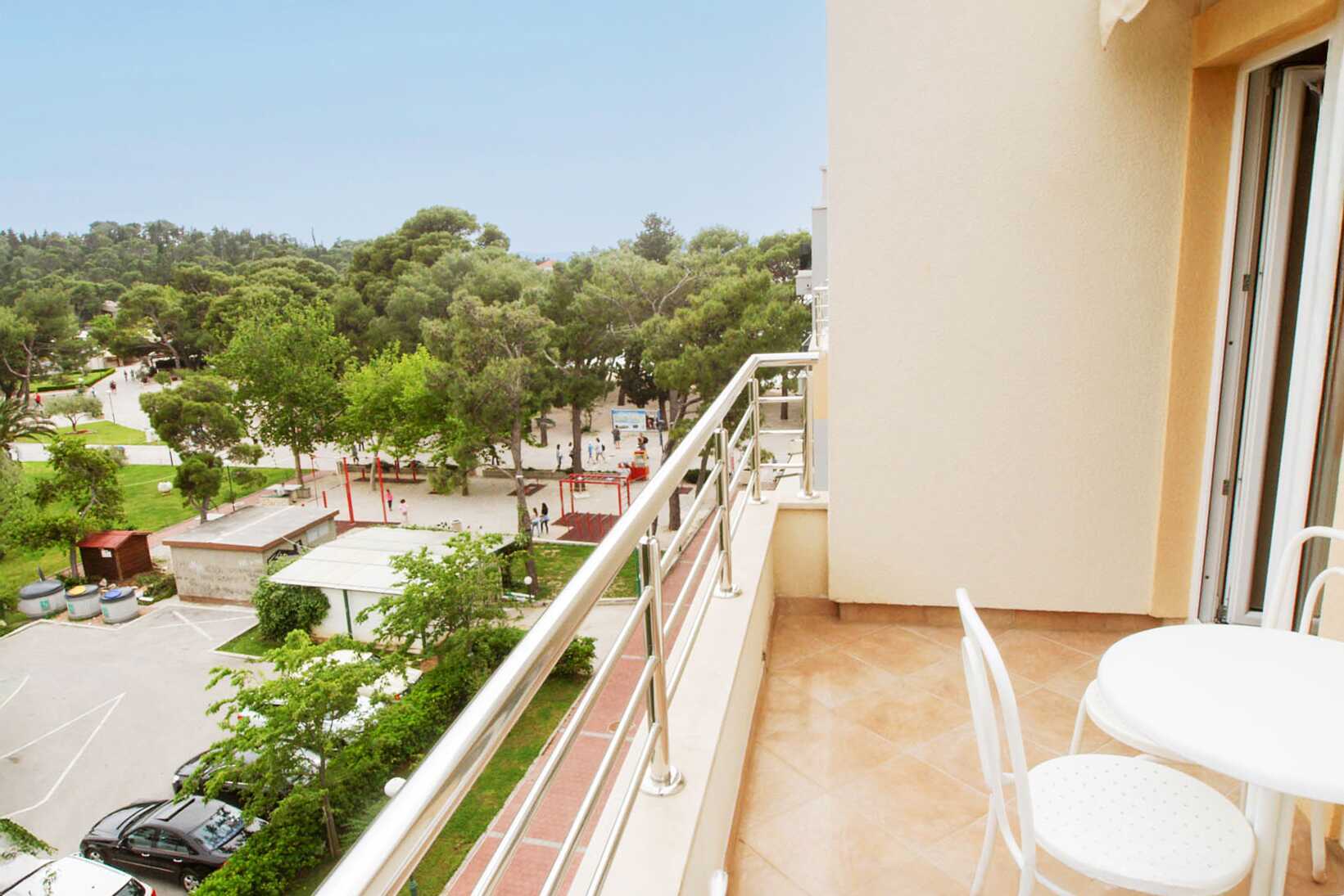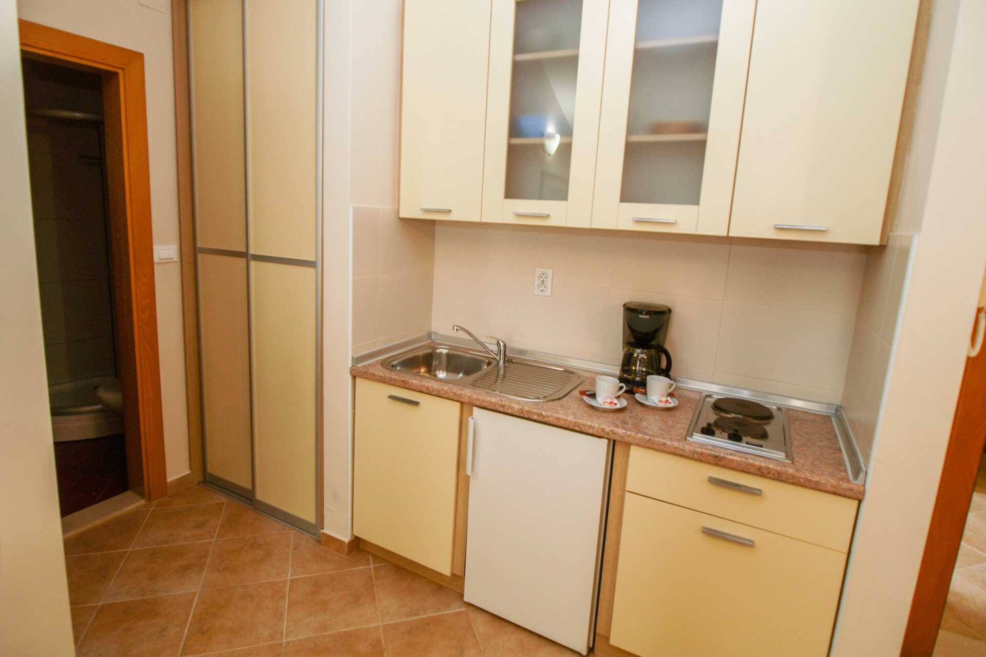 2-værelses lejlighed med balkon, nogle med delvis havudsigt. Soveværelse og opholdsrum kombineret med minikøkken. Nogle lejligheder på øverste etage har loft til kip. En dobbeltseng eller to enkeltsenge. Mulighed for ekstra opredninger i en sovesofa. Minikøkken med kogeplader, køleskab, el-kedel, kaffemaskine og enkelt køkkenudstyr. Gratis wifi, aircondition og deponering. Tv med internationale kanaler. Hårtørrer. Badeværelse med bruser og toilet. Rengøring 6 gange om ugen.