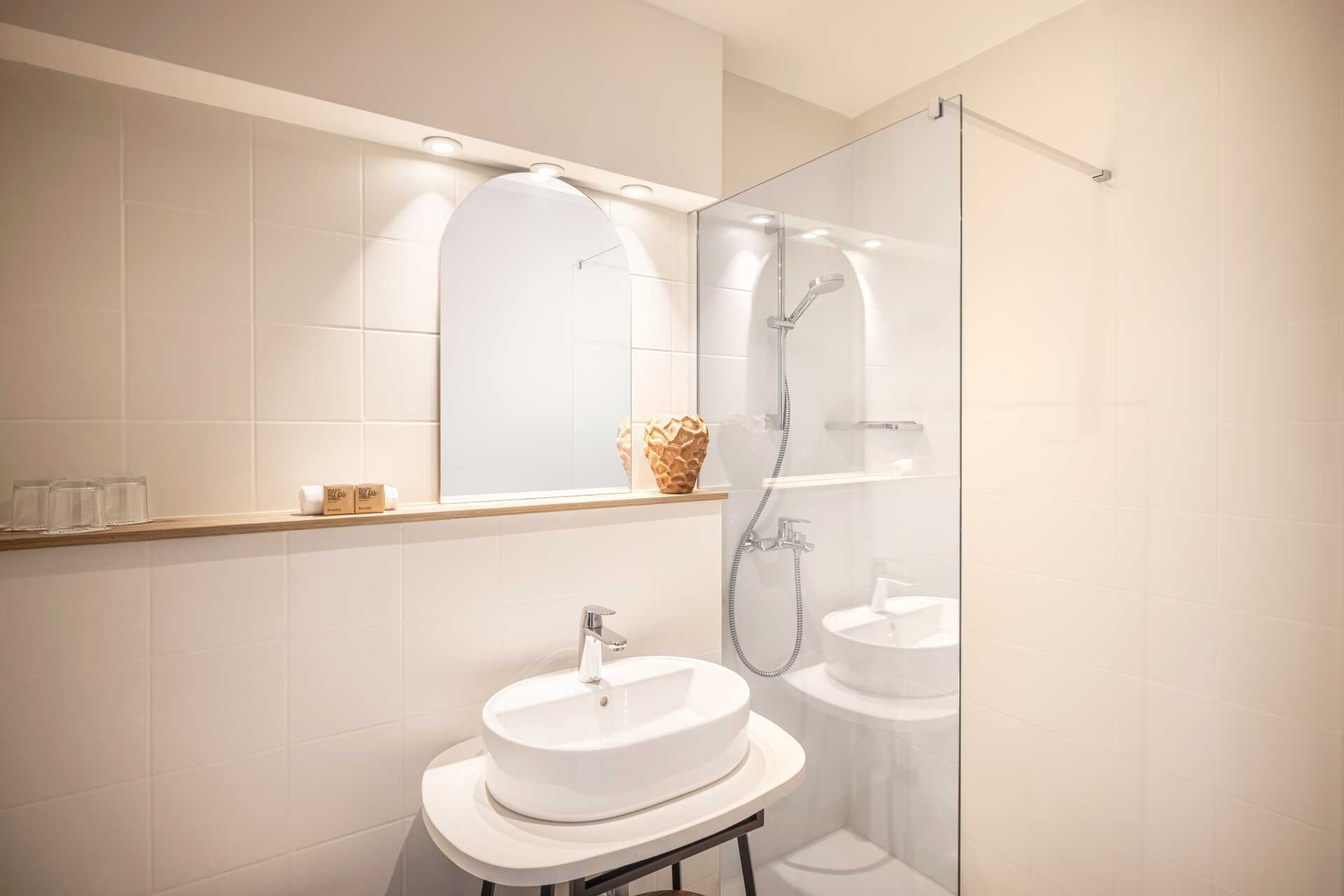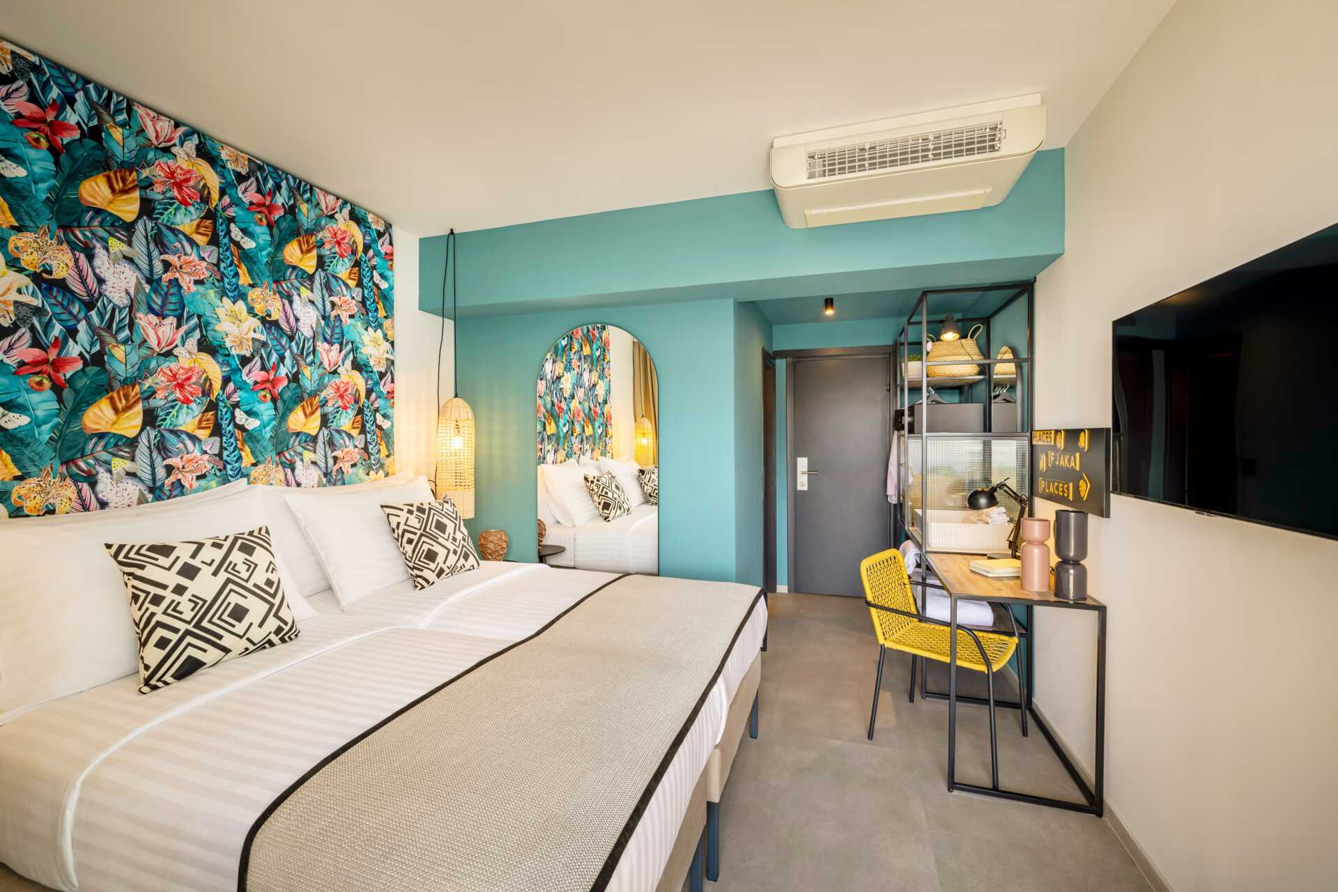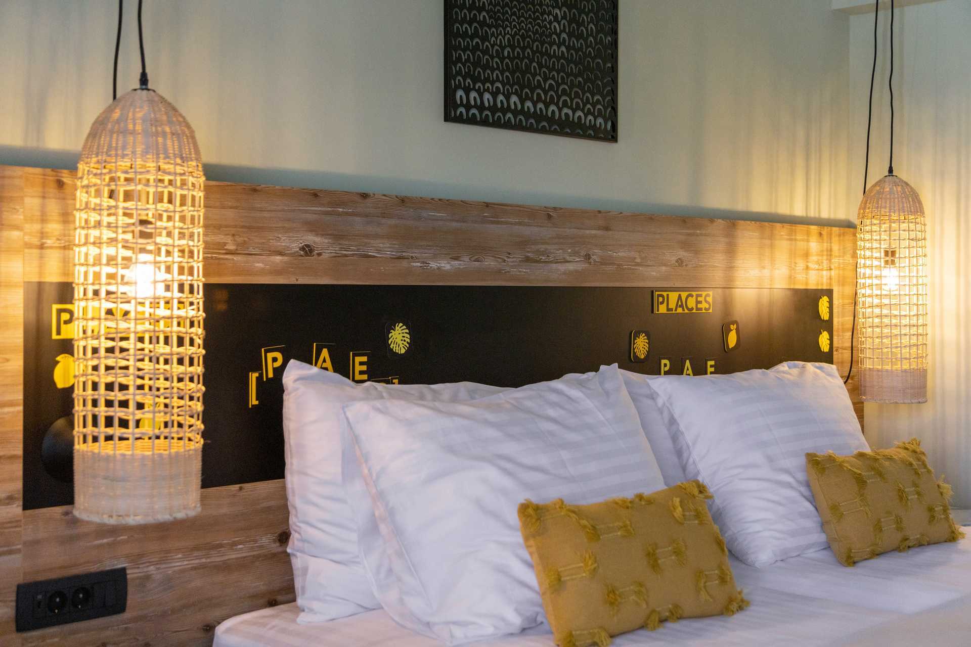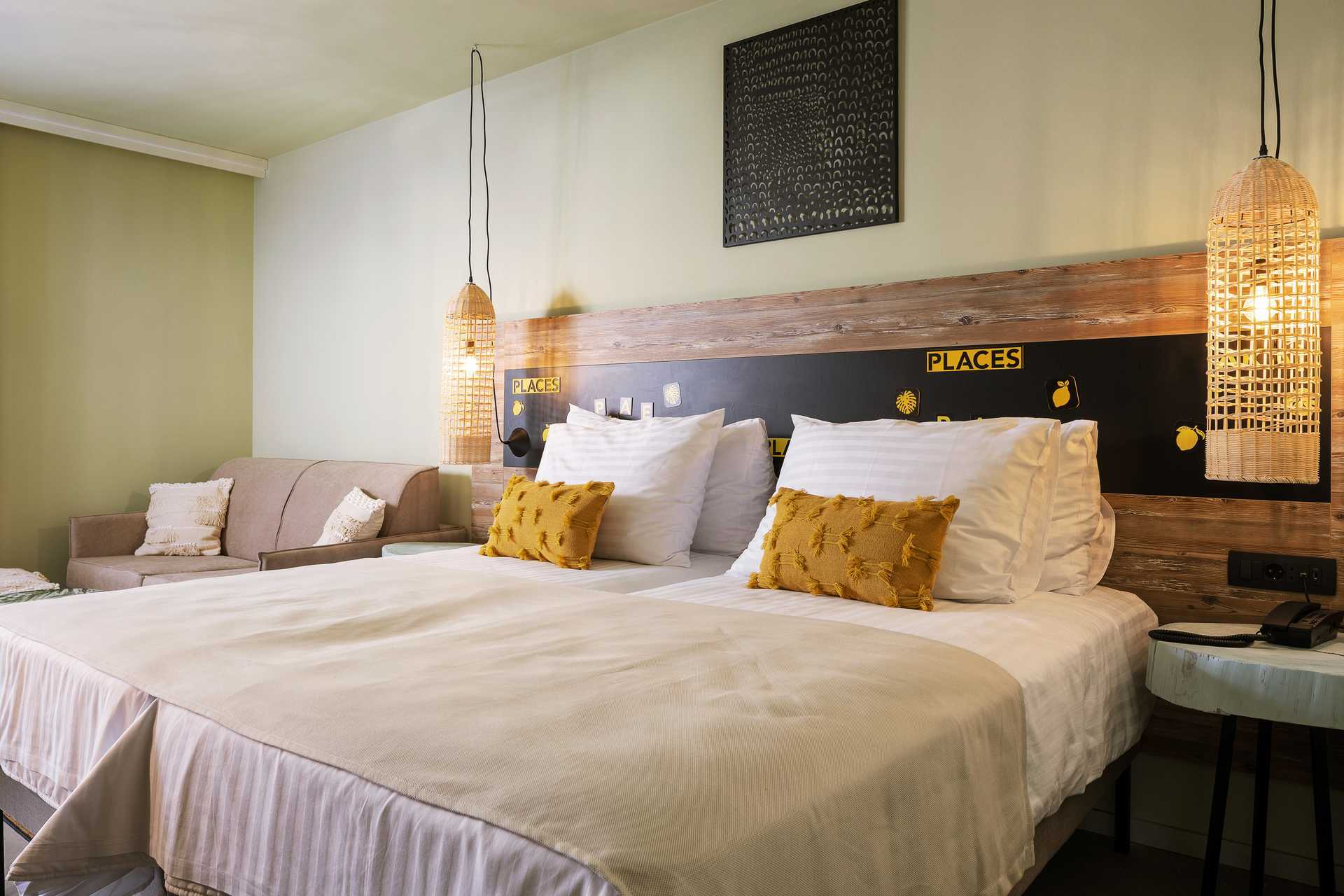 Større dobbeltværelse med balkon og delvis havudsigt. En dobbeltseng eller to enkeltsenge. Mulighed for ekstra opredning i enkeltseng eller i sovesofa. Gratis wifi, aircondition og deponering. Tv med internationale kanaler. Køleskab. Hårtørrer. Badeværelse med bruser og toilet. Rengøring 7 gange om ugen.