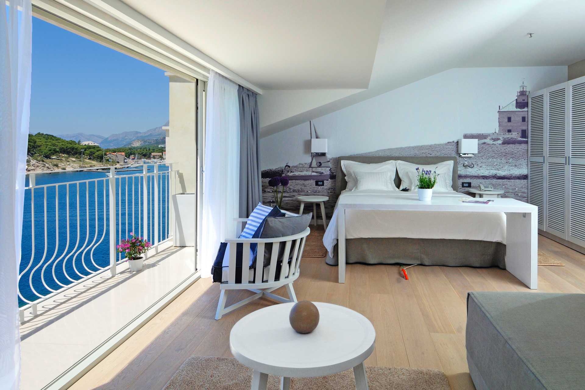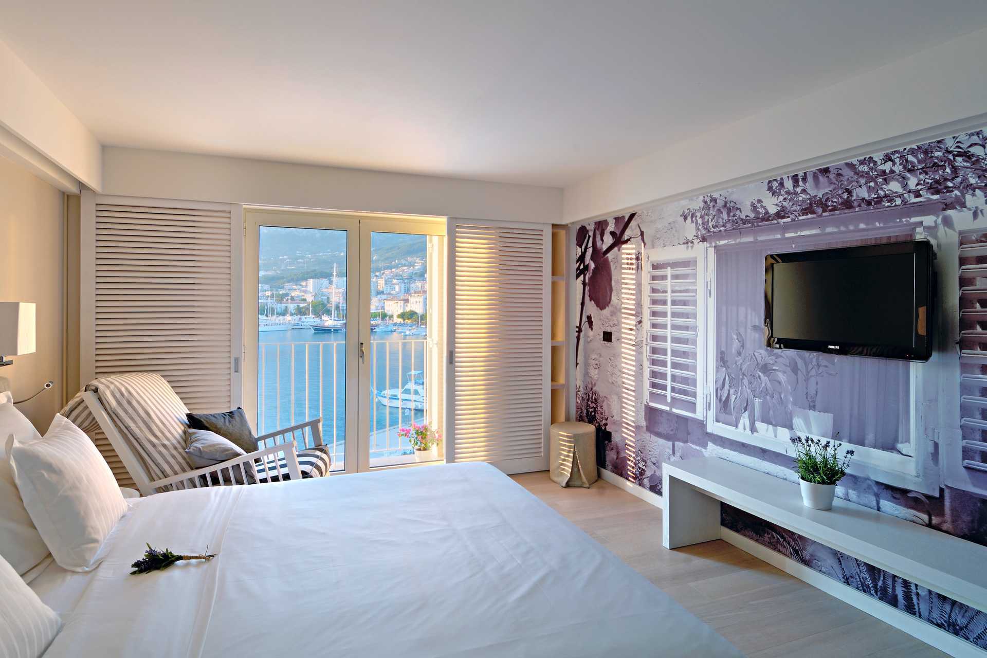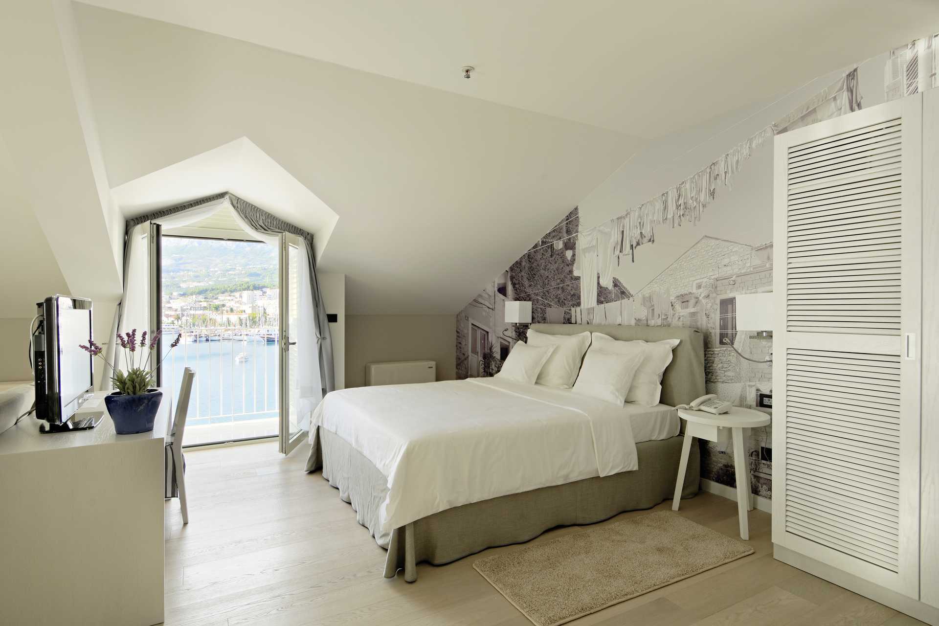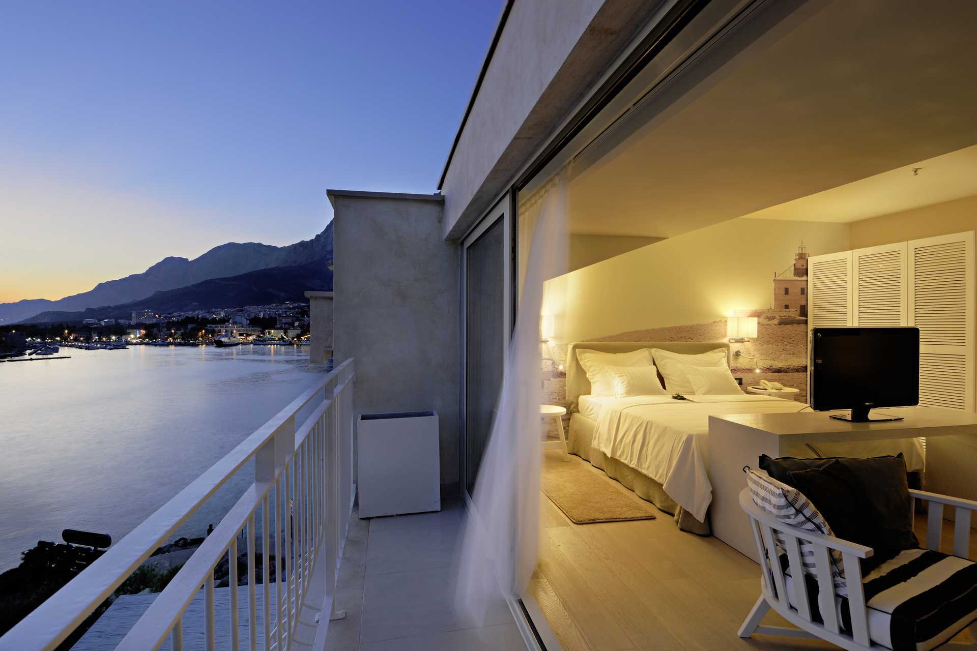 Dobbeltværelser med en lille balkon, nogle med delvis havudsigt eller med en fransk balkon med udsigt over havnen og Makarska by. En dobbeltseng eller to enkeltsenge. Gratis wifi, aircondition og deponering. Minibar. El-kedel på forespørgsel. Tv med internationale kanaler. Hårtørrer. Badeværelse med badekar og toilet. Rengøring 7 gange om ugen.