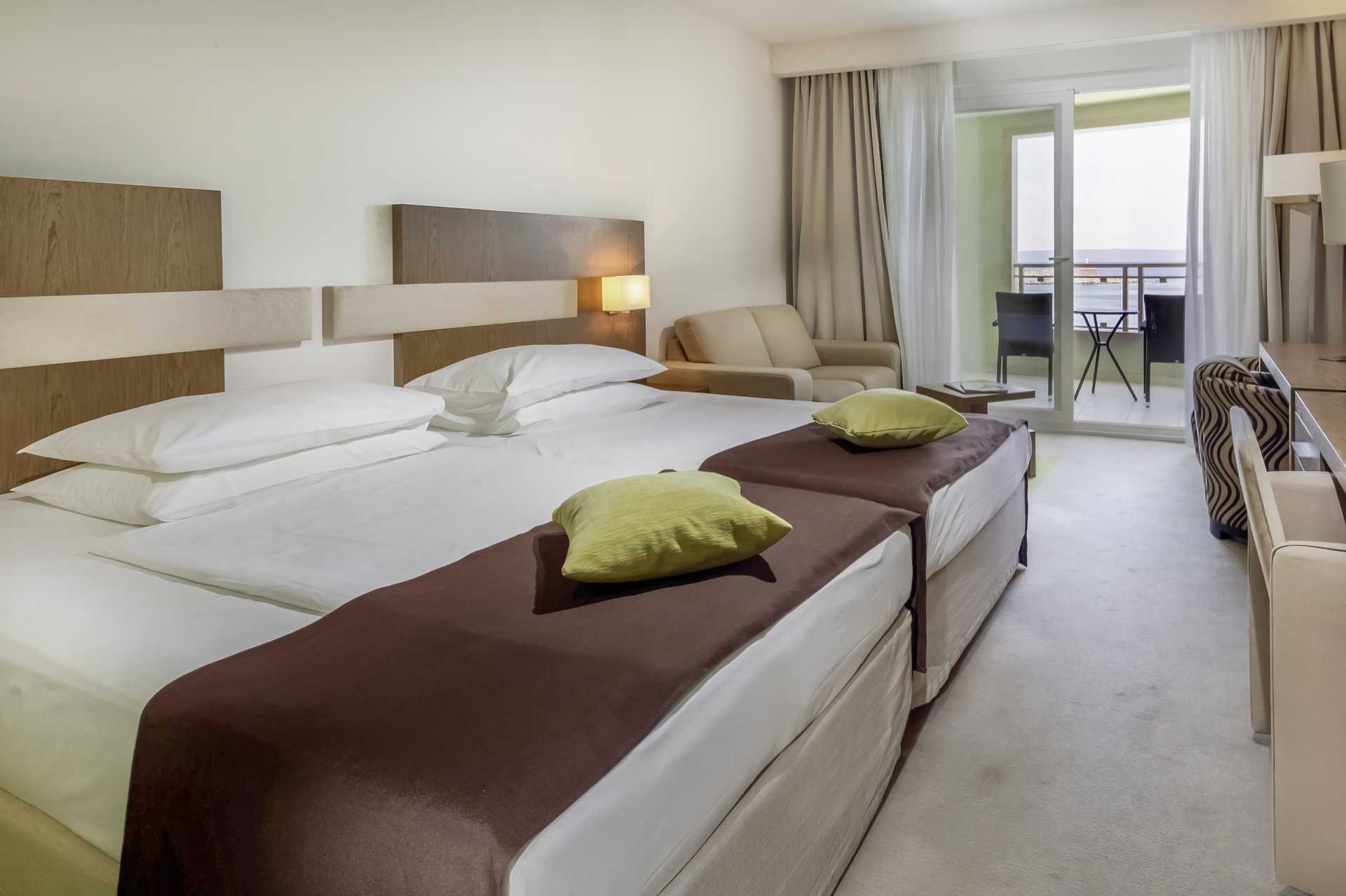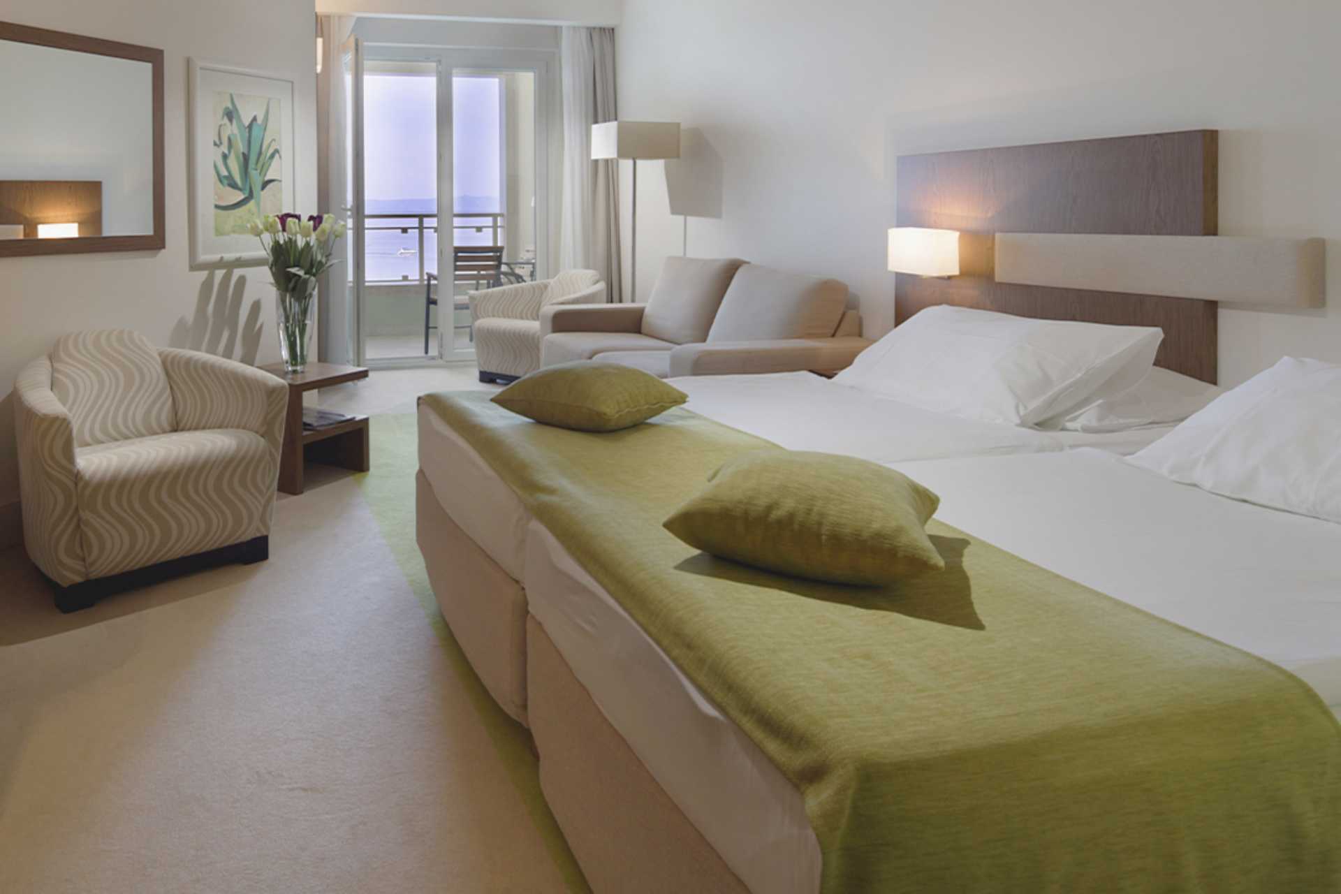 Dobbeltværelser med balkon, nogle med havudsigt. En dobbeltseng. Mulighed for ekstra opredning i sovesofa. Gratis wifi, aircondition og deponering. El-kedel og kaffe/te. Minibar. Tv med internationale kanaler. Væg til væg-tæppe. Hårtørrer. Badkar med bruser og toilet. Rengøring 7 gange om ugen.