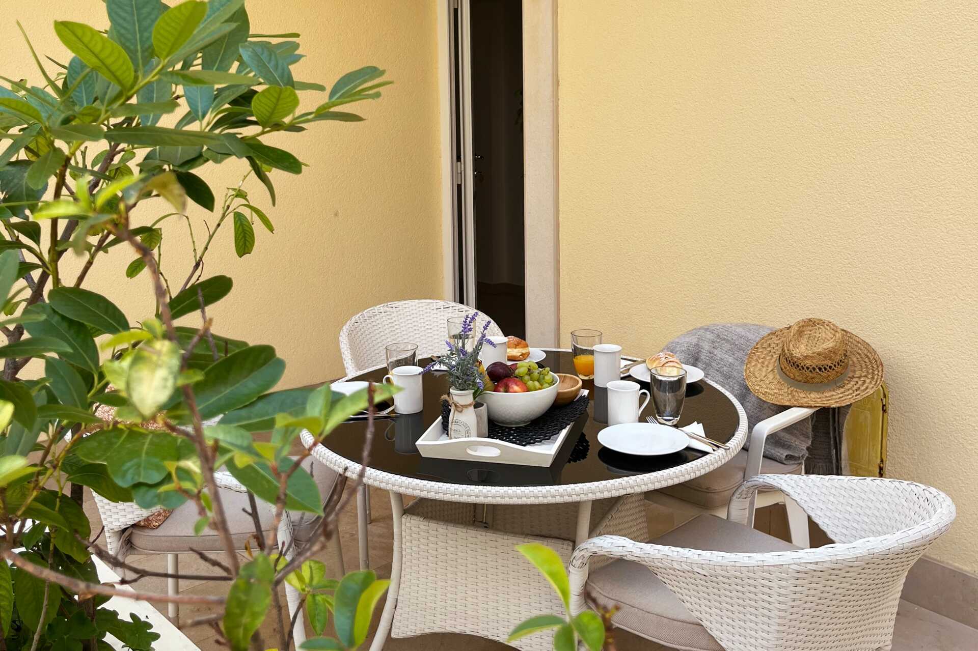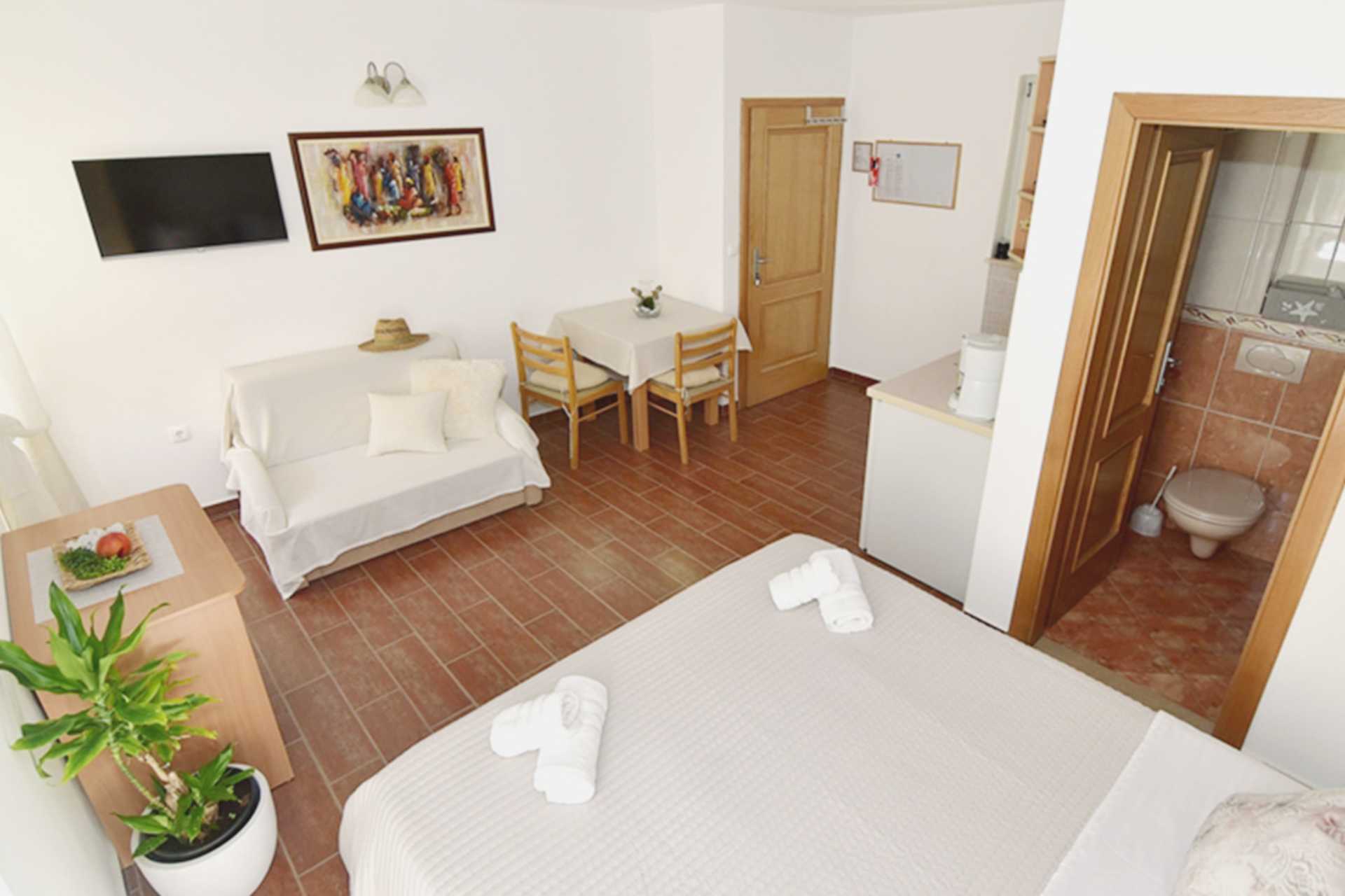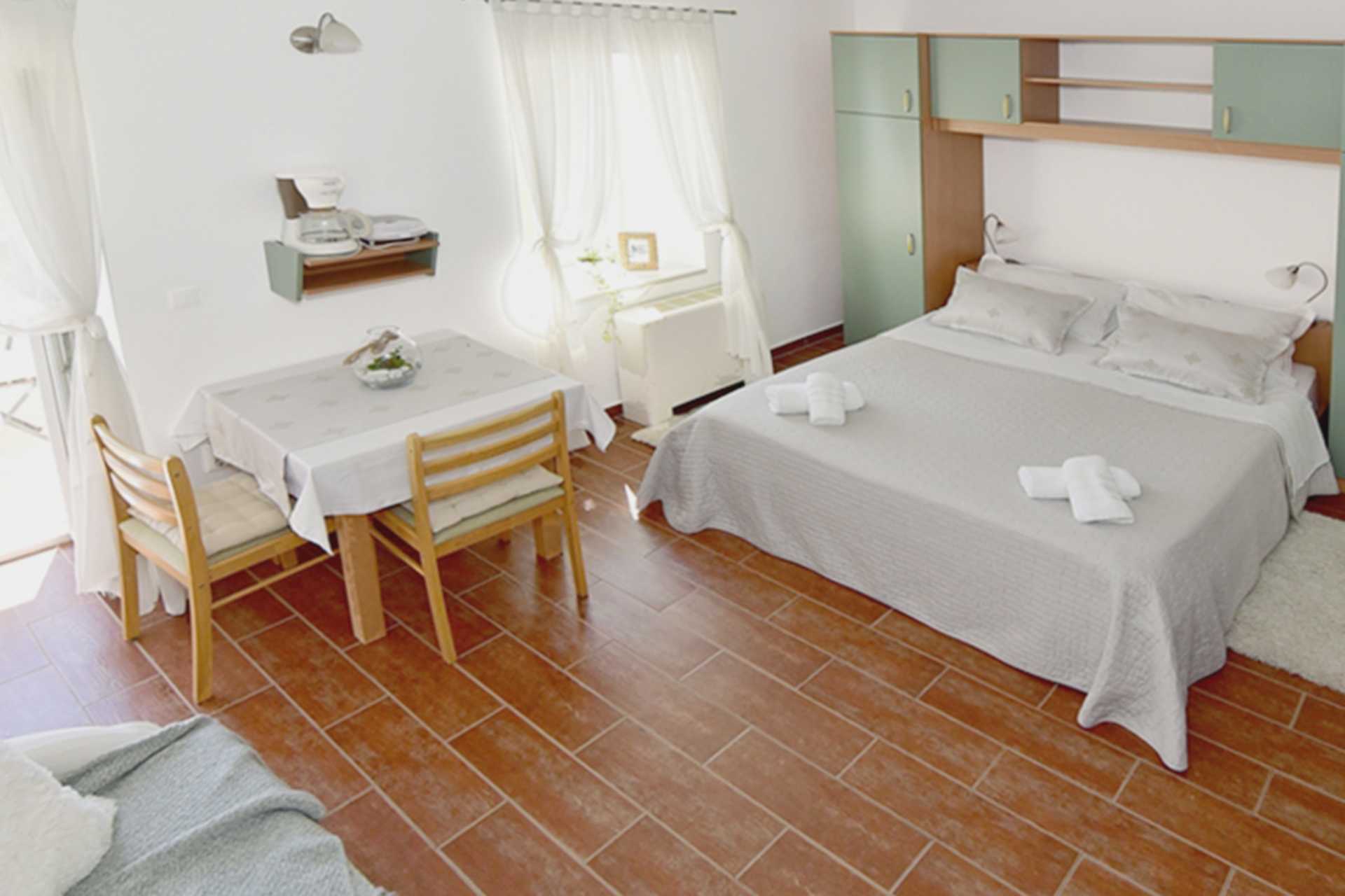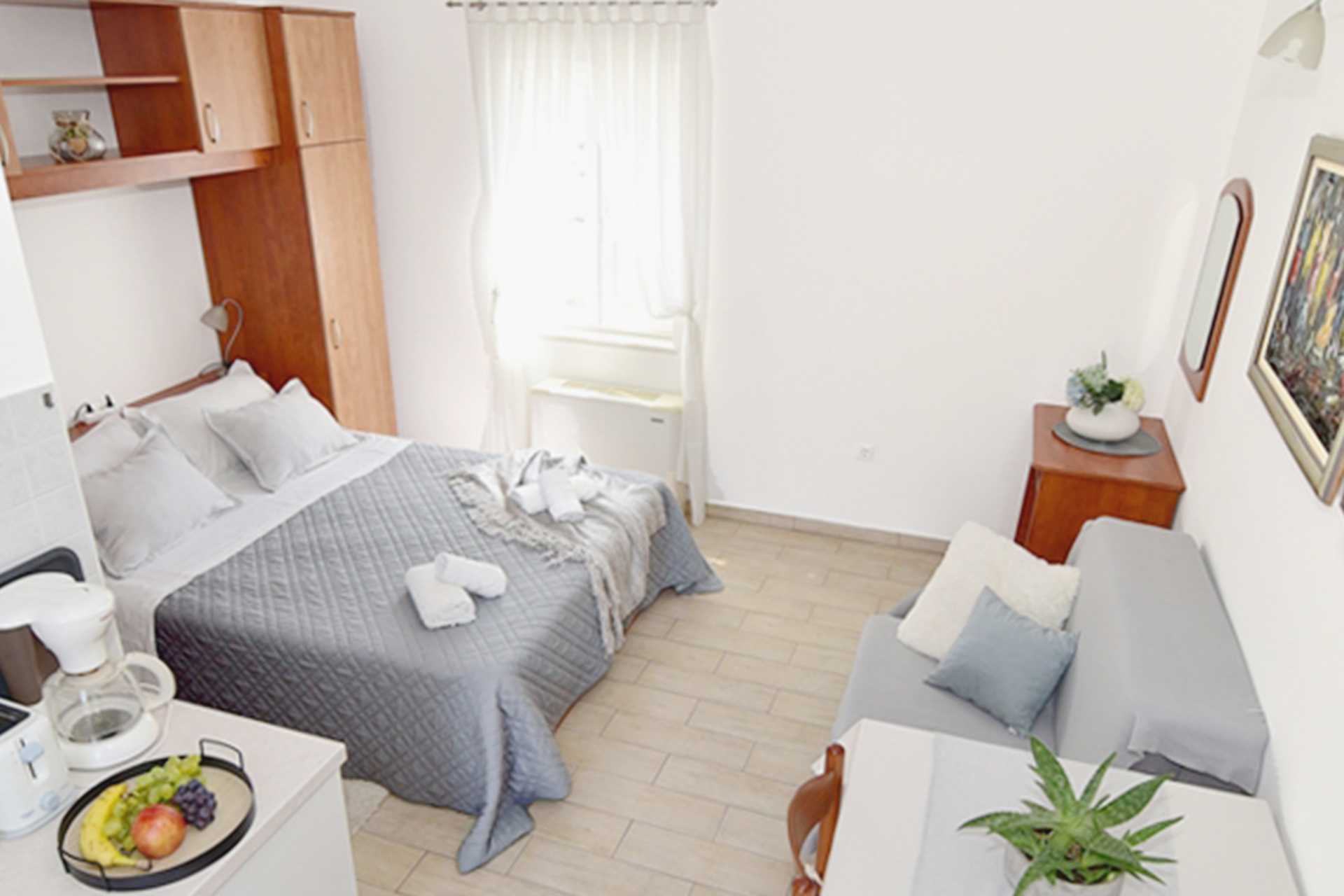 1-værelses lejligheder med eller uden balkon. Lejlighederne varierer i størrelse. Soveværelse kombineret med minikøkken. En dobbeltseng. Mulighed for ekstra opredning i sovesofa. Når den ekstra seng bruges, bliver værelset trangt. Minikøkken med kogeplader, køleskab, mikroovn, brødrister og enkelt køkkenudstyr. Gratis wifi, aircondition og deponering. Tv med internationale kanaler. Hårtørrer. Badeværelse med bruser og toilet. Rengøring 7 gange om ugen.