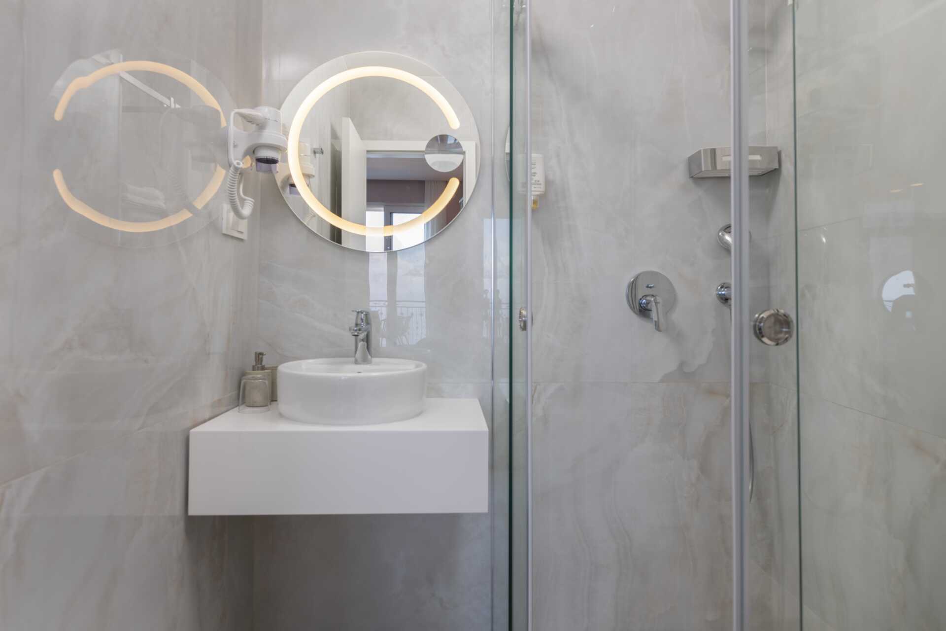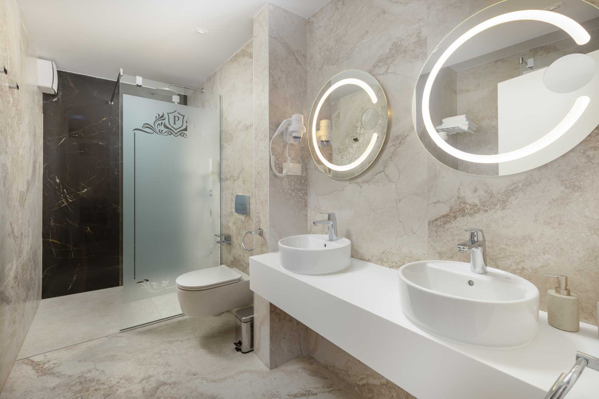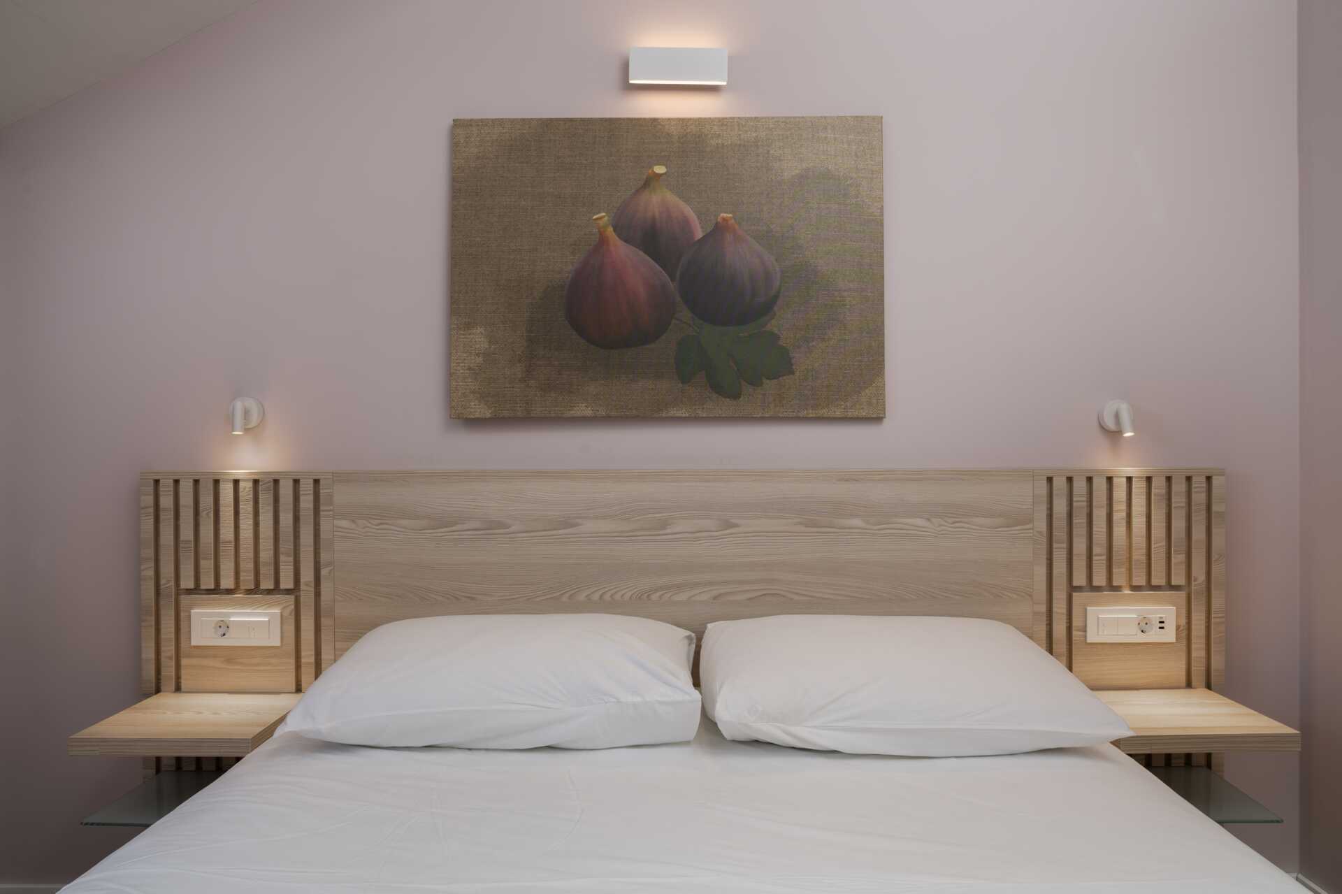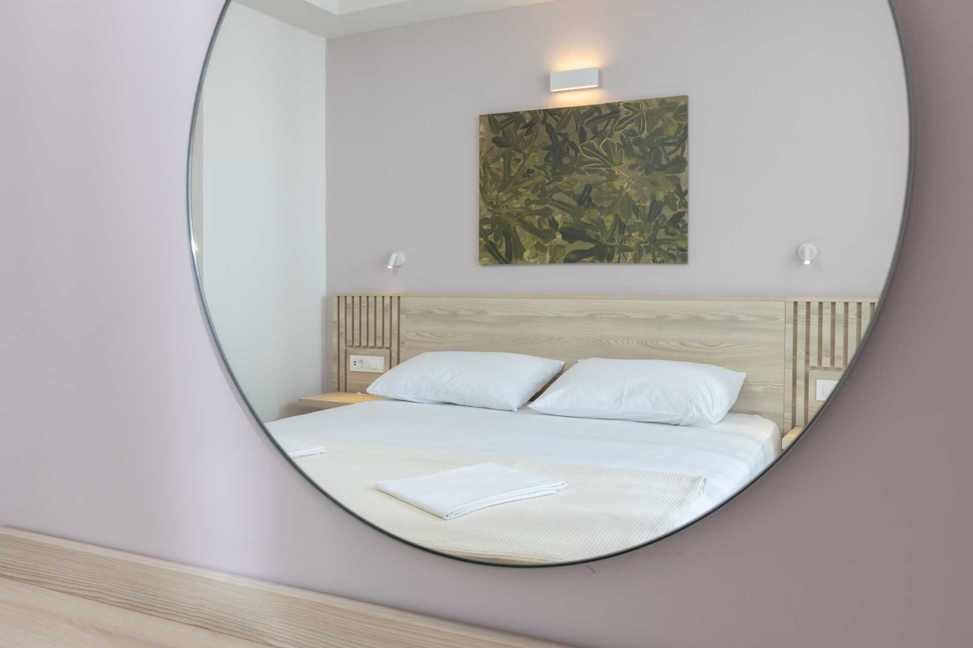 Dobbeltværelse med balkon og havudsigt. Dobbeltværelser og balkoner er i varierende størrelser. En dobbeltseng eller to enkeltsenge. Mulighed for ekstra opredning i sovesofa. Lille køkkenområde med køleskab, el-kedel, kaffemaskine og enkelt køkkenudstyr. Kogepladerne mangler. Gratis wifi, aircondition og deponering. Tv med lokale kanaler. Hårtørrer. Badeværelse med bruser og toilet. Rengøring 7 gange om ugen.