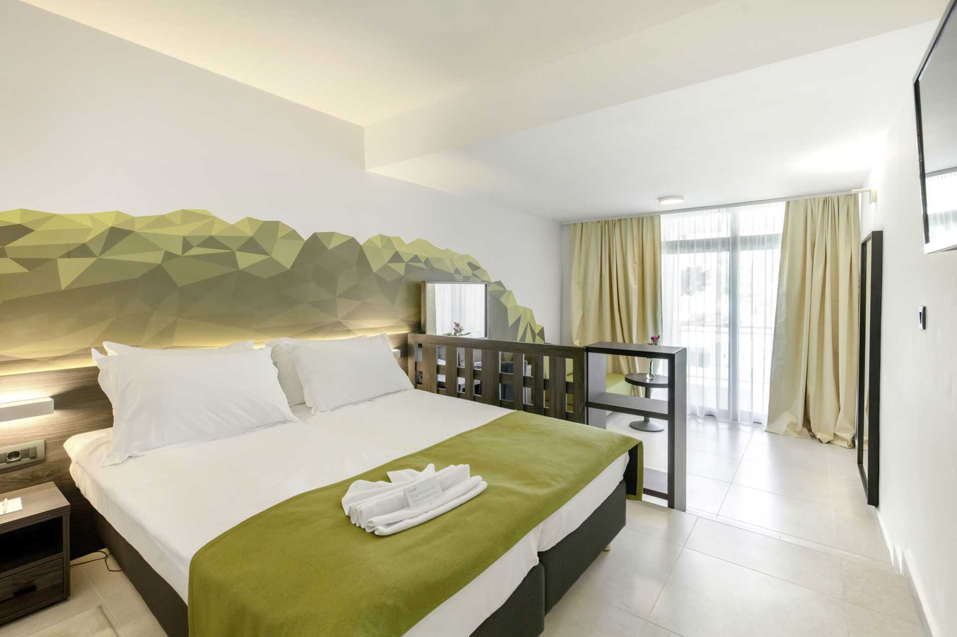 Superior-værelser med balkon, nogle med delvis havudsigt. To enkeltsenge. Mulighed for ekstra opredning i sovesofa. Gratis wifi, aircondition og deponering. Minibar. Tv med internationale kanaler. Hårtørrer. Badeværelse med bruser og toilet. Rengøring 7 gange om ugen.