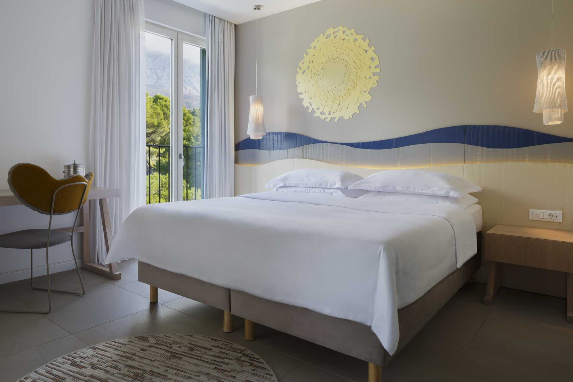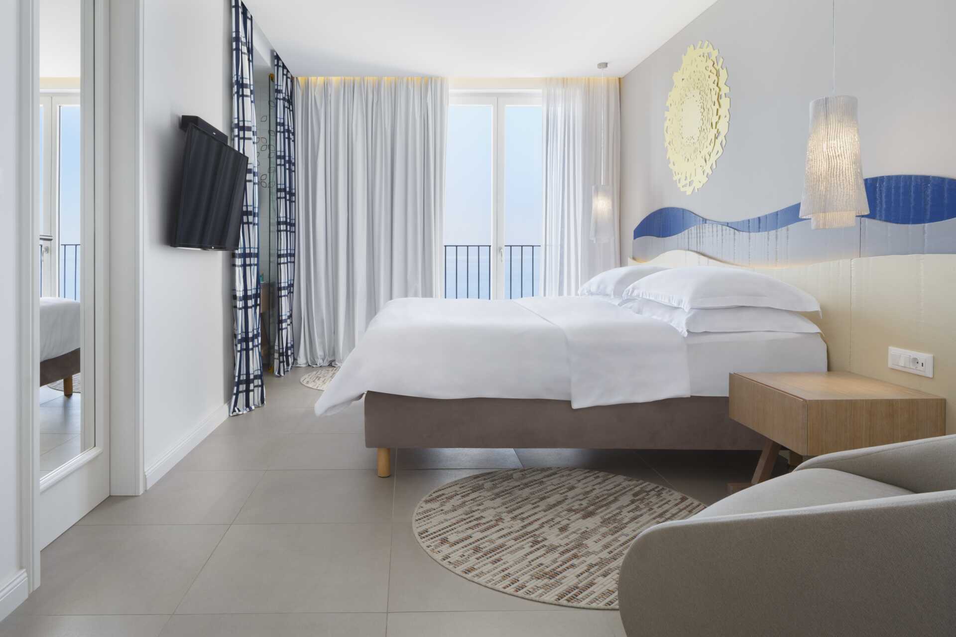 Superior-værelse med balkon og havudsigt. To enkeltsenge. Mulighed for ekstra opredning i sovesofa, lænestol eller fold ud-seng. Gratis wifi, aircondition og deponering. Køleskab. El-kedel og kaffe/te. Tv med internationale kanaler. Tøfler. Hårtørrer. Badeværelse med bruser og toilet. Rengøring 7 gange om ugen.