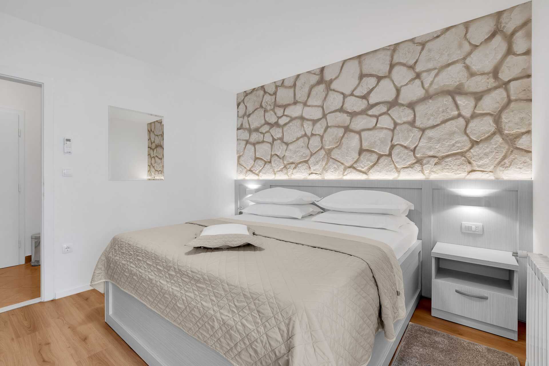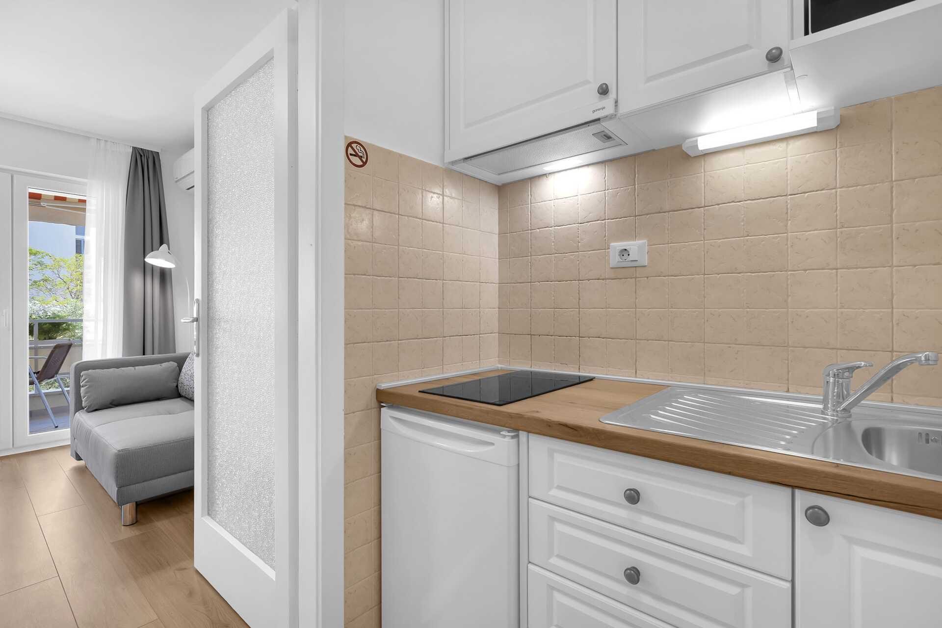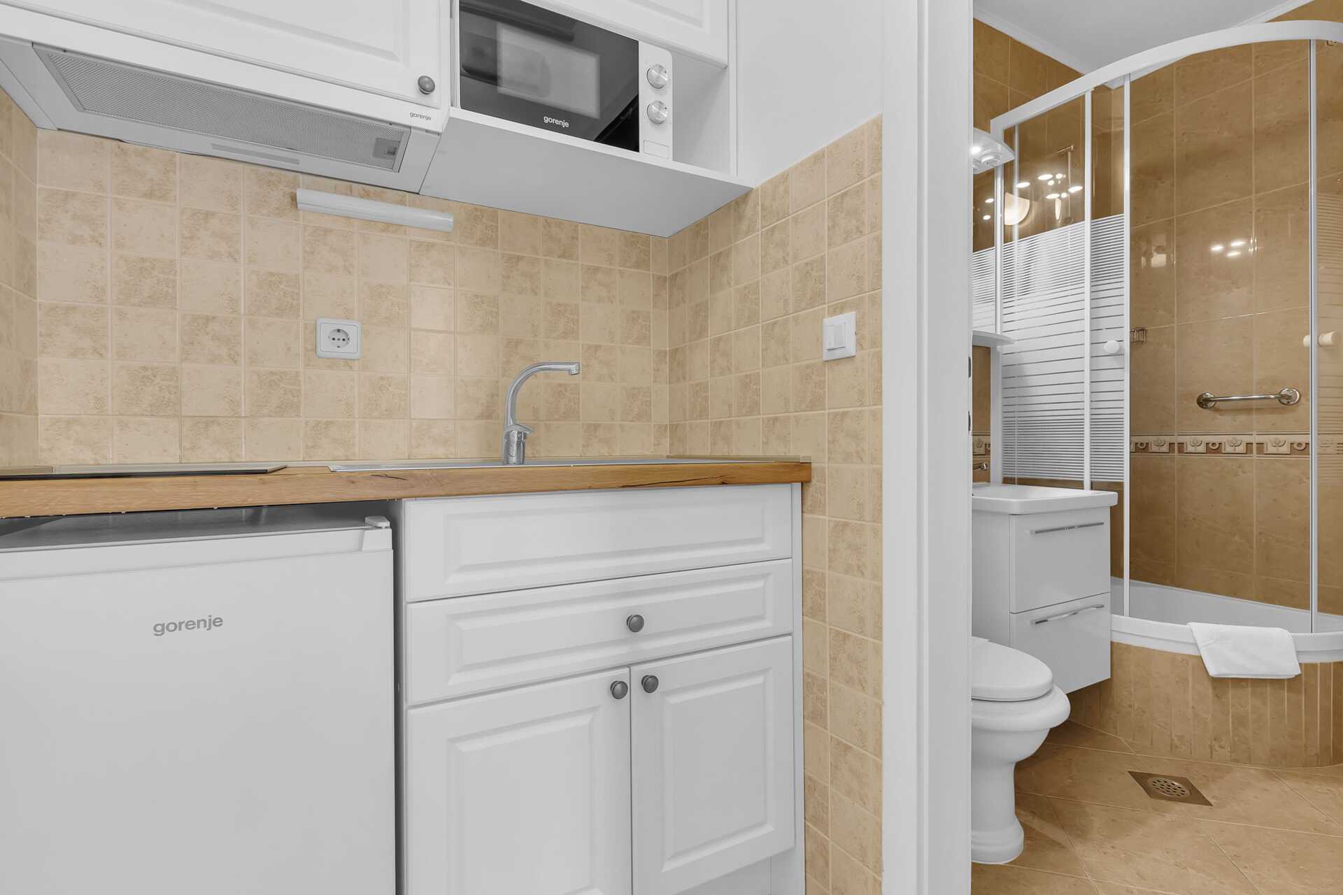 1-værelses lejligheder med balkon. Soveværelse kombineret med minikøkken. En dobbeltseng. Mulighed for ekstra opredning i sovesofa. Minikøkken med kogeplader, køleskab, el-kedel og enkelt køkkenudstyr. Gratis wifi, aircondition og deponering. Tv med internationale kanaler. Hårtørrer. Badeværelse med bruser og toilet. Rengøring 6 gange om ugen.