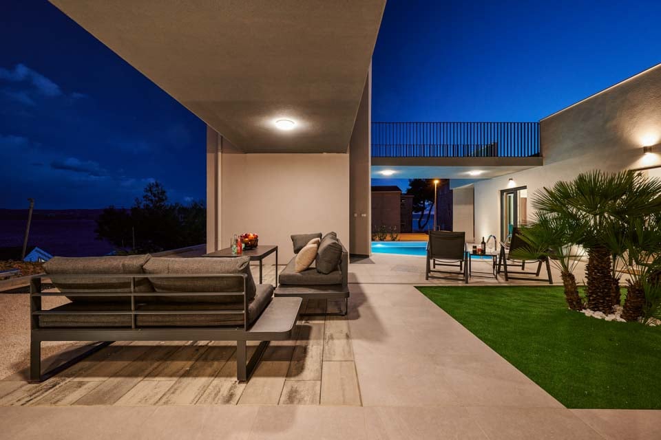 Med en rummelig gårdhave omgivet af et palmetræ og foret med bløde grå sofaer og liggestole, beliggende ved siden af villaens private opvarmede pool, er der ingen bedre måde at tilbringe en ferie på end at slappe af i dette lille stykke af himlen.