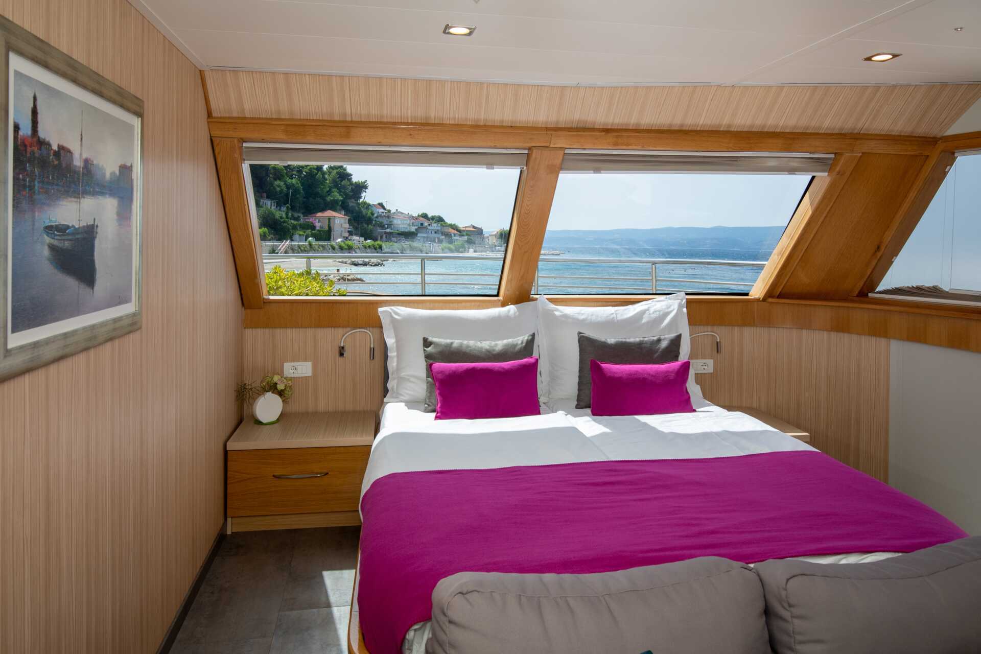 Der er 18-21 kahytter om bord, alle med enten dobbeltseng eller to enkeltsenge. Tv med internationale kanaler. 220V. Aircondition og lille deponeringsboks indgår. Hårtørrer. Moderne badeværelse med bruser og toilet. Garderobe og bagagerum under sengen. Kahytterne varierer i indretning og størrelse, men de er ca. 10–15 kvadratmeter store. På dæk 2–3 er vinduet lidt større end et udluftningsvindue. Håndklæder og sengetøj skiftes en gang midt på ugen.