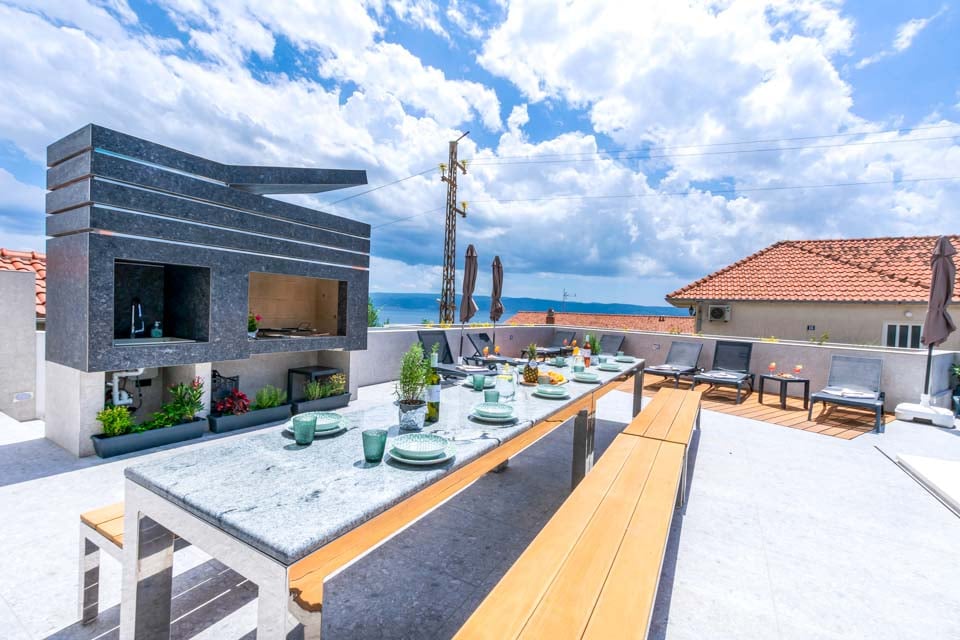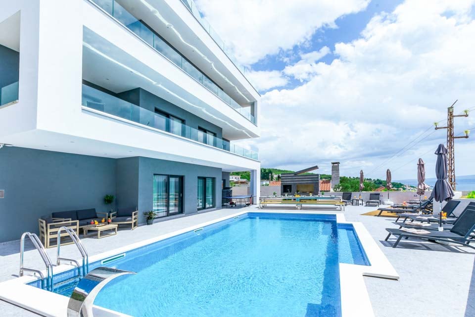 Nå, hvor skal man begynde? Denne villa har virkelig det hele! Få mest muligt ud af den smukke sol, der skinner på Kroatiens vestkyst, ved at tage en afslappende svømmetur i den store private pool, spille et spil eller to i det forfriskende vand med dine kære, eller blot flyde på overfladen og stirre op på den klare blå himmel – den bedste måde at tilbringe de dovne eftermiddage på. Hvis du har lyst til at slappe endnu mere af, er dit private spabad det rette sted at være, med en betagende havudsigt fra balkonen på fjerde sal, hvor det boblende vandkar kan findes. Masser af liggestole, et kæmpe spisebord og en imponerende grill er alt sammen noget for dig - du føler måske aldrig, at du behøver at gå indenfor, når du først er ude i dette paradisiske poolområde.