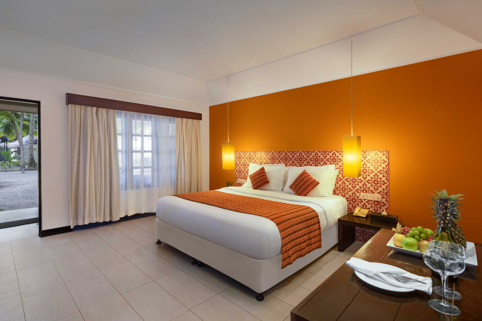 Seafront Villaer med terrasse. Villaerne har den bedste beliggenhed ved stranden. En dobbeltseng. Mulighed for ekstra opredning til en voksen eller to børn. Gratis wifi, aircondition og deponering. Minibar inkluderet - læskedrikke, juice og to flasker vand, genopfyldt en gang om dagen. Espresso kaffemaskine - kapsler inkluderet. El-kedel og kaffe/te. Tv med internationale kanaler. Strandtaske og klipklappere. Badeværelse med badekar eller bruser og toilet. Rengøring 7 gange om ugen.