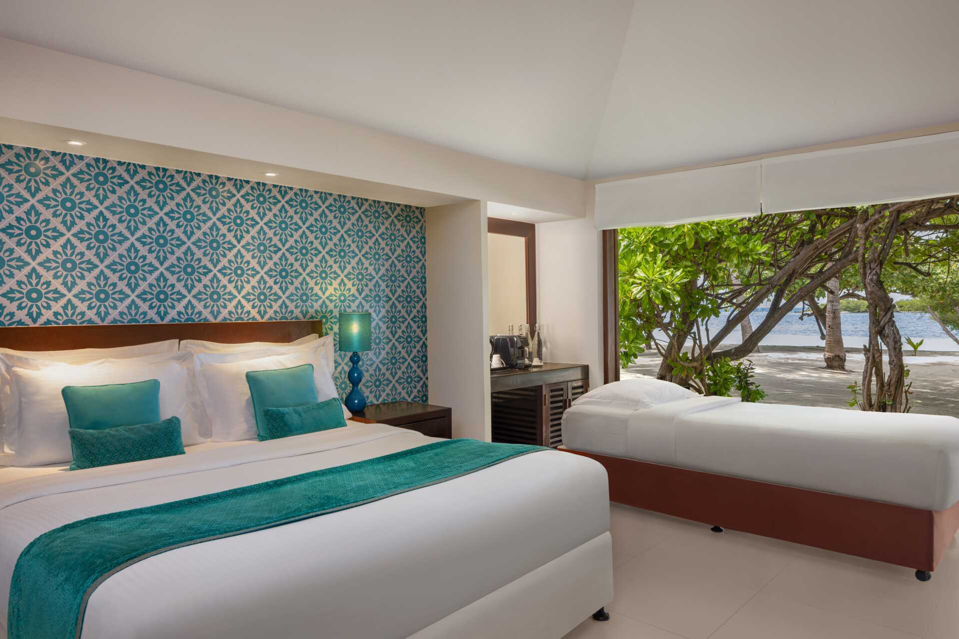 Seafront Villa med terrasse i stueplan. Villaerne har den bedste beliggenhed ved stranden. En dobbeltseng. Mulighed for ekstra opredning til én voksen eller to børn. Gratis wifi, aircondition og deponering. Minibar er inkluderet (sodavand, juice og to flasker vand) og genopfyldes dagligt. Nespresso-maskine inklusiv kapsler. El-kedel og kaffe/te. Tv med internationale kanaler. Strandtaske og klipklappere. Badeværelse med badekar eller bruser samt toilet. Rengøring 7 gange om ugen.