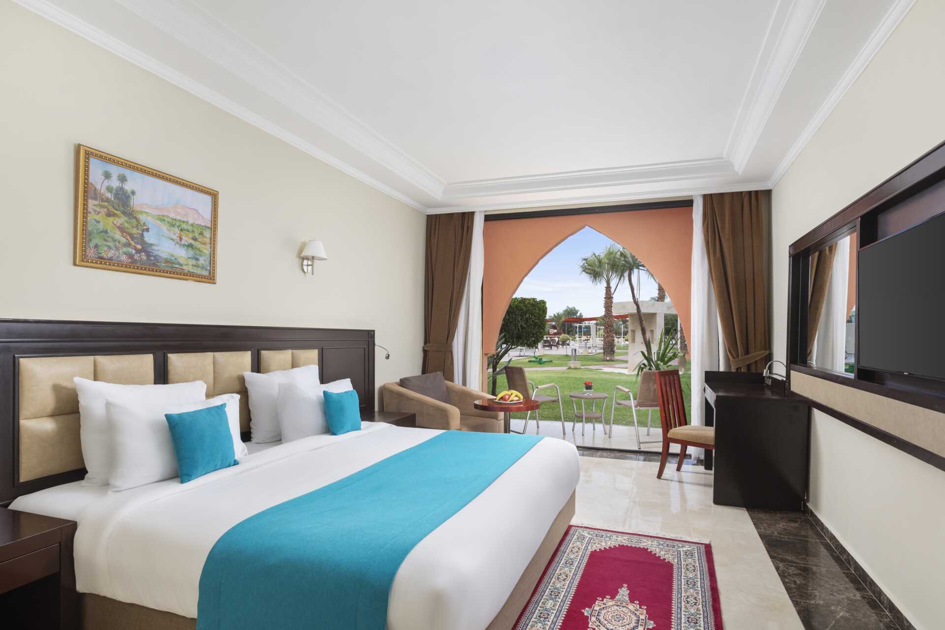 Dobbeltværelser med balkon, nogle med pooludsigt. Gratis wifi, aircondition og deponering. Minibar - en flaske vand er inkluderet og genopfyldes hver dag. Tv med internationale kanaler. Hårtørrer. Badeværelse med bruser og toilet. Børn under to år tæller med i det maksimale antal personer på værelset. Rengøring 7 gange om ugen.