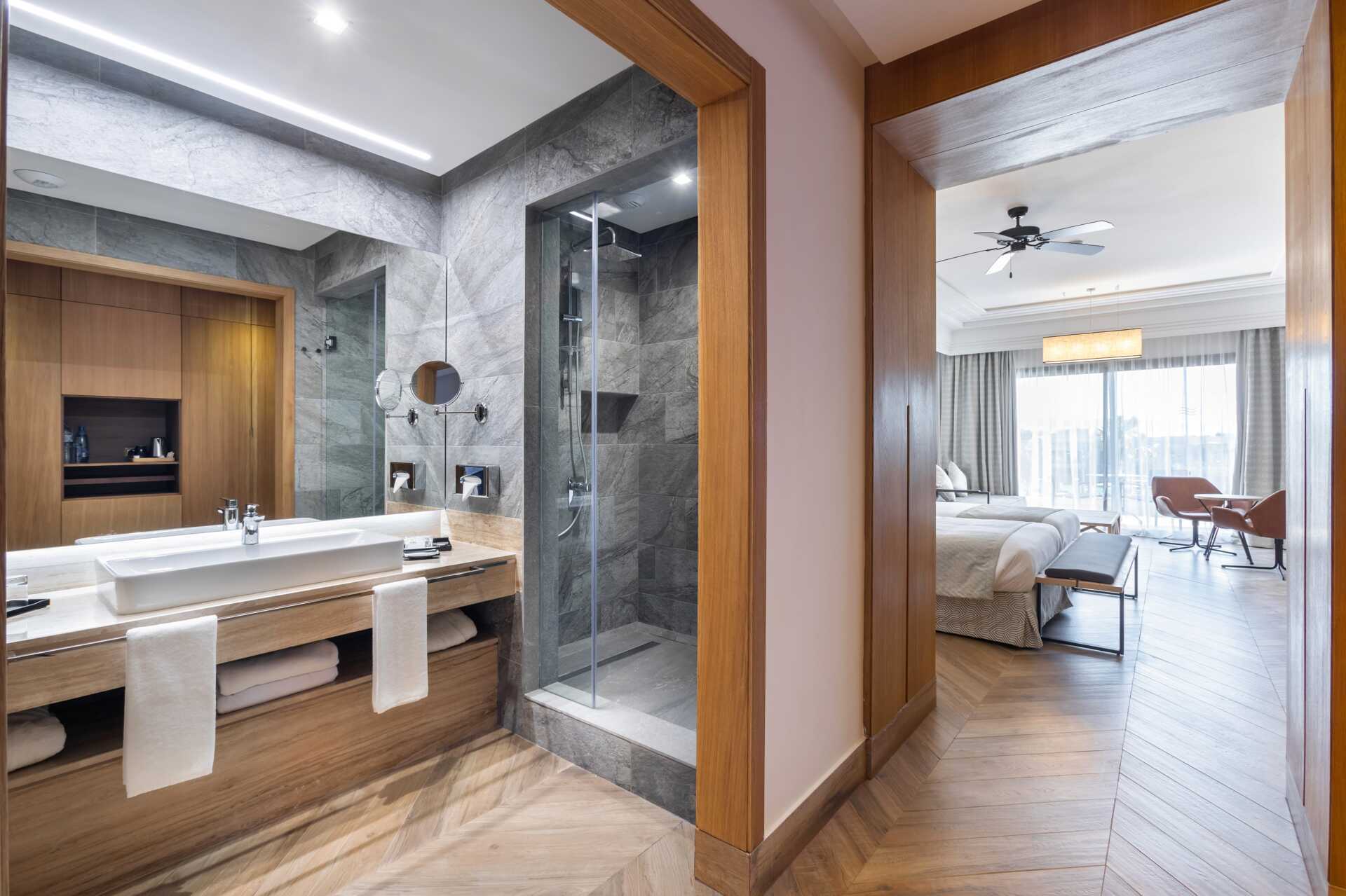 Dobbeltværelser med balkon eller terrasse, nogle med havudsigt og nogle med delvis havudsigt. To enkeltsenge. Mulighed for ekstra opredninger i sovesofa. Gratis wifi, aircondition og deponering. Loftsvifte. Minibar. El-kedel og kaffe/te. Tv med internationale kanaler. Badekåber. Hårtørrer. Badeværelse med bruser og toilet. Rengøring 7 gange om ugen. Børn under to år tæller med i det maksimale antal personer på værelset.