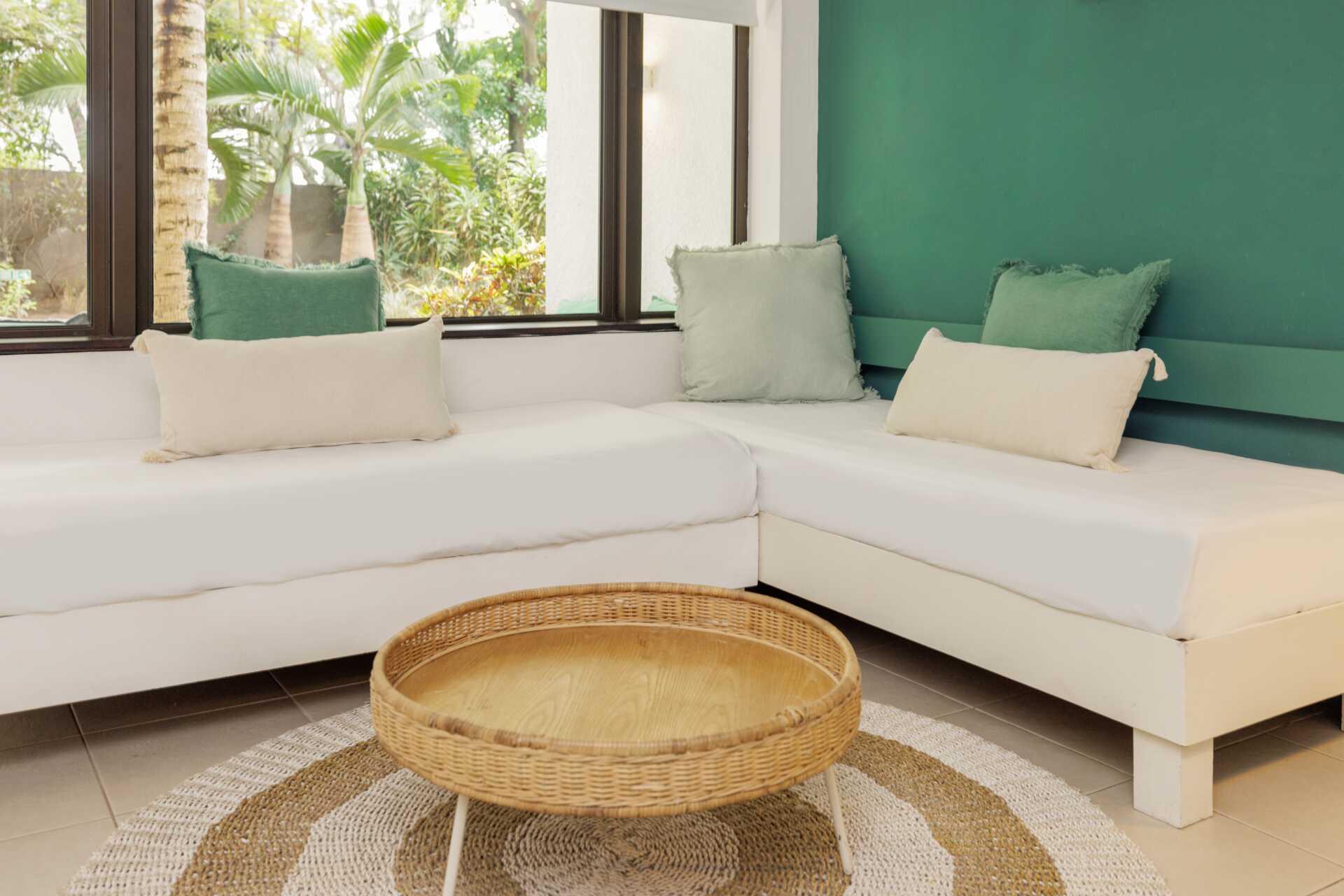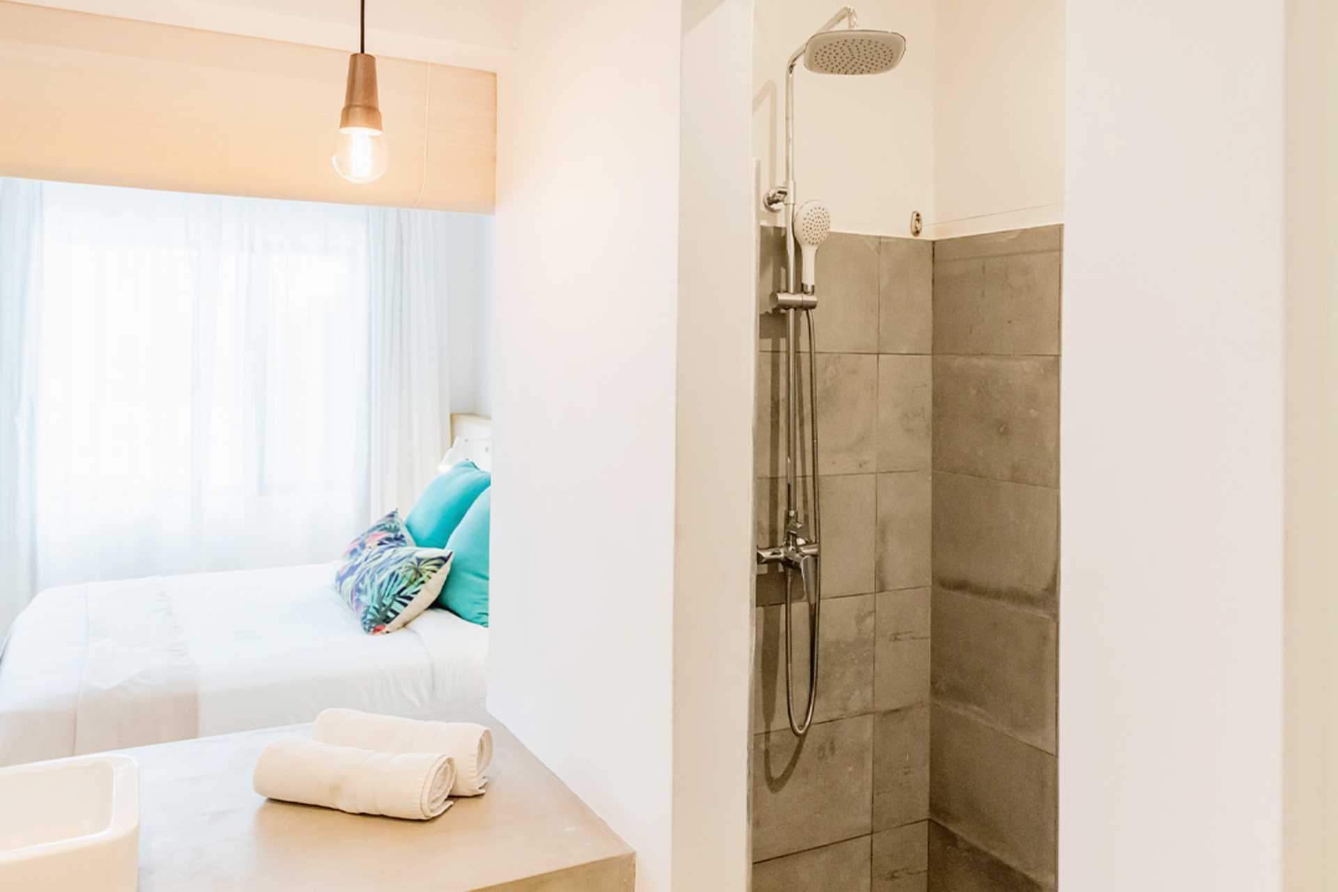 Familie-suiter med terrasse eller balkon. Familie-suiten består af to soveværelser og en balkon eller terrasse med minikøkken. En dobbeltseng. Mulighed for ekstra opredning i køjeseng. Minikøkken med køleskab, mikrobølgeovn og kogeplader, enkelt køkkenudstyr samt spiseplads og sofa. Gratis wifi, aircondition og deponering. Loftsvifte. El-kedel og kaffe/te. Hårtørrer. Badeværelse med bruser og separat toilet. Rengøring 7 gange om ugen. Børn under to år tæller med i det maksimale antal personer på værelset.