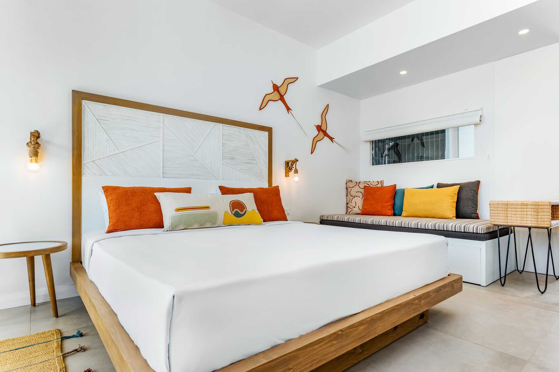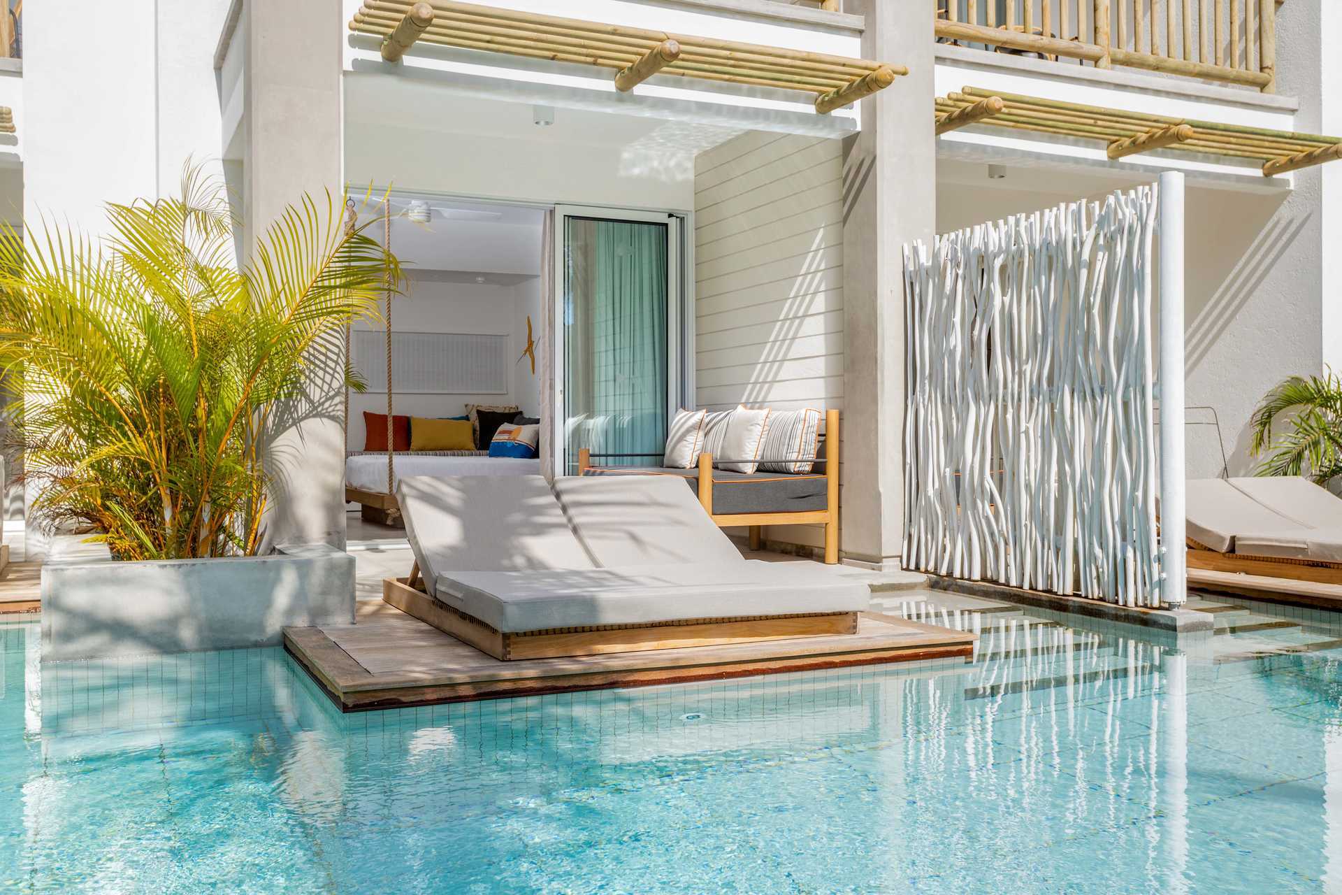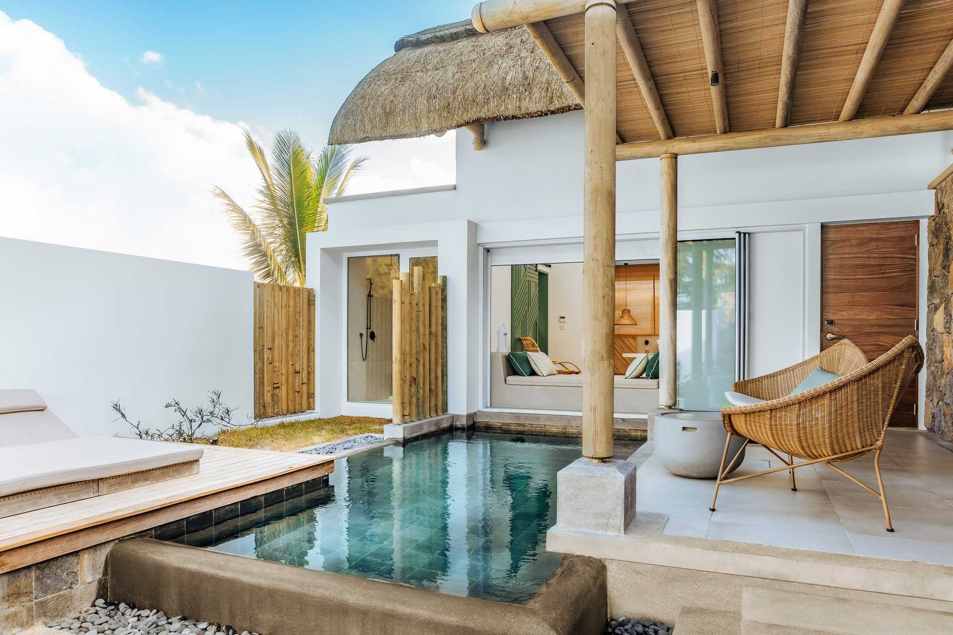 2-værelses villa med privat pool på terrassen i stueplan i haven. På terrassen er der stole og borde samt solstole. En dobbeltseng. Gratis wifi, aircondition og deponering. Minibar mod betaling. El-kedel og kaffe/te. Hårtørrer. Badeværelse med bruser og toilet. Rengøring 7 gange om ugen.