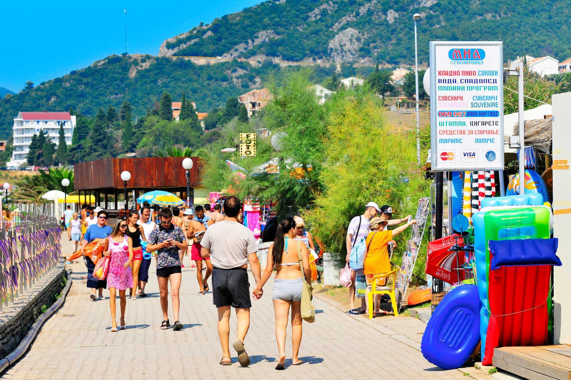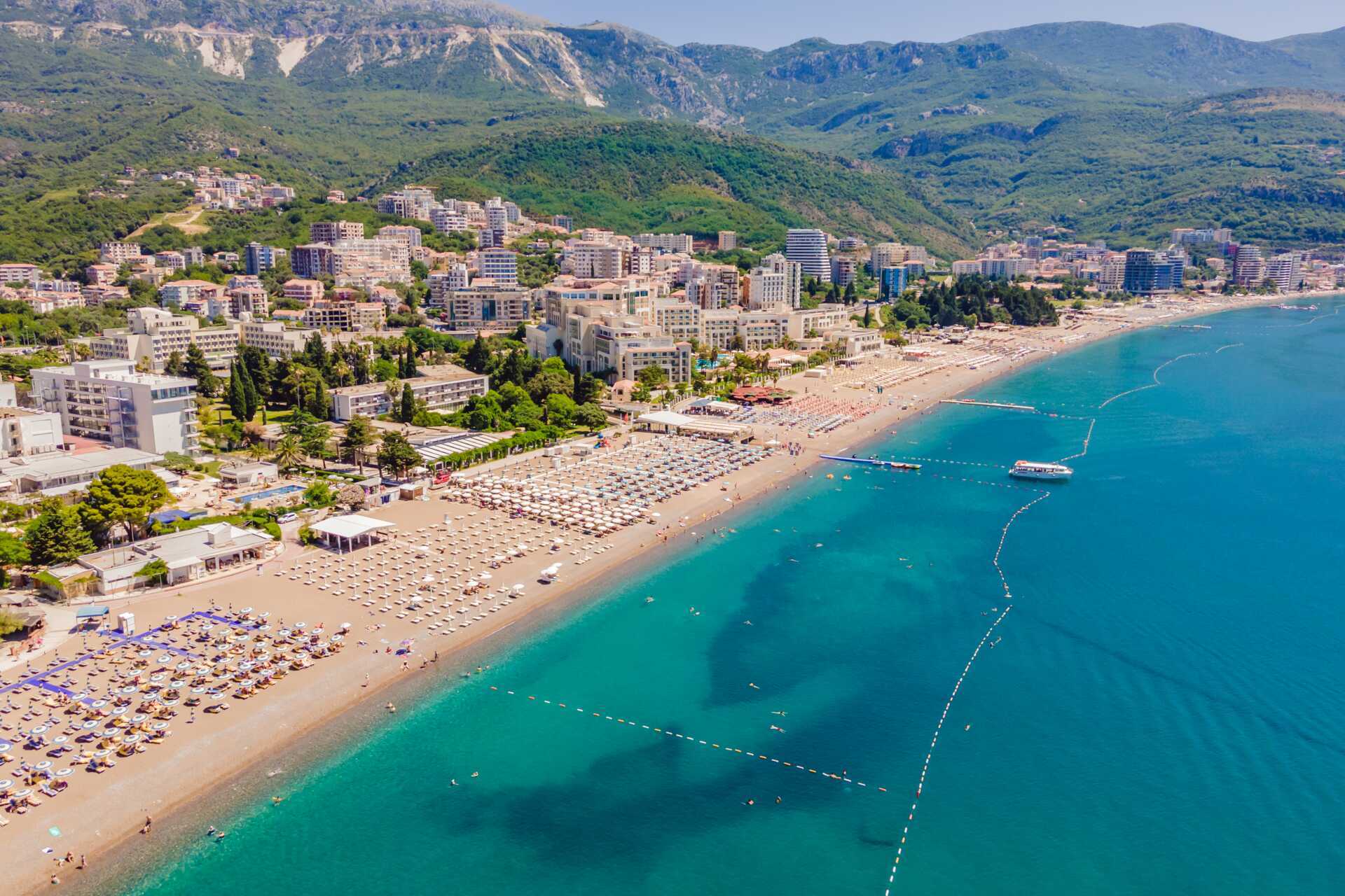 Becici har en lang, grovkornet sandstrand, hvoraf nogle dele tilhører hoteller. Solsenge og parasoller mod betaling.