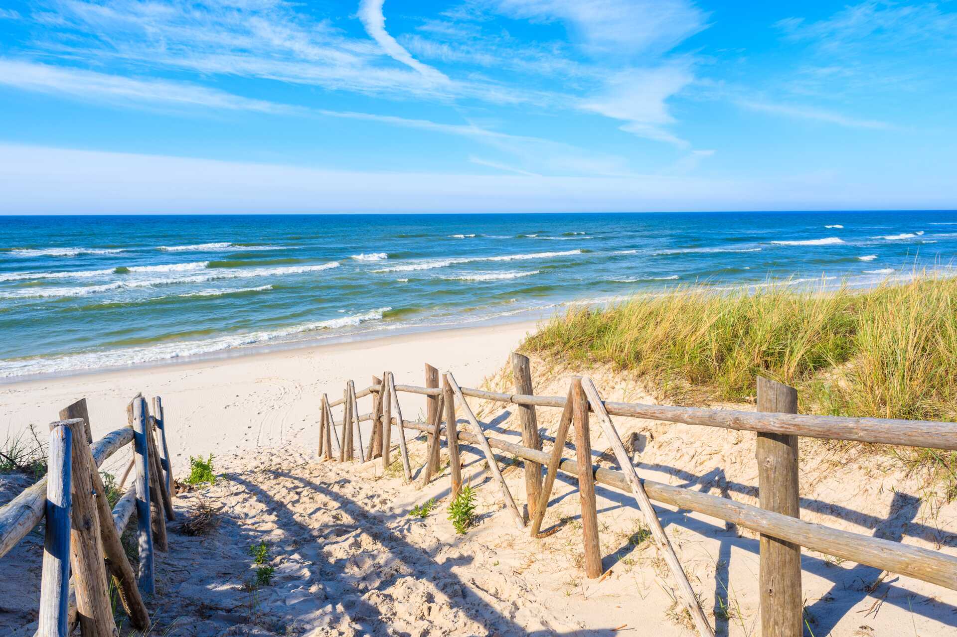 Sopot har lange, brede sandstrande, der strækker sig langs kysten og er kendt for deres finkornede sand og rolige, lave vand. Stranden ligger tæt på bymidten og den klassiske træmole, hvilket gør det nemt at kombinere svømning, gåture og strandliv.