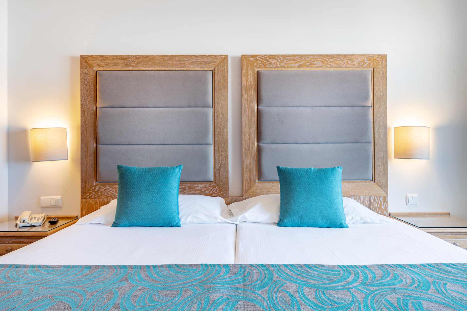 Dobbeltværelser med balkon, nogle med pooludsigt. To enkeltsenge. Gratis wifi, aircondition og deponering. Loftsvifte. Minibar. Tv med internationale kanaler. Hårtørrer. Badeværelse med badekar og toilet. Rengøring 7 gange om ugen.