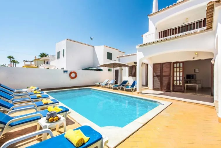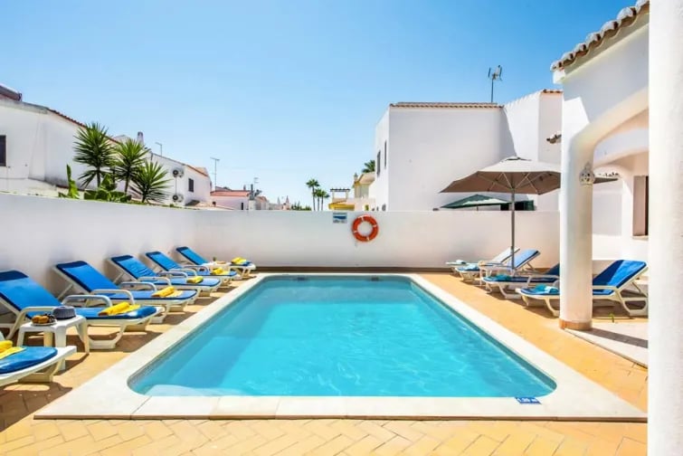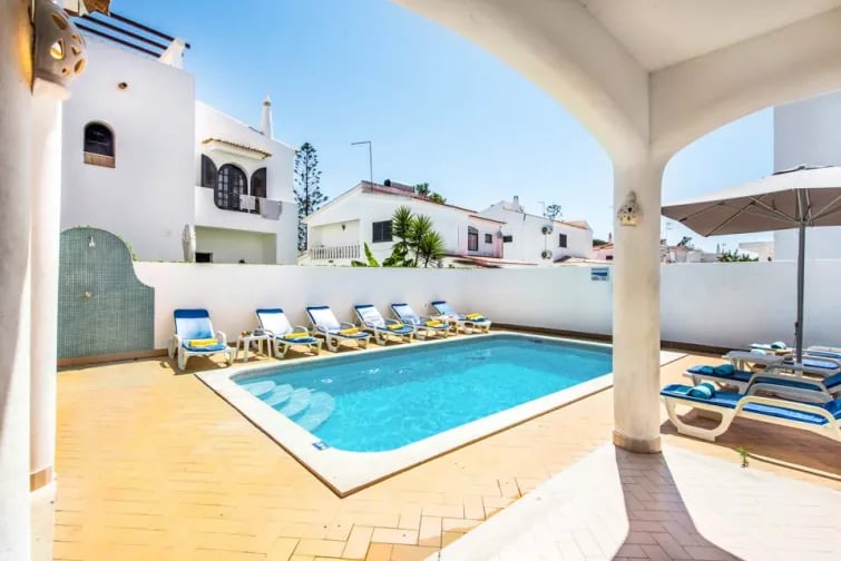 Lige uden for Albufeiras centrum, væk fra travlheden, men i gåafstand fra alt hvad du måtte have brug for, ligger Villa Serenity. For enden af en roligere gade ligger dette charmerende feriested, ideelt for større grupper, der søger en autentisk Algarve-oplevelse. Få mest muligt ud af den sydportugisiske sol fra din private pool og terrasse, ideel til at fange solstrålerne. Svøm et par baner og spil poolspil med dine nærmeste, eller dyp blot tæerne i og slap af på liggestolene, der omgiver det klare blå vand. Slap af i et af de rummelige værelser og nyd de airconditionerede soveværelser. Med bløde senge og kølig luft er du garanteret en afslappende nat, der giver dig energi til at begive dig ud i byen. Udforsk lokalområdet, og find ud af, hvad der gør Albufeira til et af de største turistmål på den portugisiske sydkyst. Tag en kort gåtur ned til en af de nærliggende smukke strande, oplev utallige underholdningskilder og tilbring dagen med at nyde alt, hvad byen har at byde på. Forkæl dig selv med den ferie, du fortjener, og find alt, hvad du behøver, på Villa Serenity, den Algarve-ferie, du har længtes efter.