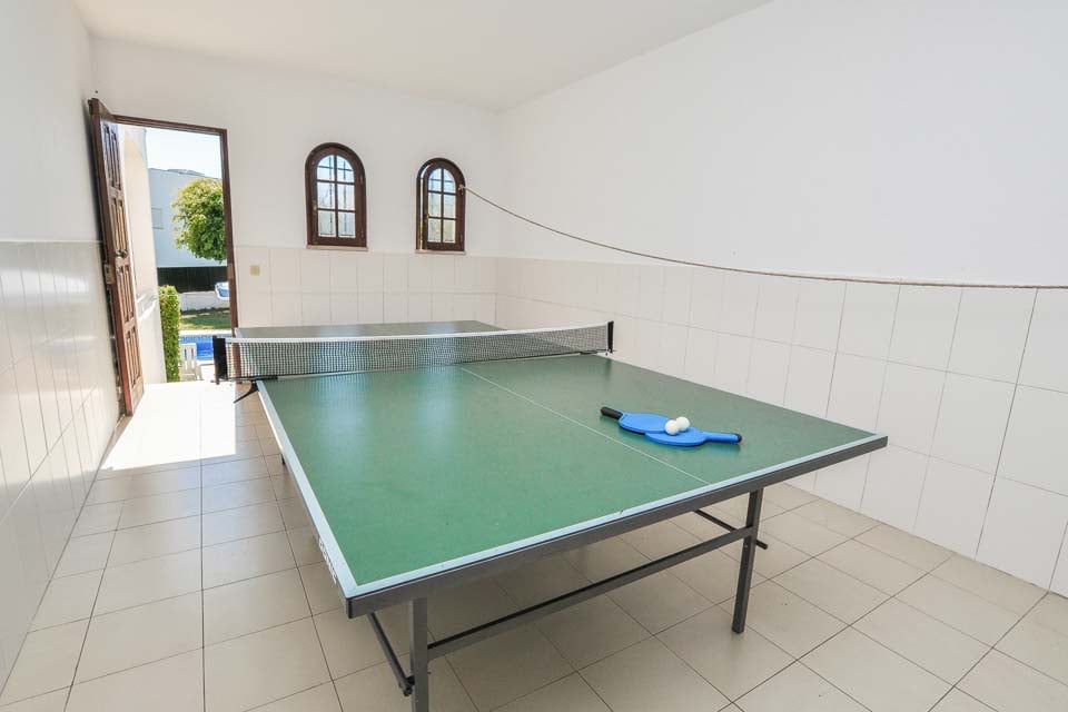 Udenfor ved den private swimmingpool er der nok liggestole til hver gæst. Under den skyggefulde terrasse finder du et snookerbord og et bordtennisbord, hvor du kan slappe af fra den brændende varme sol. Med en udendørs spiseplads og indbyggede grillfaciliteter kan gæsterne samles for at nyde måltider i al fresco-stil og opleve appellen ved udendørsliv.
