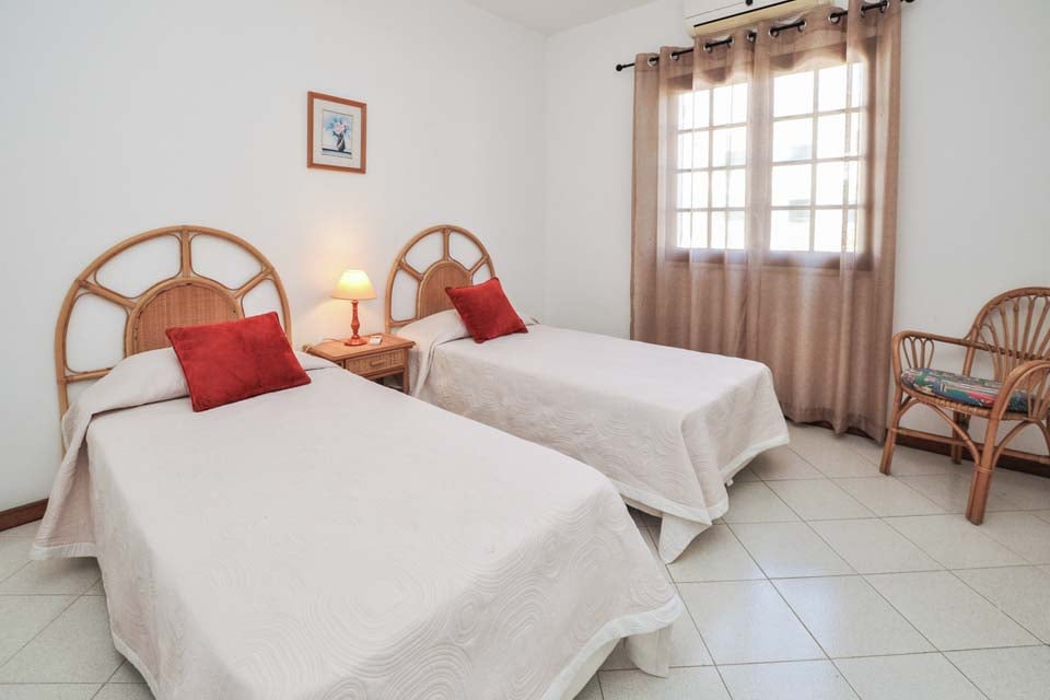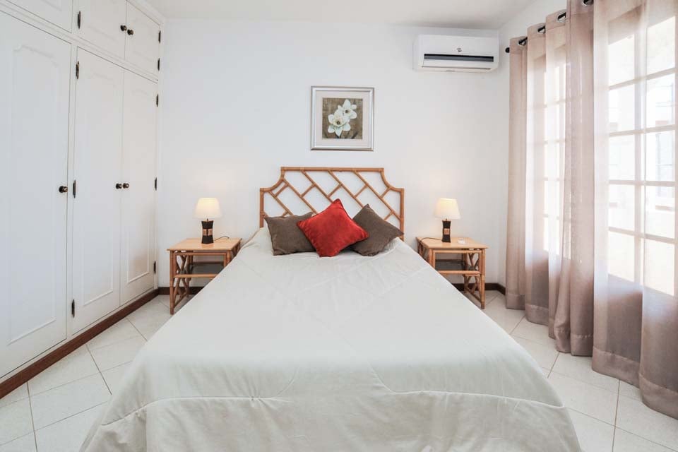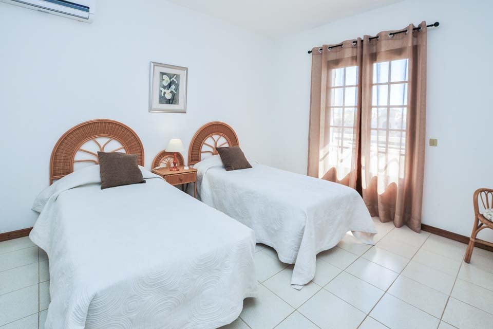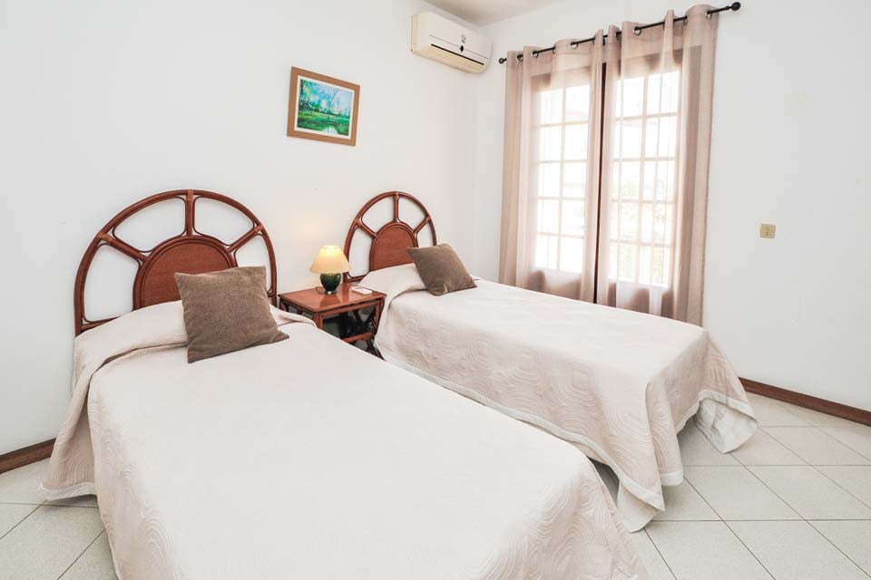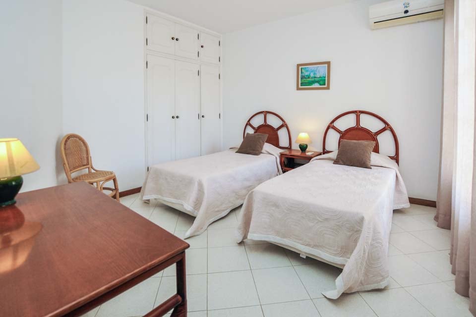 Enkeltsenge, aircondition, døre til terrasse