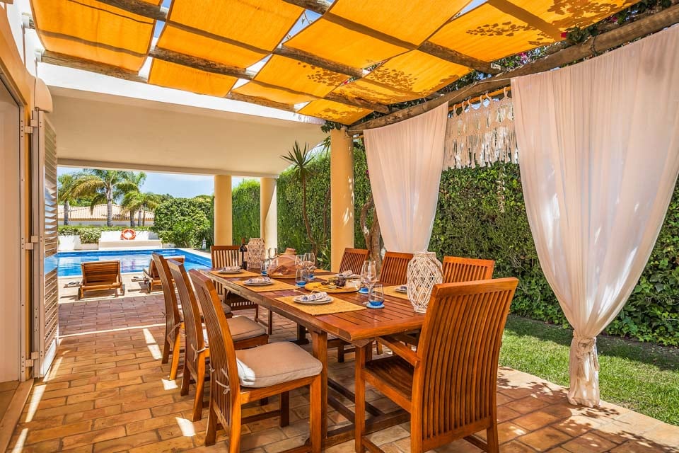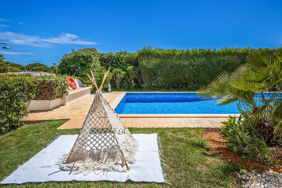Denne villa med 3 soveværelser har aircondition overalt og er perfekt udstyret til at rumme 6 personer, hvilket gør den ideel til at skabe minder i Algarve med familie og venner. Denne ejendom er indrettet til en utrolig høj standard med masser af hjemlig komfort og har også en komfortabel åben stue, et fælles badeværelse og en indbydende spisestue med direkte adgang til den udendørs spiseplads, terrassen og haven. Der er også et fuldt udstyret køkken, der muliggør en problemfri og problemfri ferie med selvforplejning.