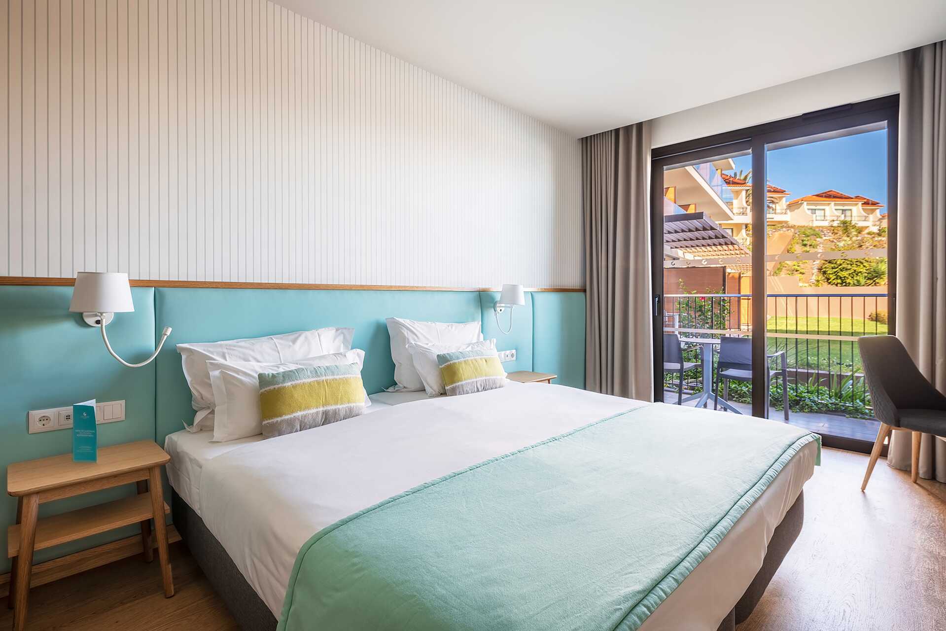 Dobbeltværelse med balkon eller terrasse med udsigt til haven. En dobbeltseng eller to enkeltsenge. Pudemenu. Gratis wifi, aircondition og deponering. El-kedel samt kaffe/te. Køleskab. Tv med internationale kanaler. Hårtørrer. Badeværelse med bruser og toilet. Rengøring 7 gange om ugen.