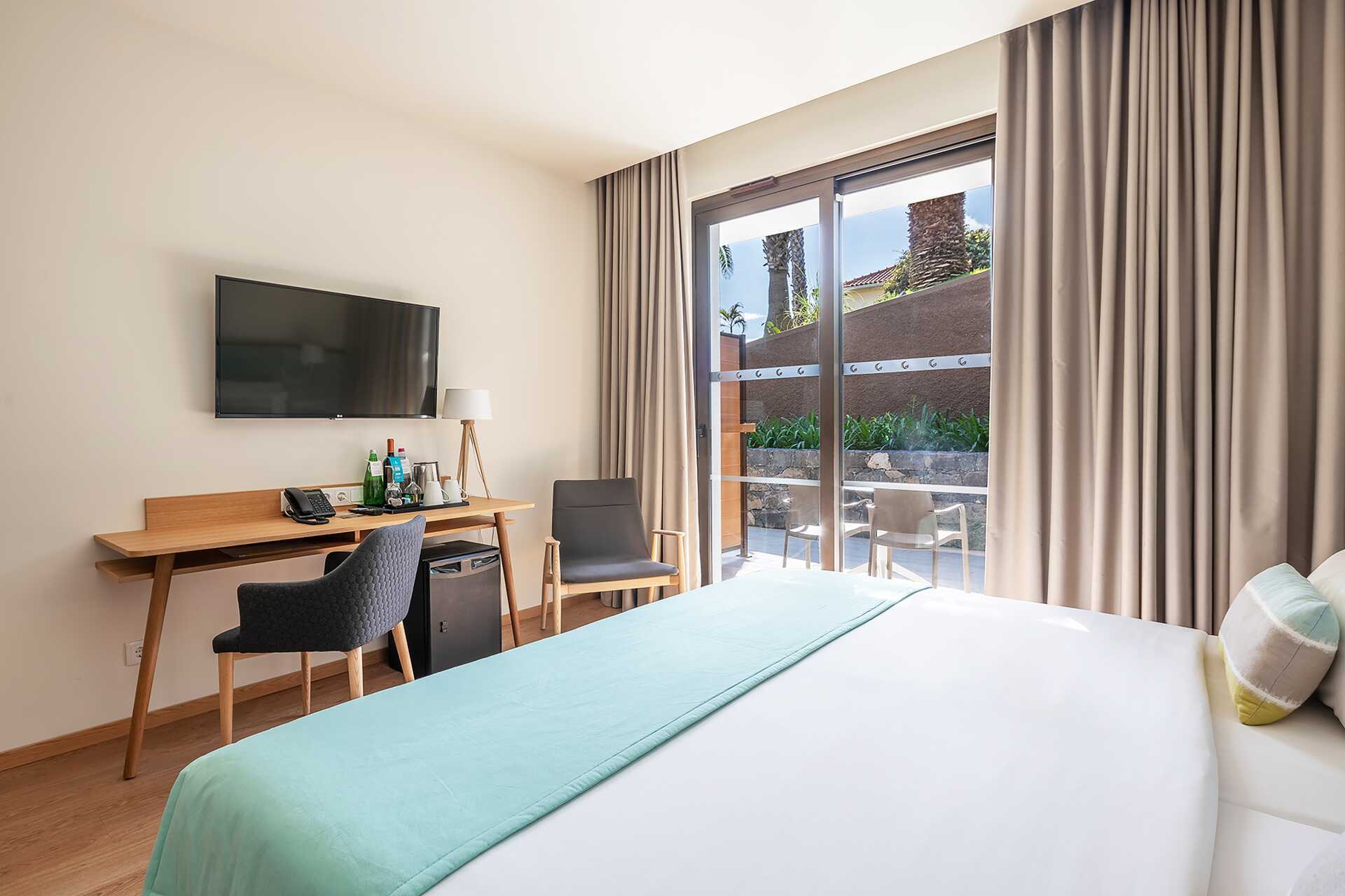 Dobbeltværelse med balkon eller terrasse og delvis havudsigt. En dobbeltseng eller to enkeltsenge. Pudemenu. Gratis wifi, aircondition og deponering. Køleskab. El-kedel samt kaffe/te. Tv med internationale kanaler. Hårtørrer. Badeværelse med bruser og toilet. Rengøring 7 gange om ugen.